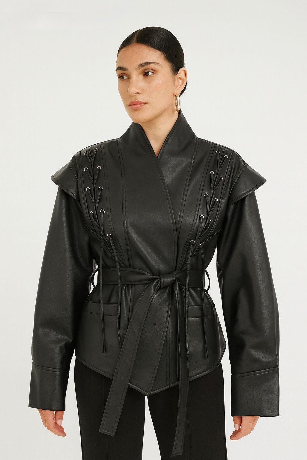 Wonderful Leather Braid Blazer - Black