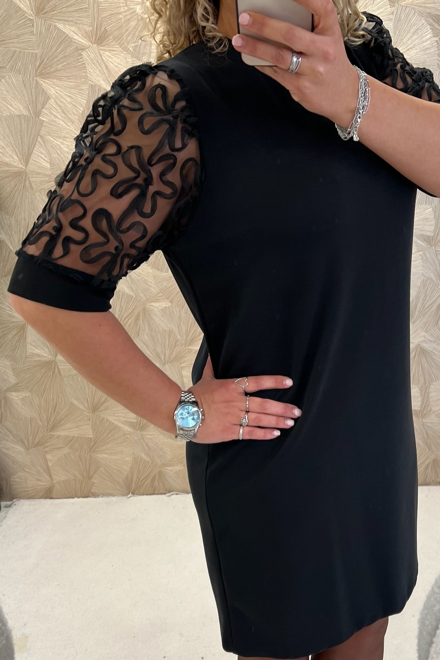 Lace Sleeve Sweater Dress - Black