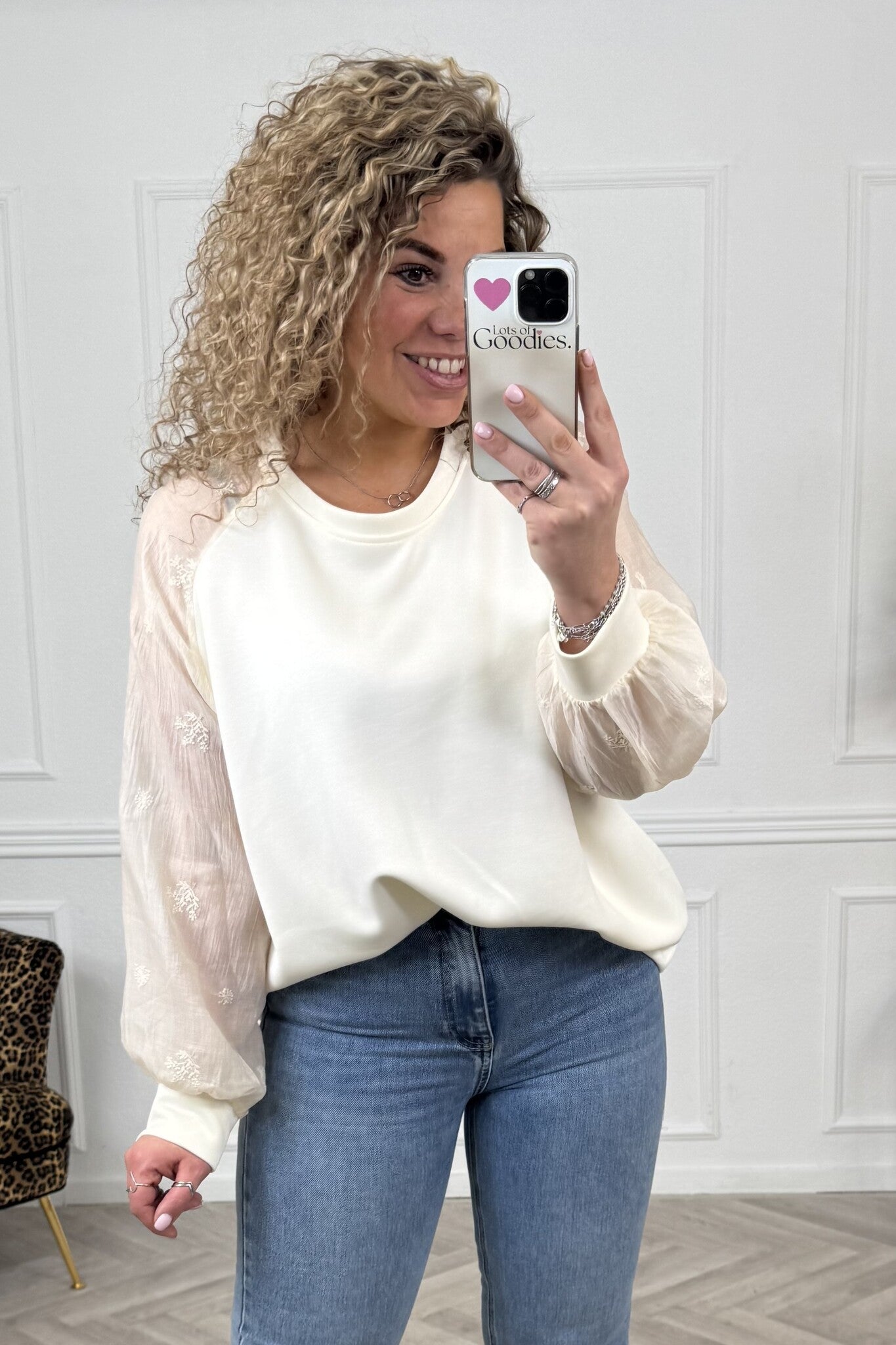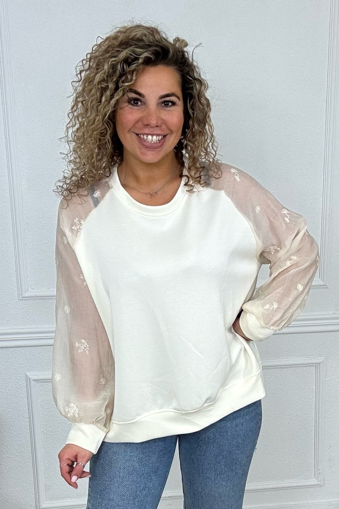 Flower Sleeve Sweater - Ecru