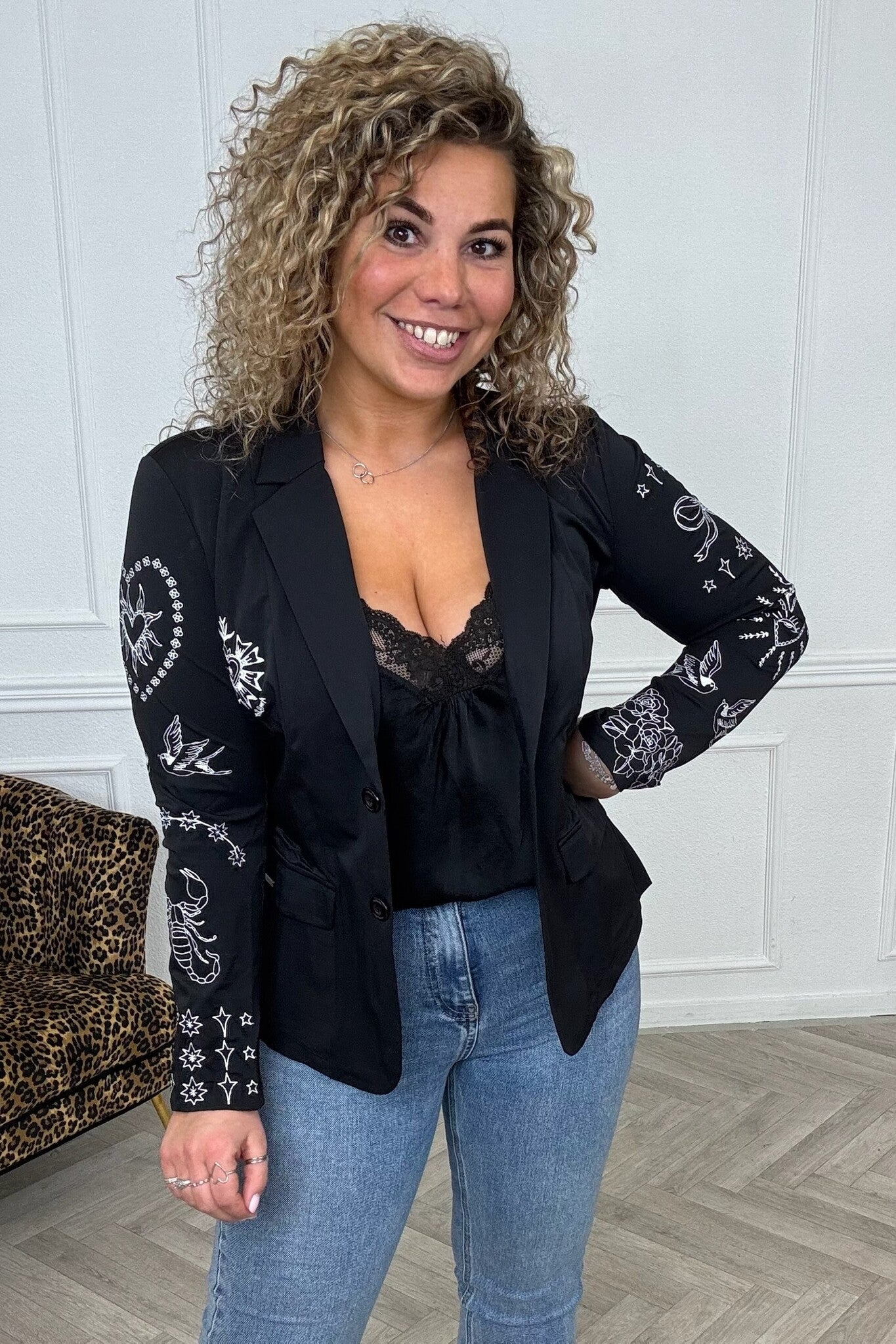 Joan Print Gilet - Black