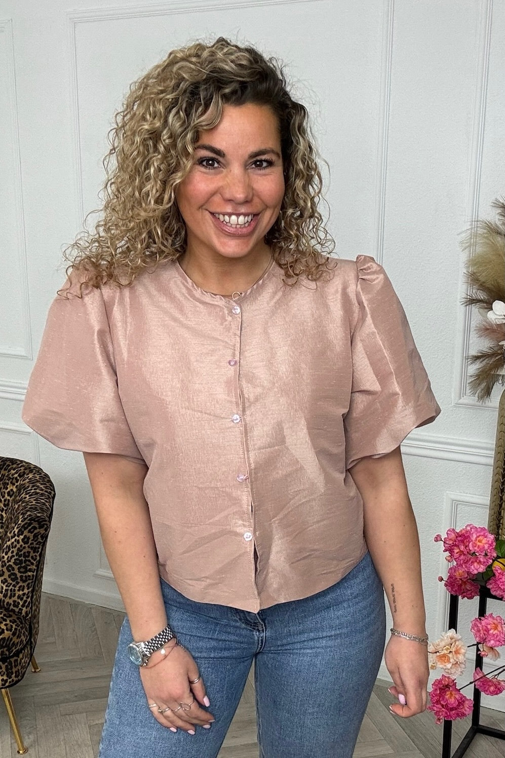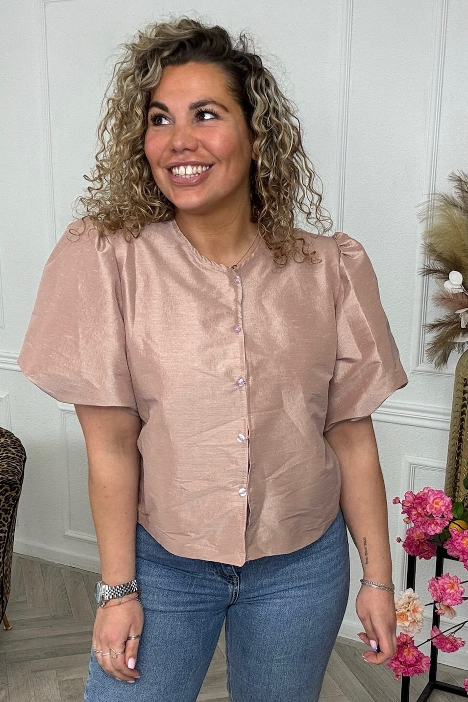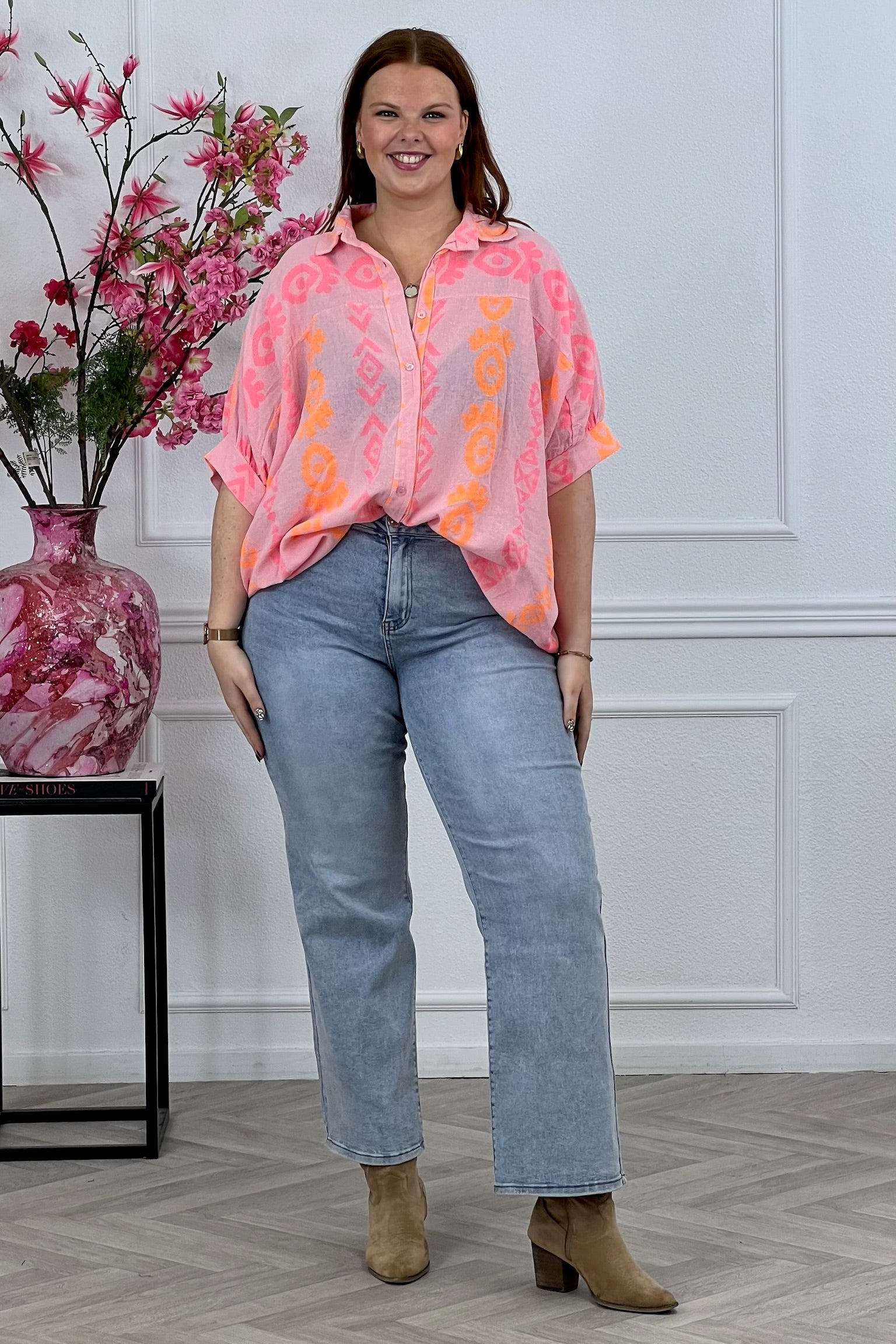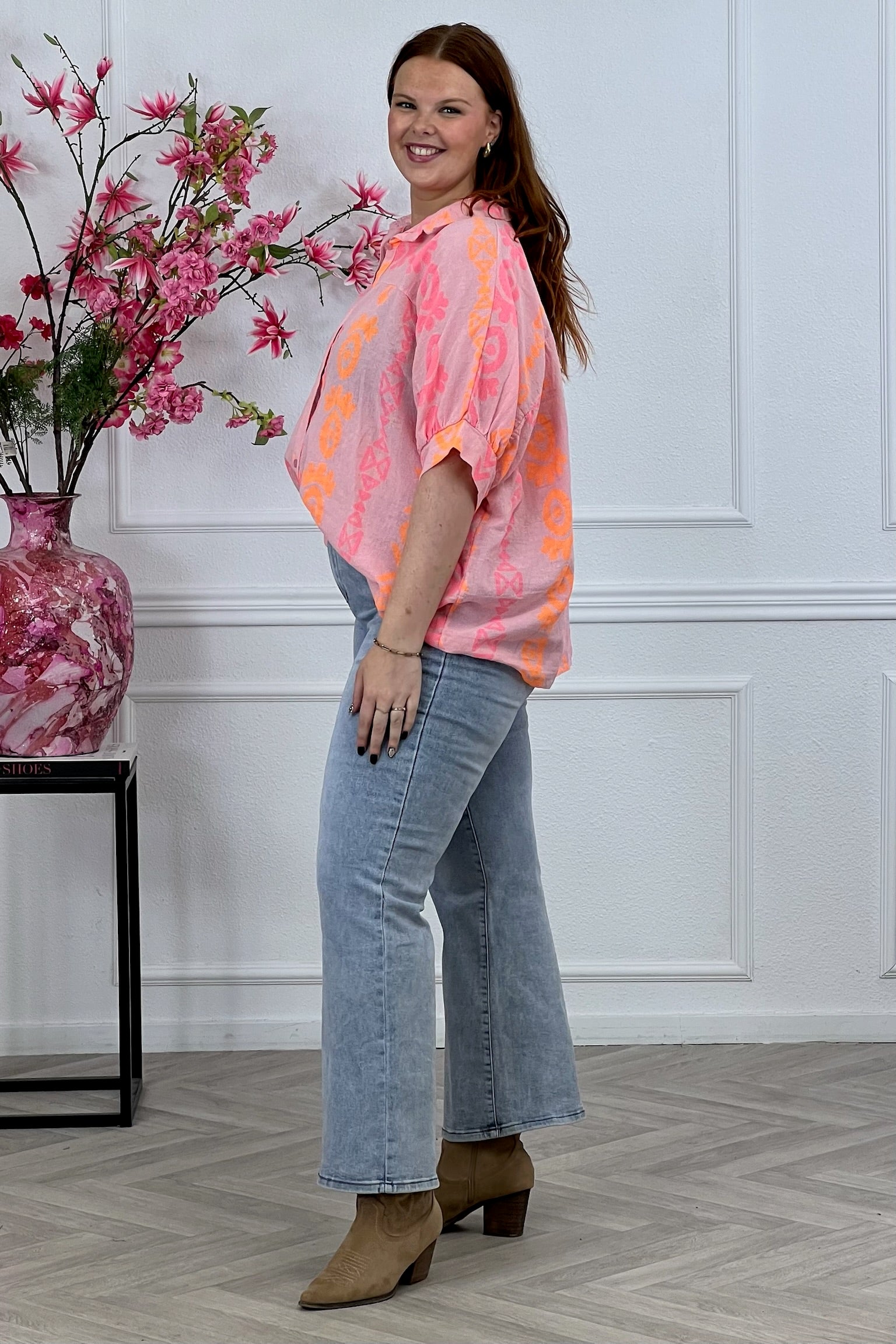 Paisley Button Strik Blouse - Beige/Bordeaux