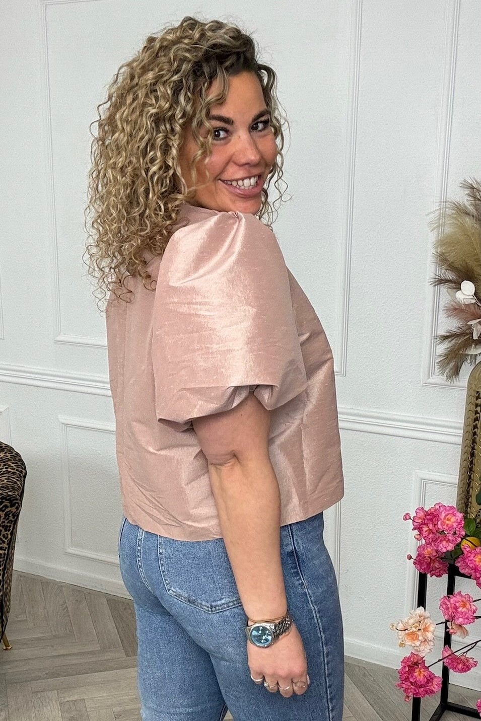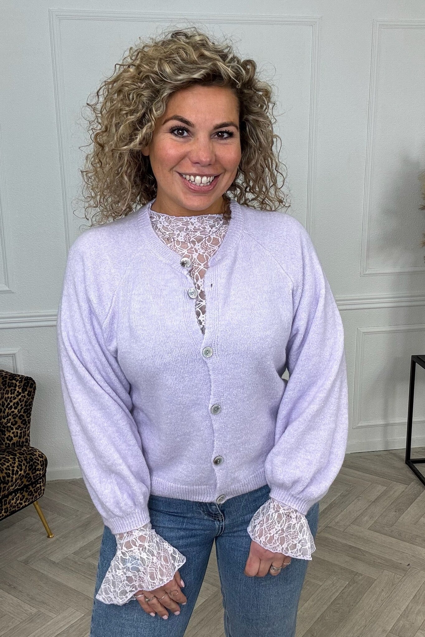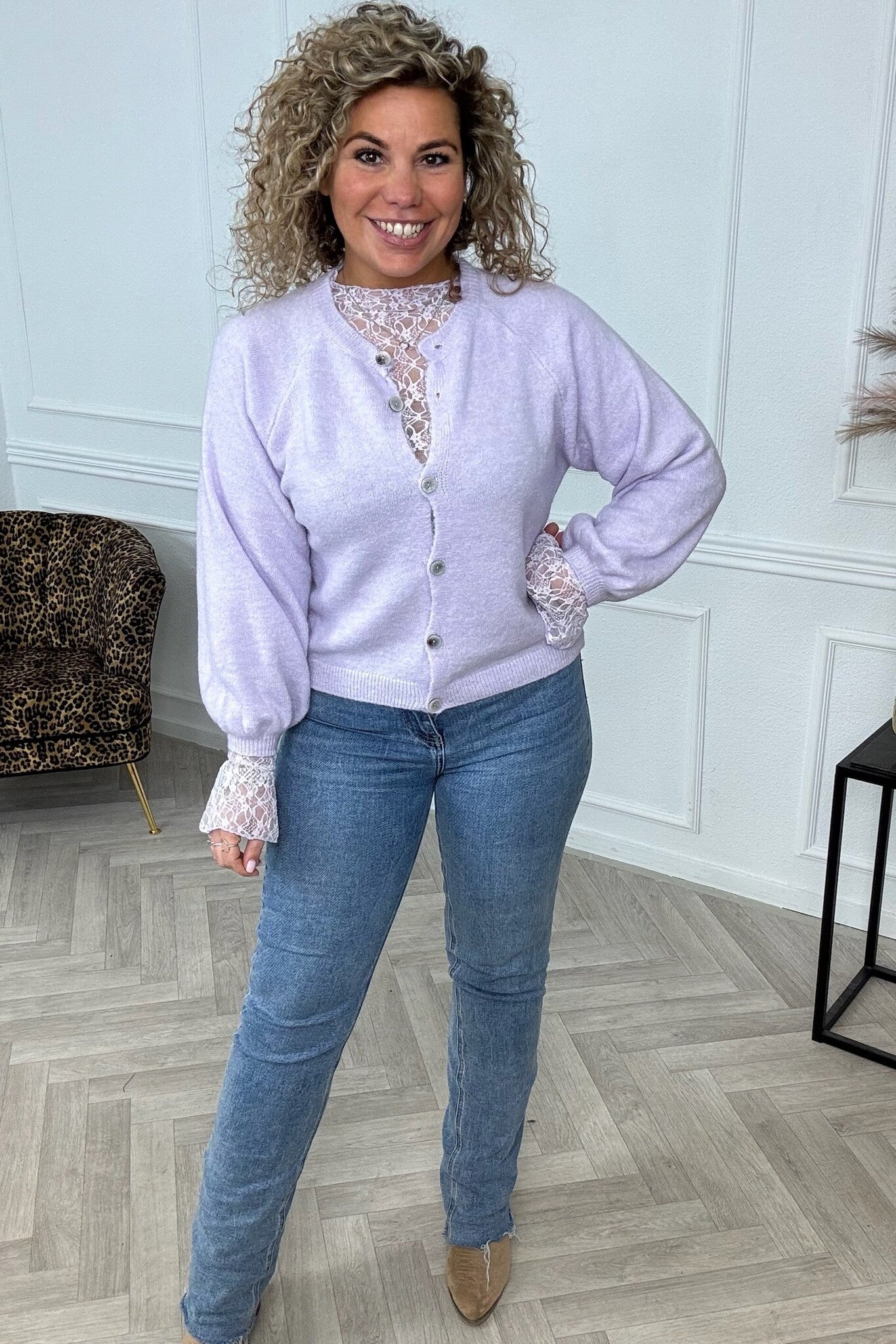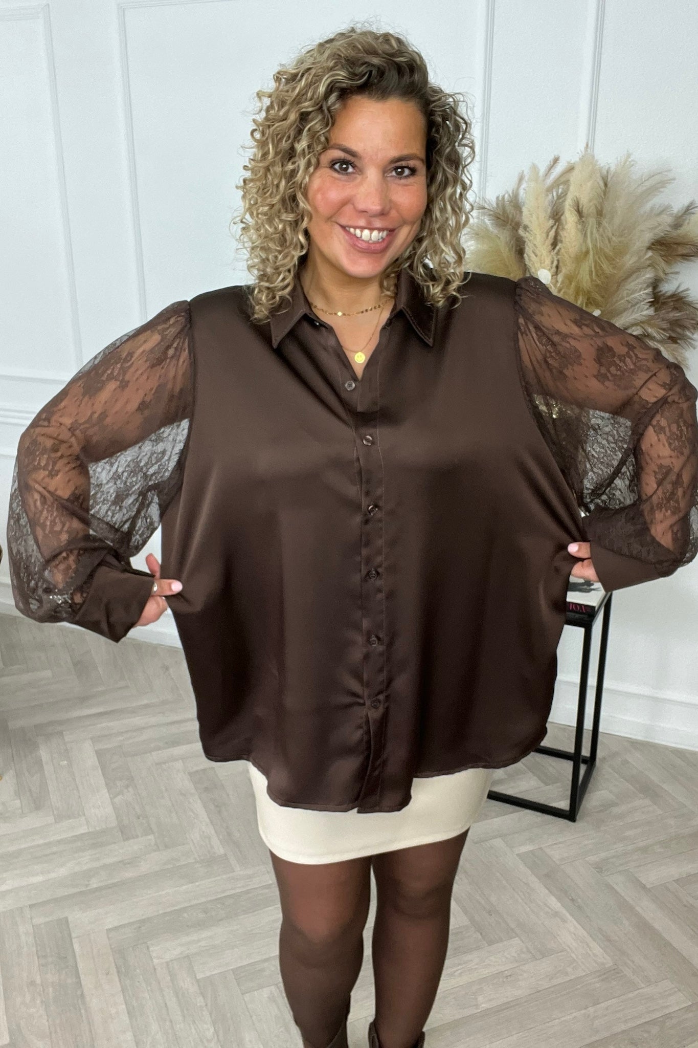 Paisley Button Strik Blouse - Beige/Bordeaux