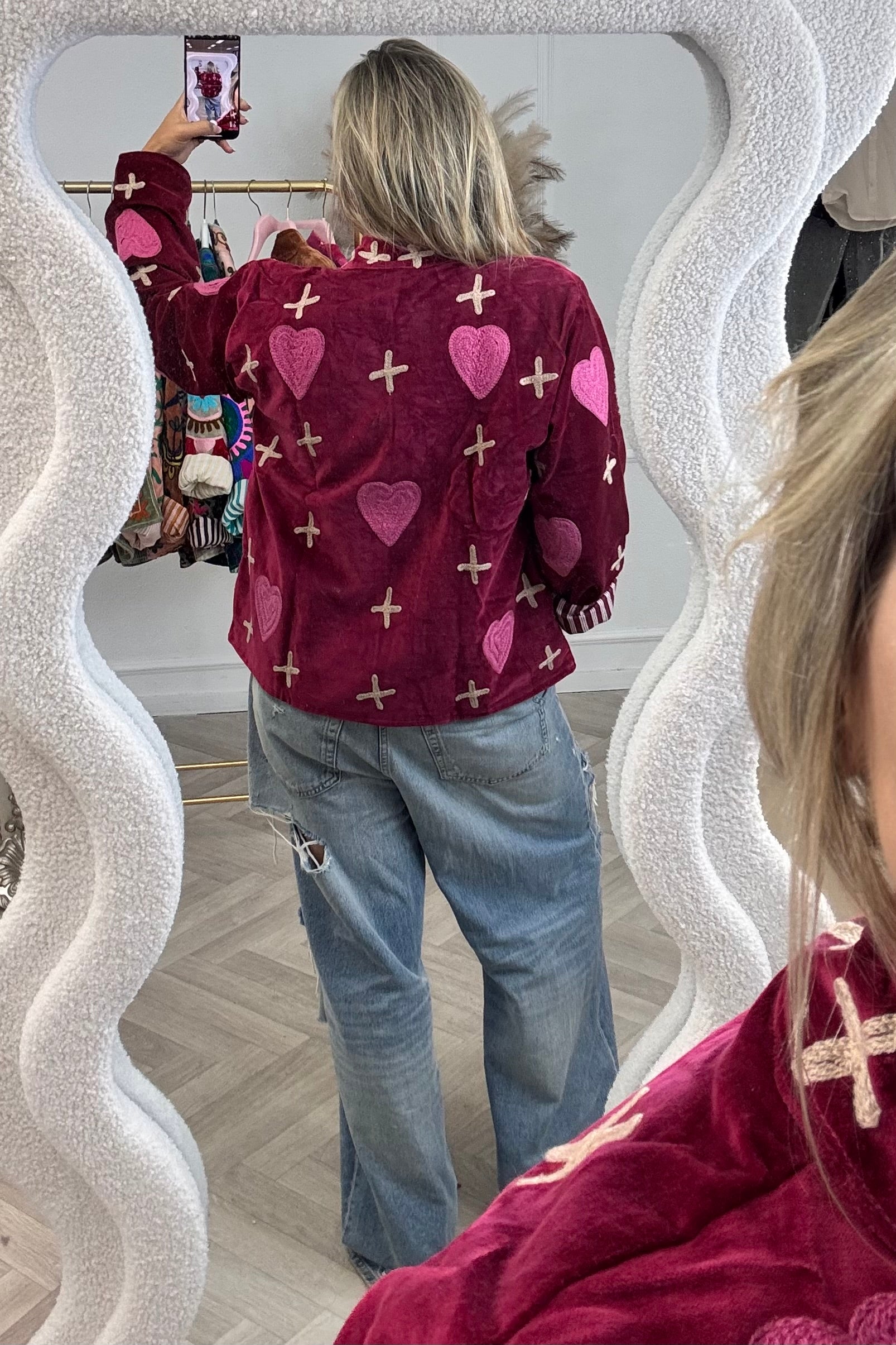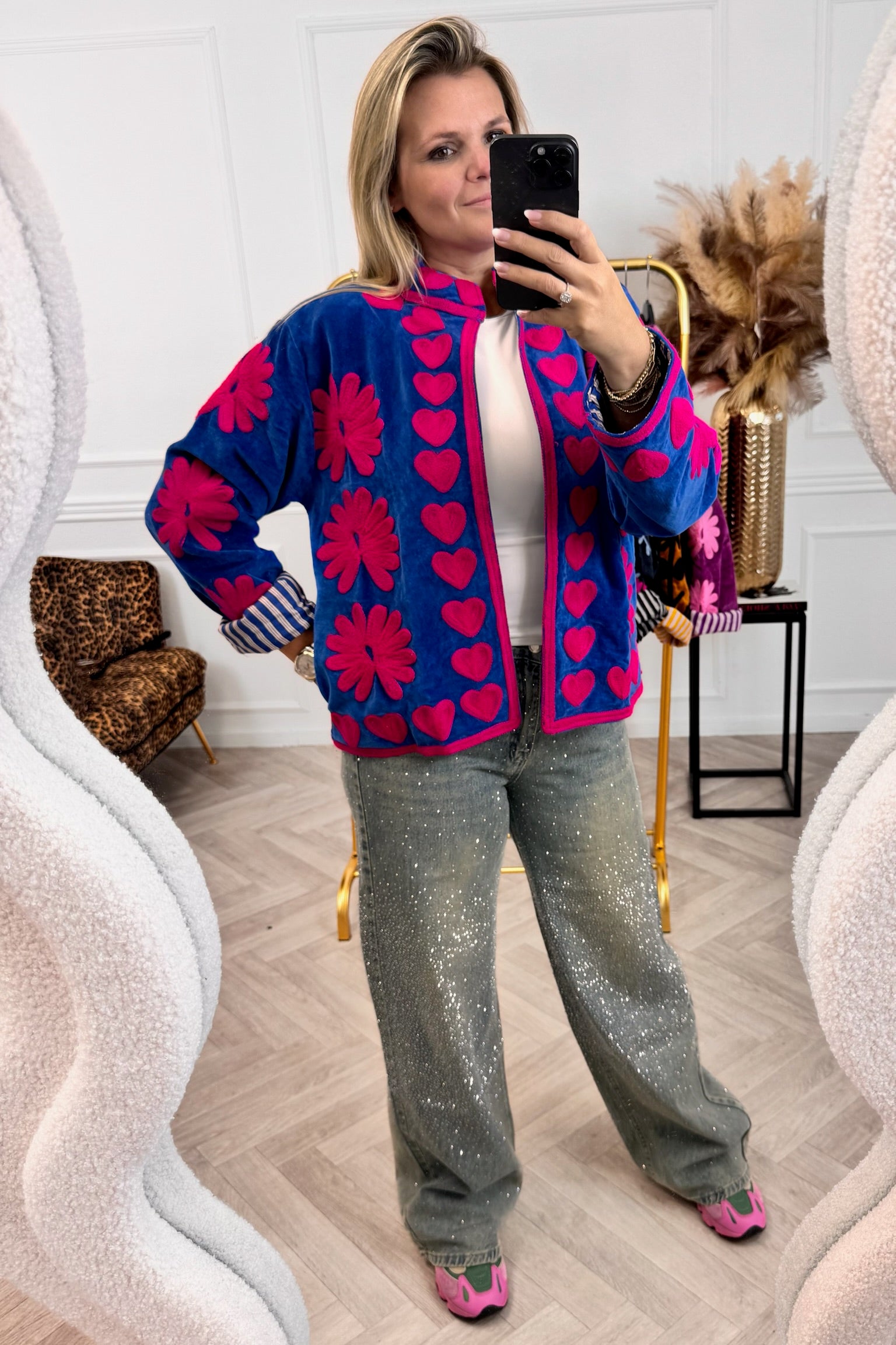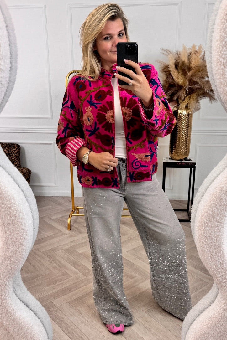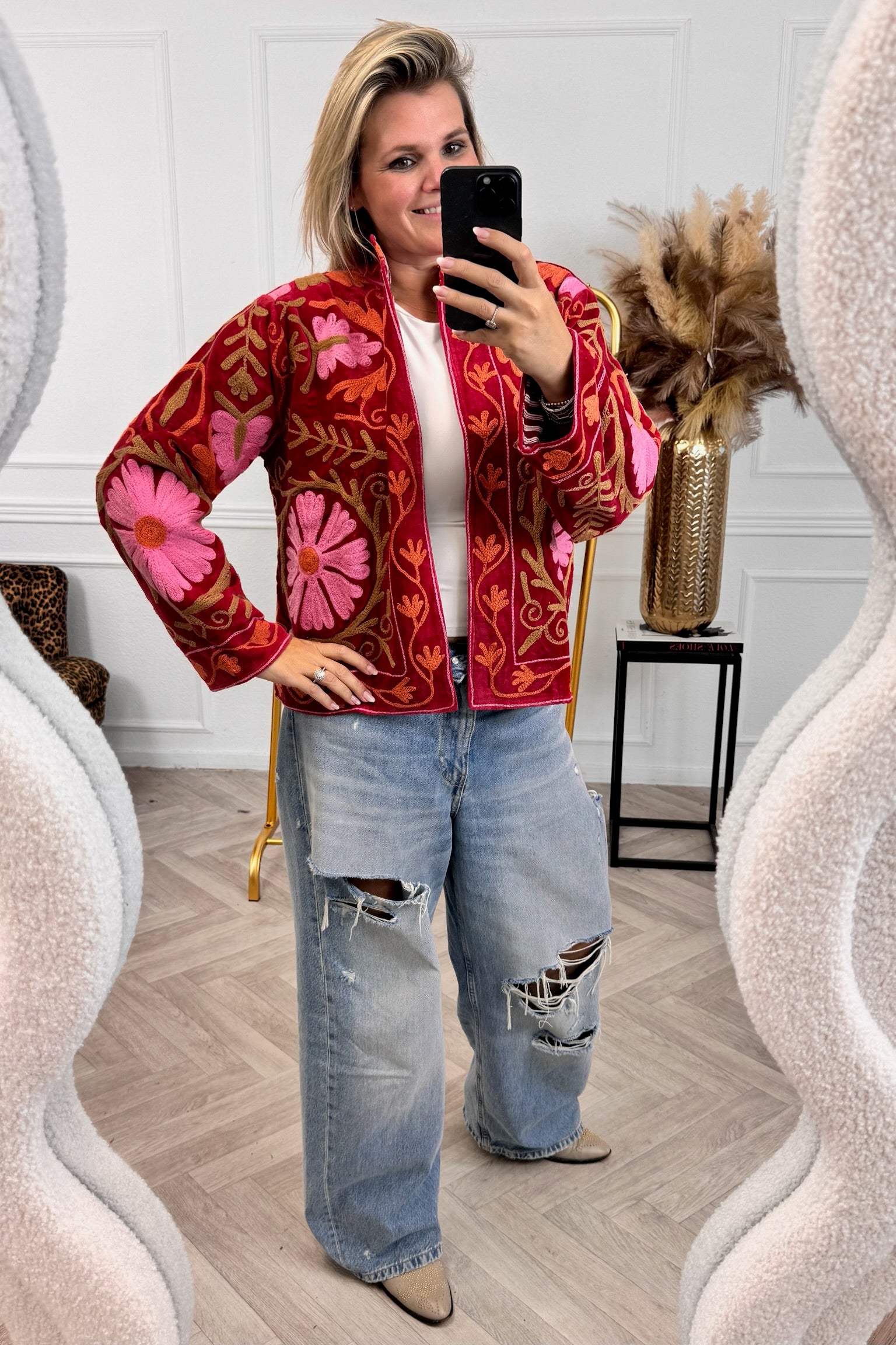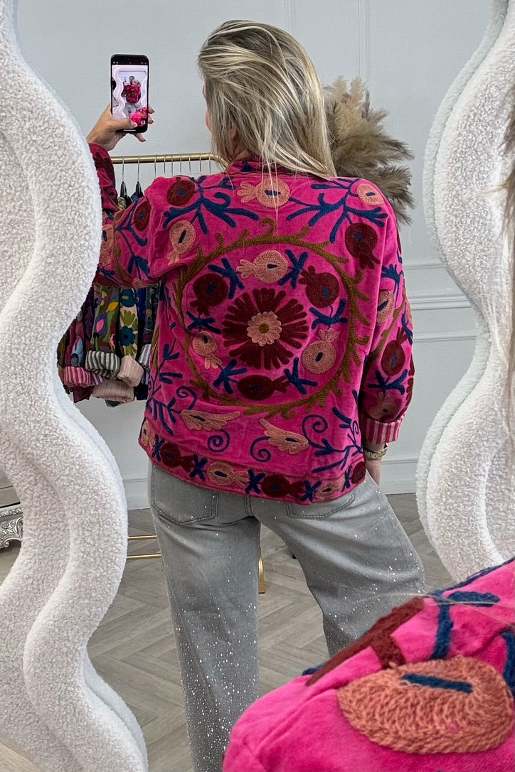 Cotton Velvet Circle Flower Jacket - Pink/Bordeaux