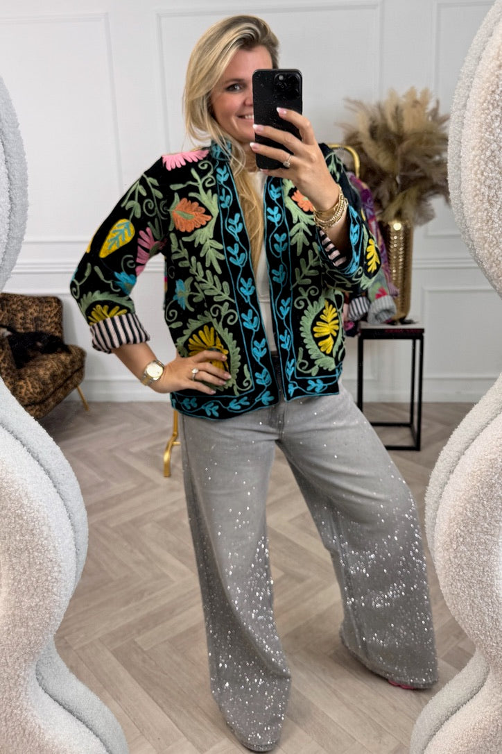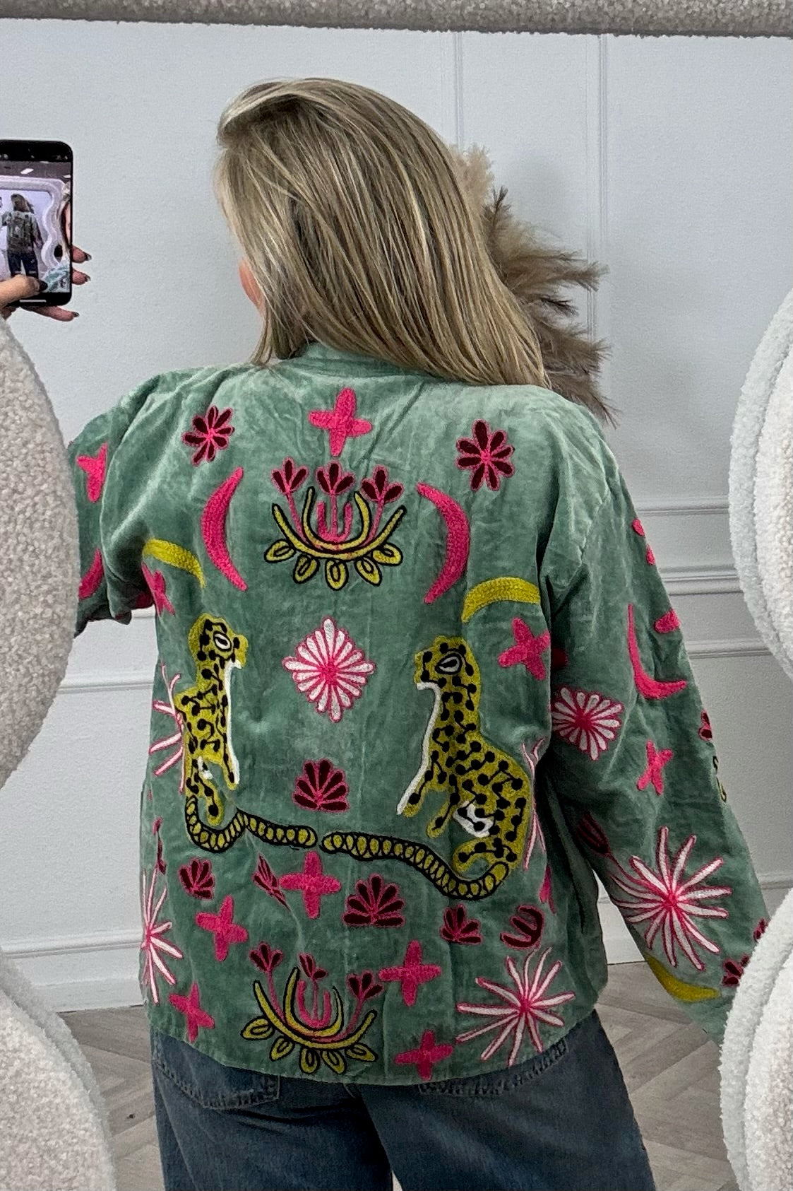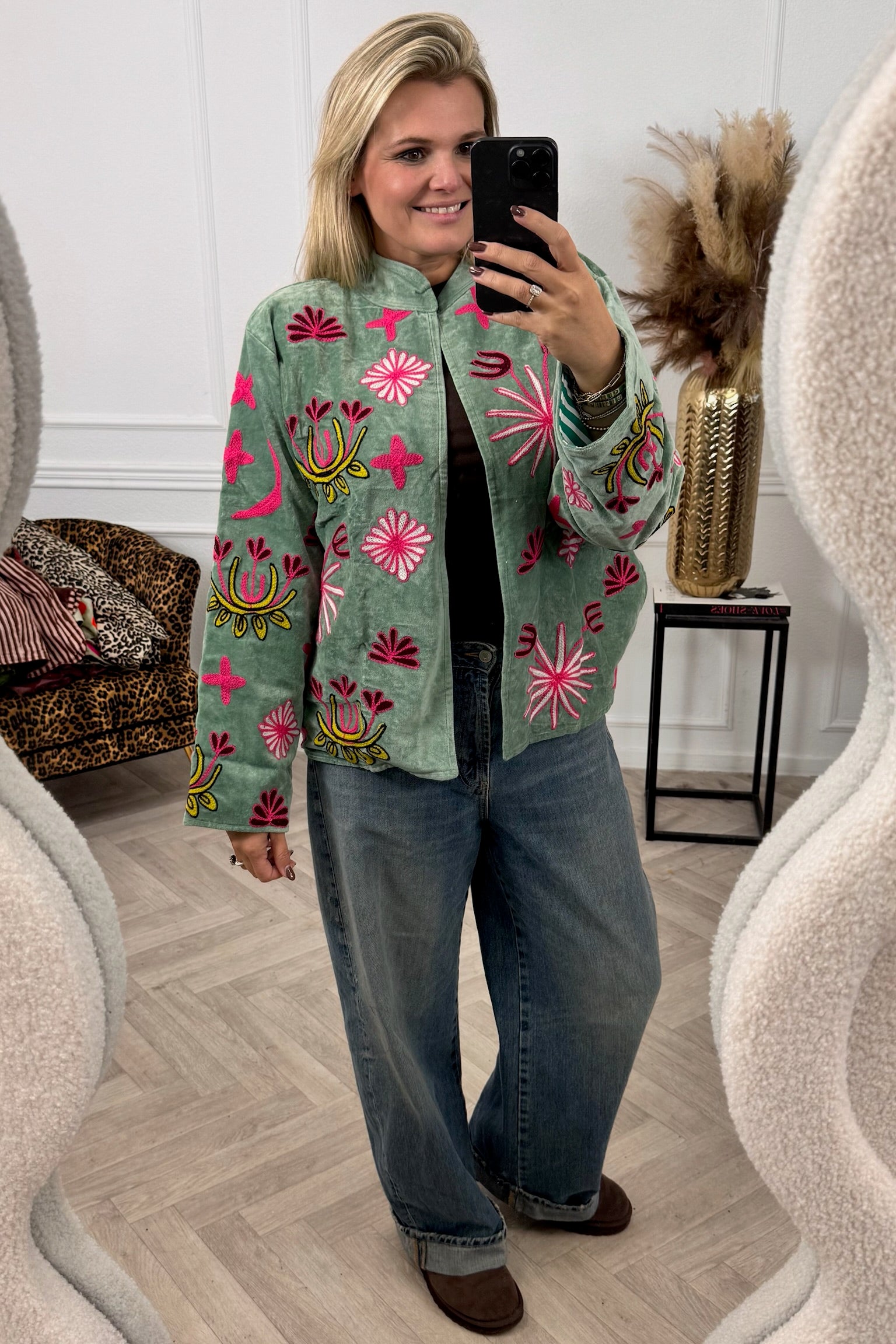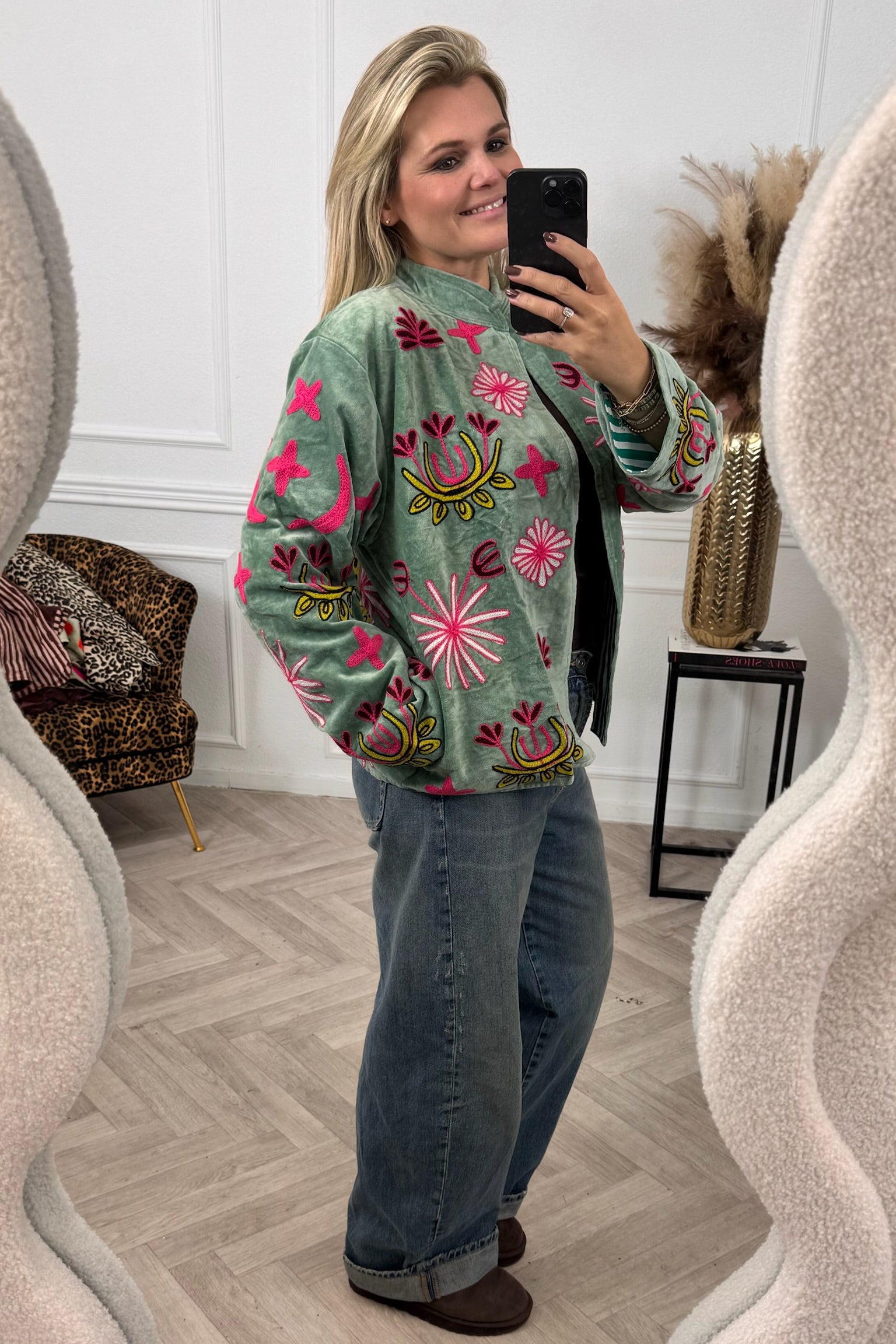 Cotton Velvet Circle Flower Jacket - Pink/Bordeaux