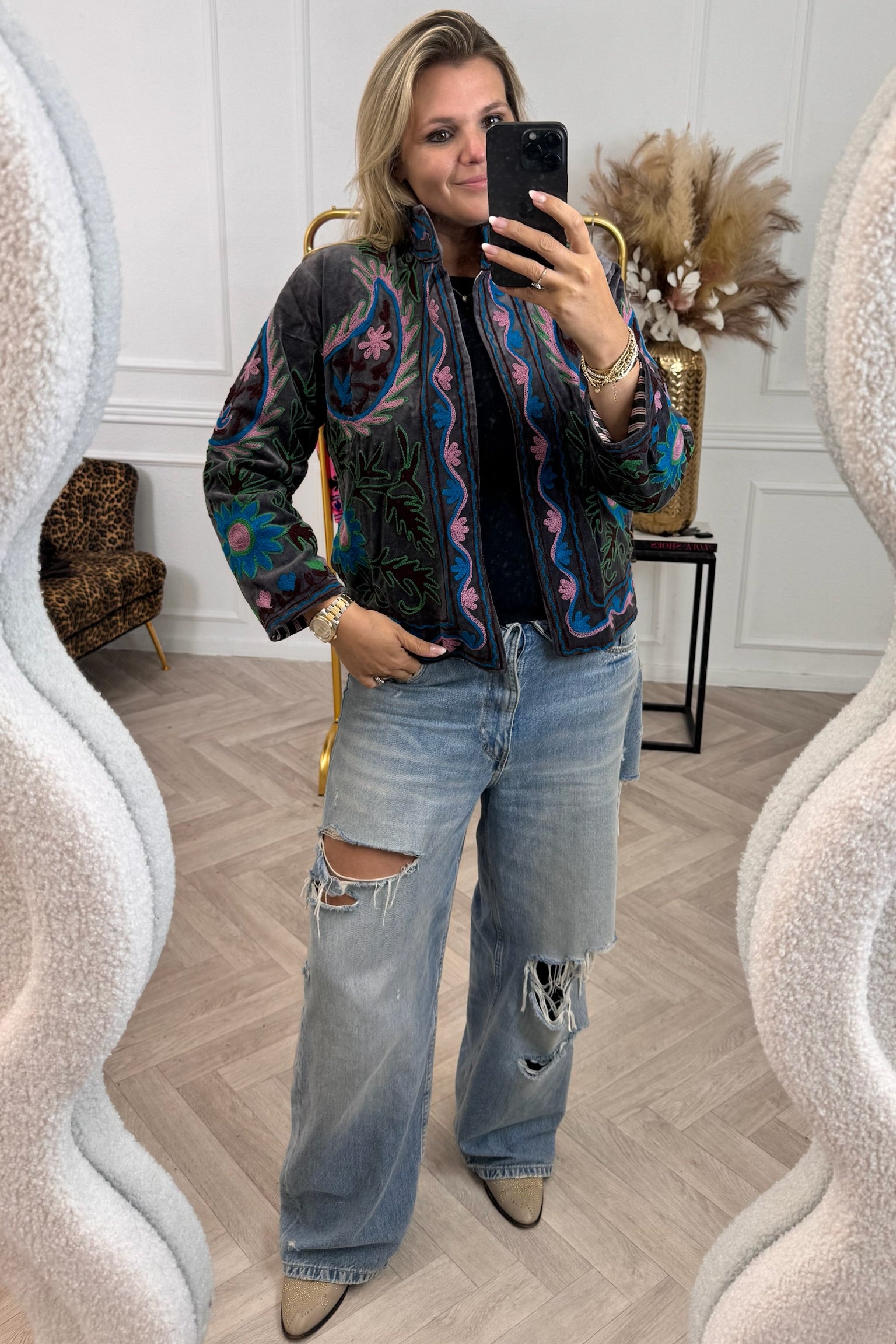 Cotton Velvet Sarkari Jacket - Dark Grey