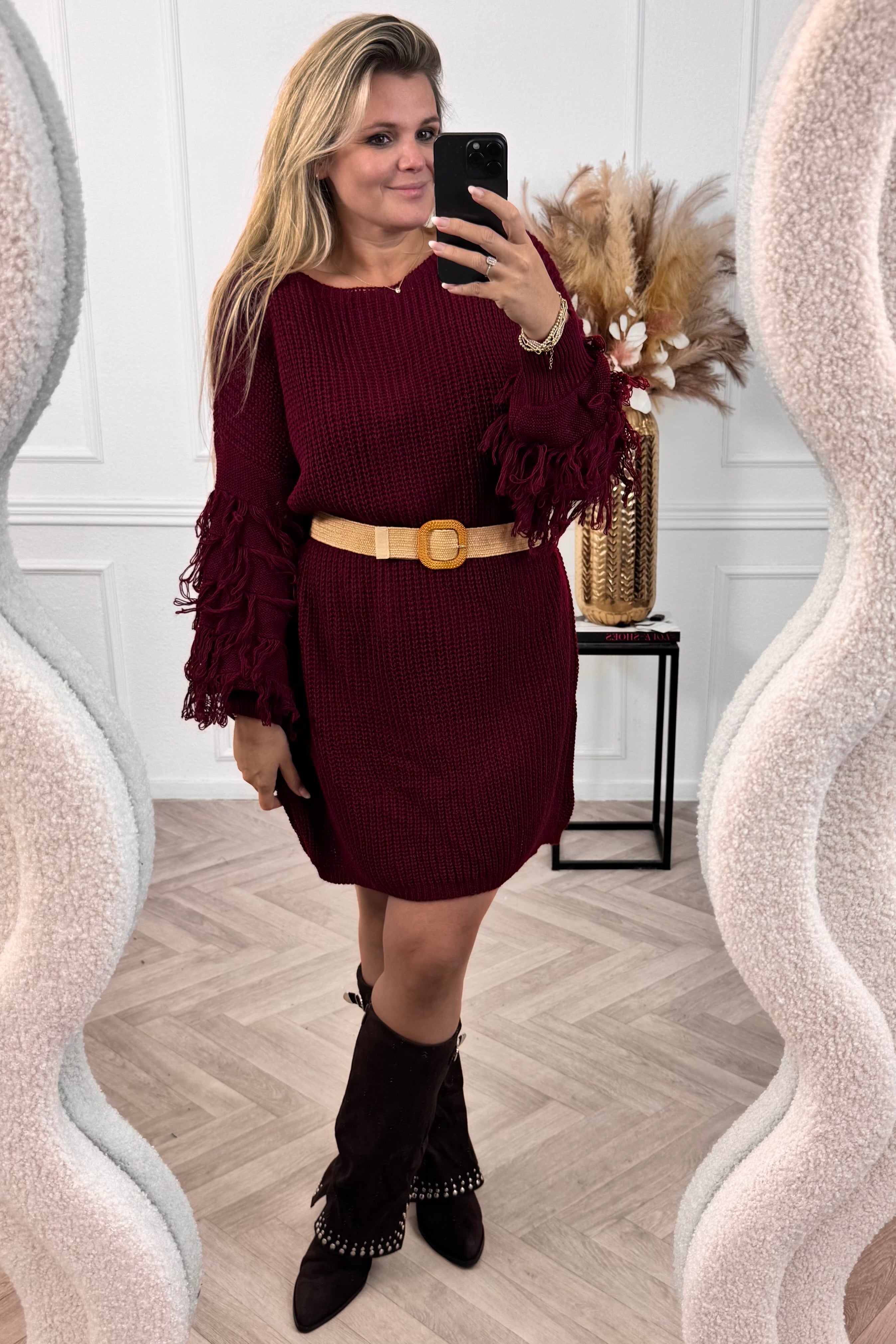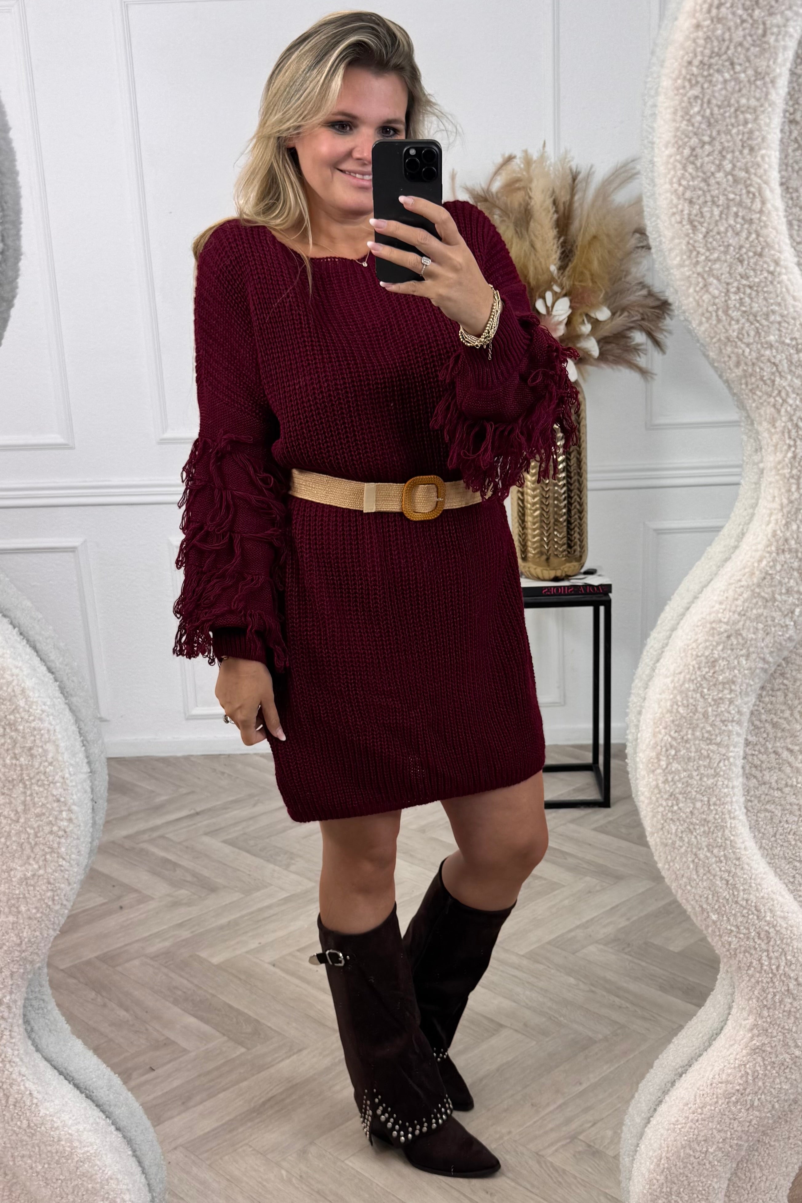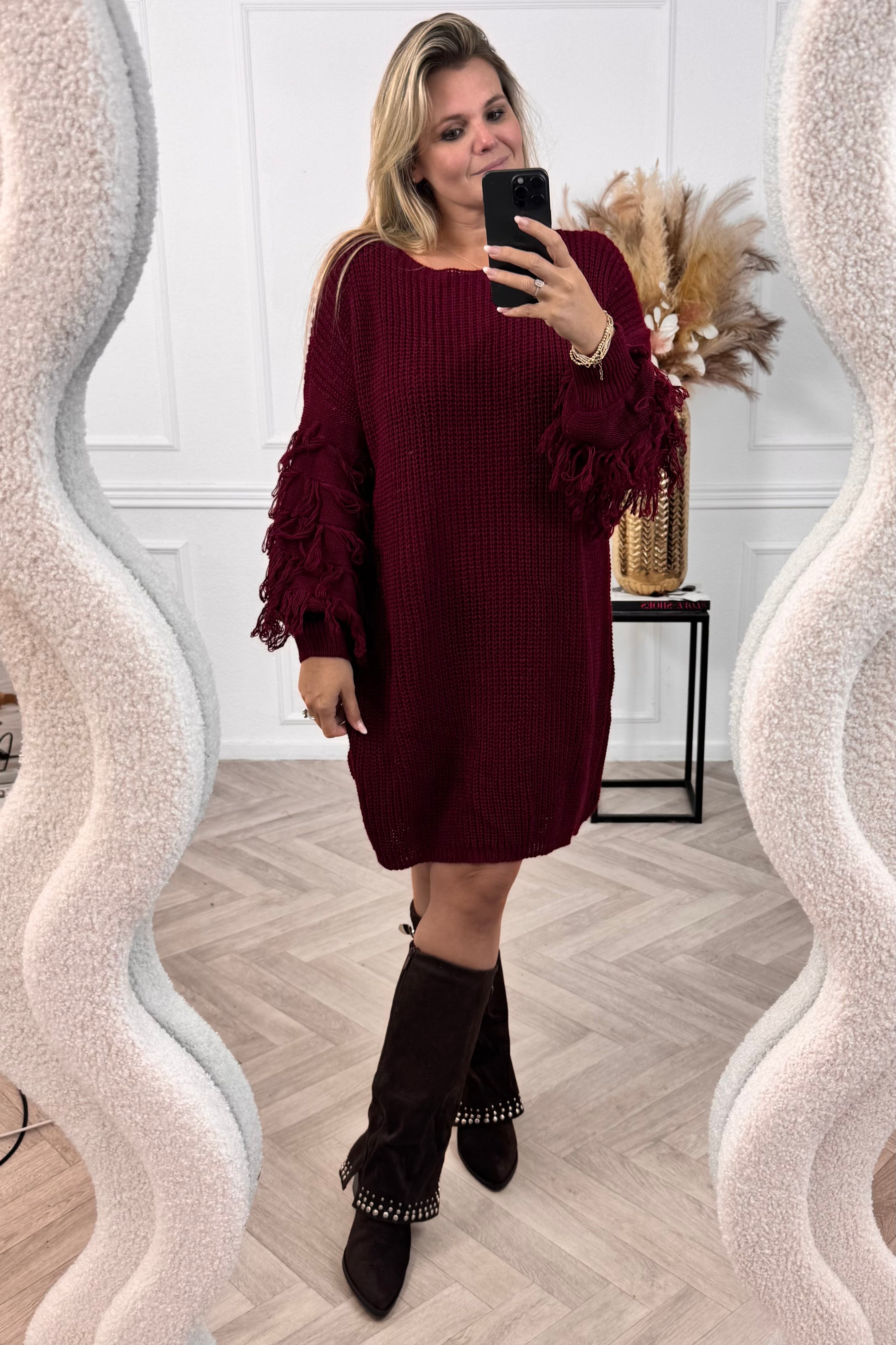Bat Sleeve Ruffle Sweater - Bordeaux
