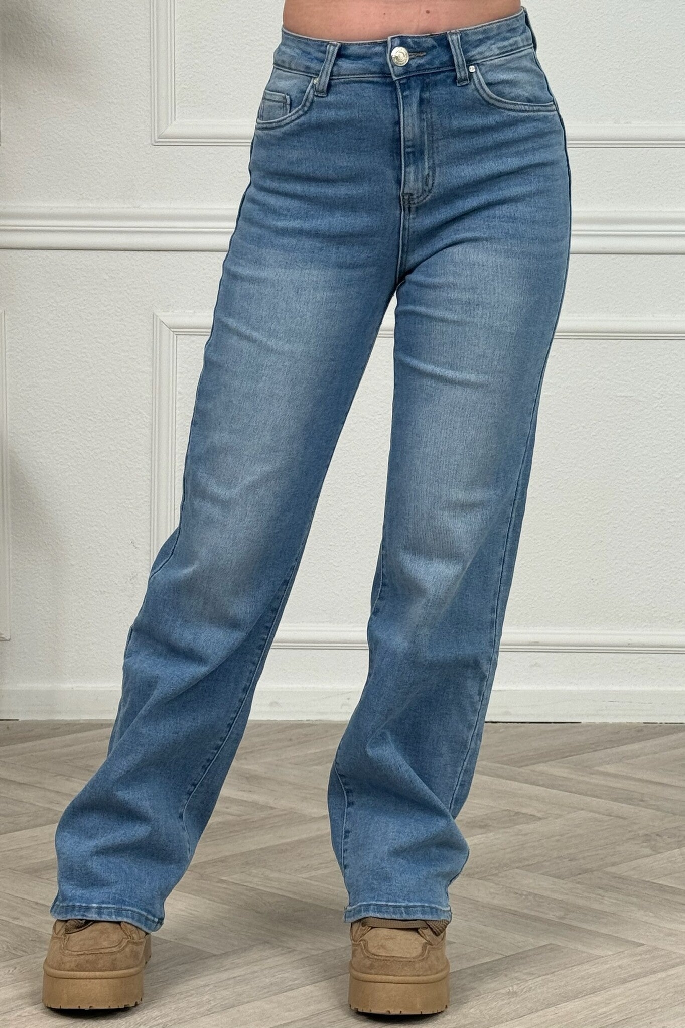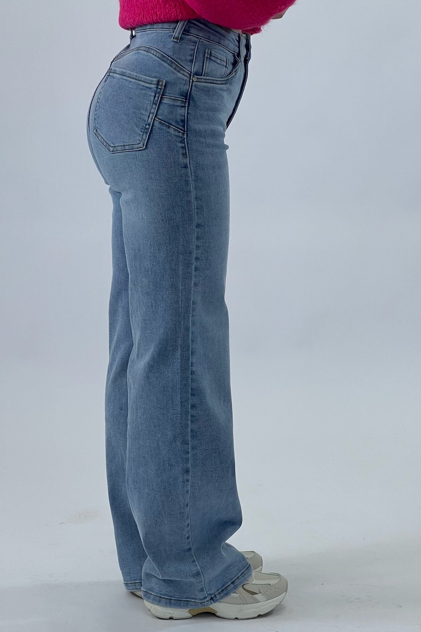 Goodies Wide Leg Glitter Striped Jeans - Blue