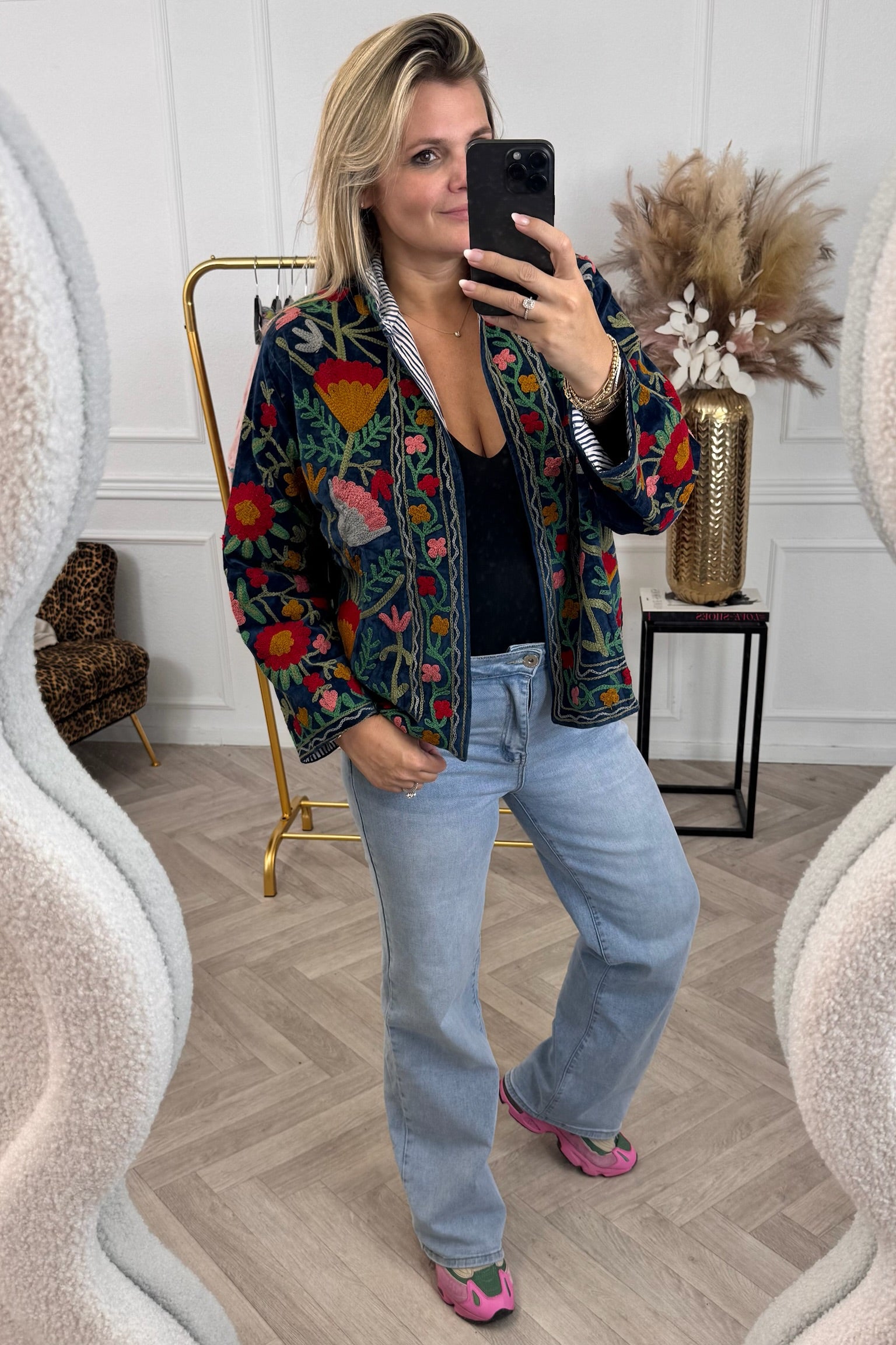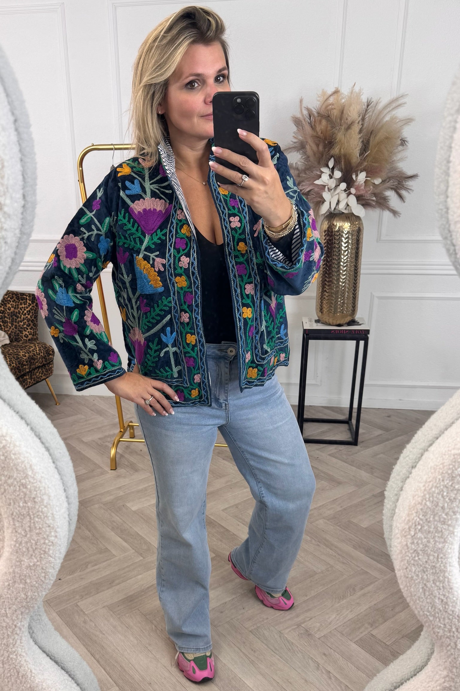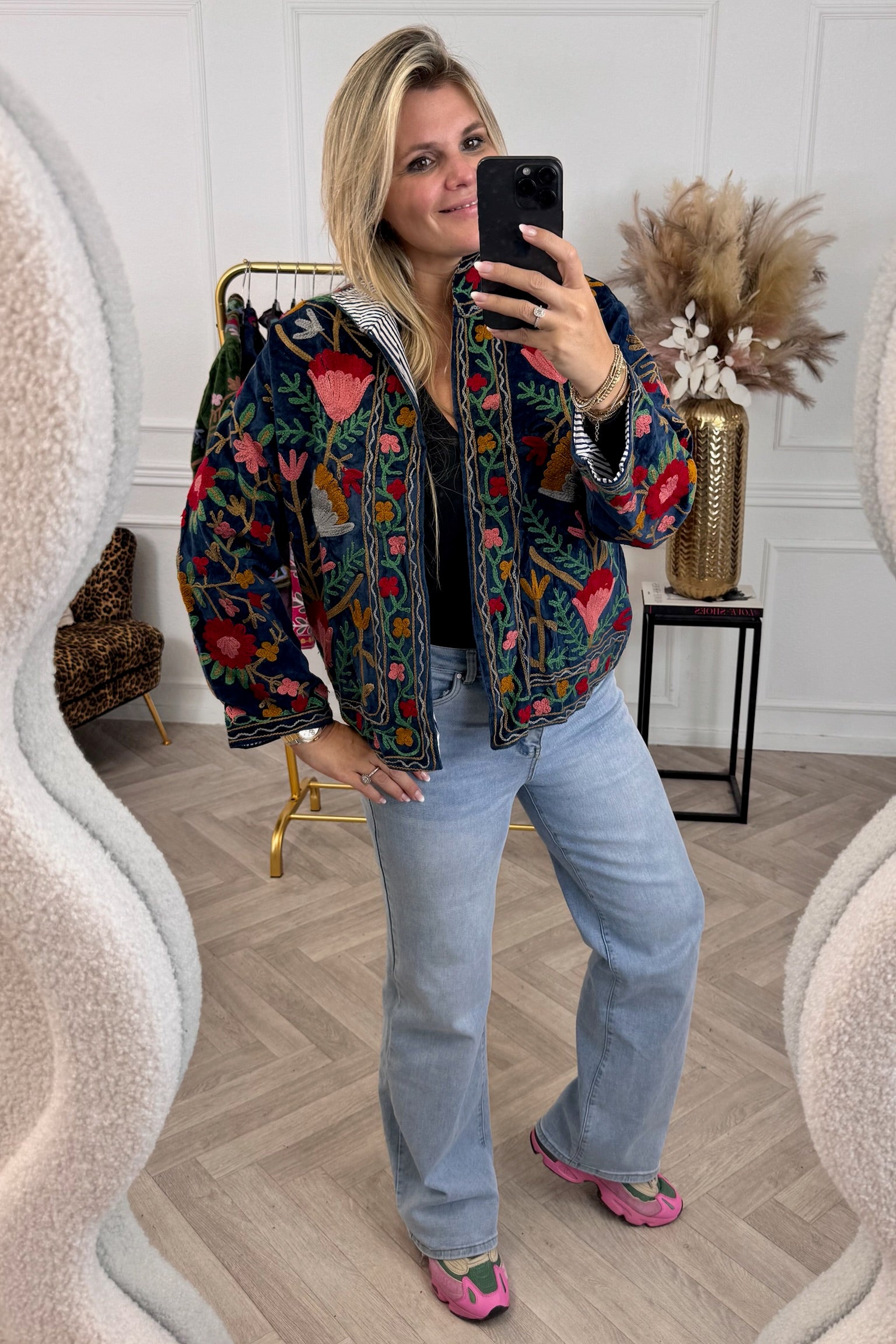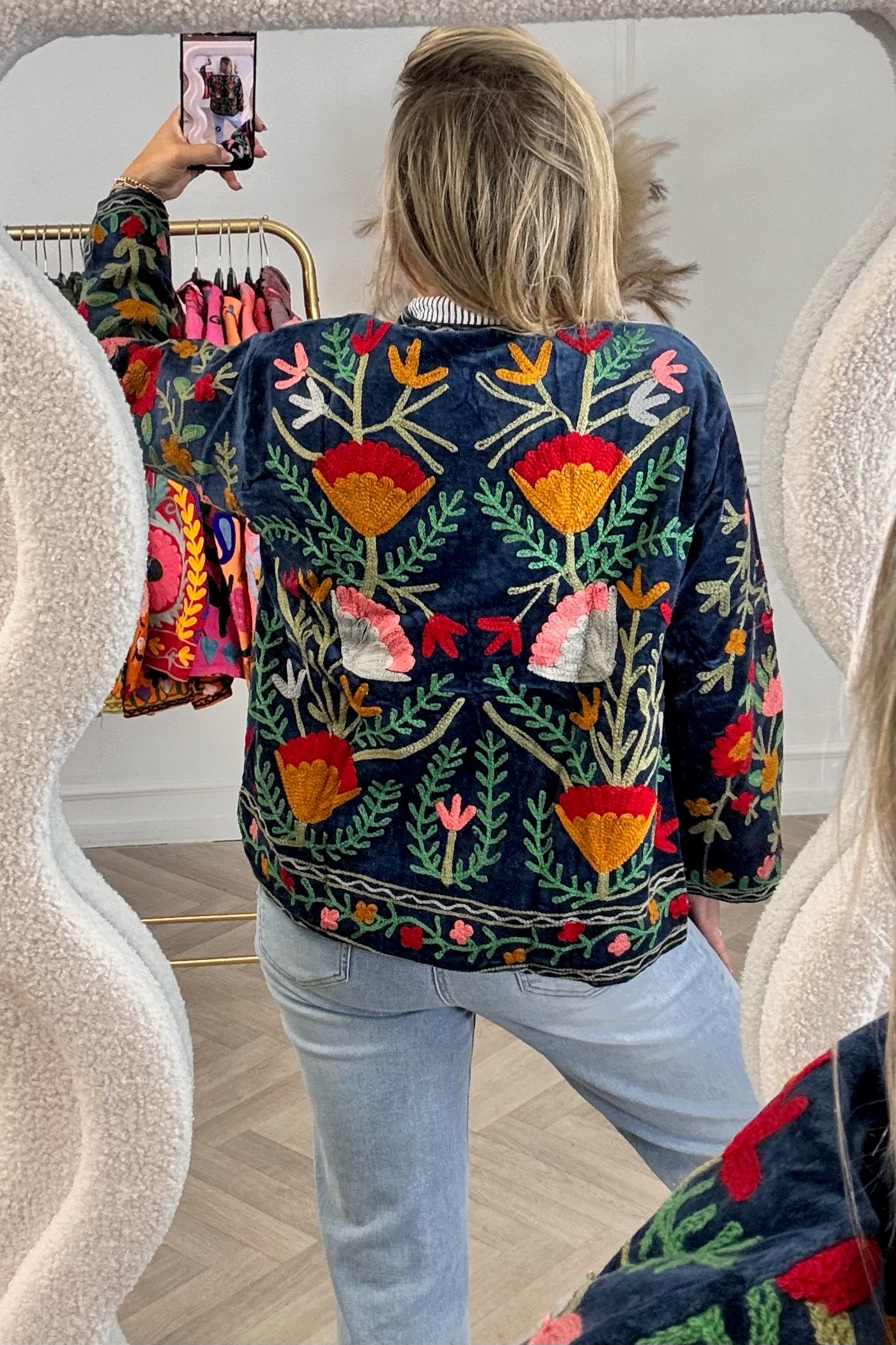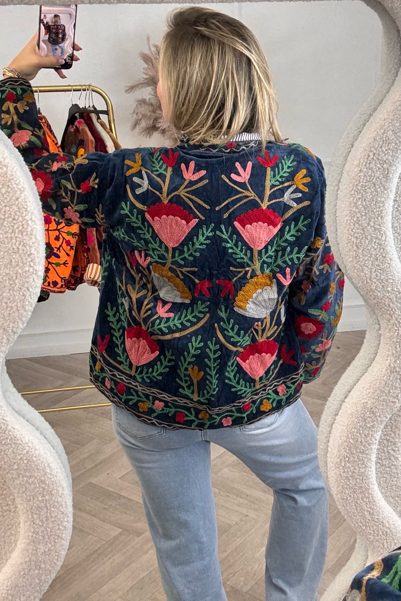 Cotton Velvet Lily Jacket - Navy/Light Pink