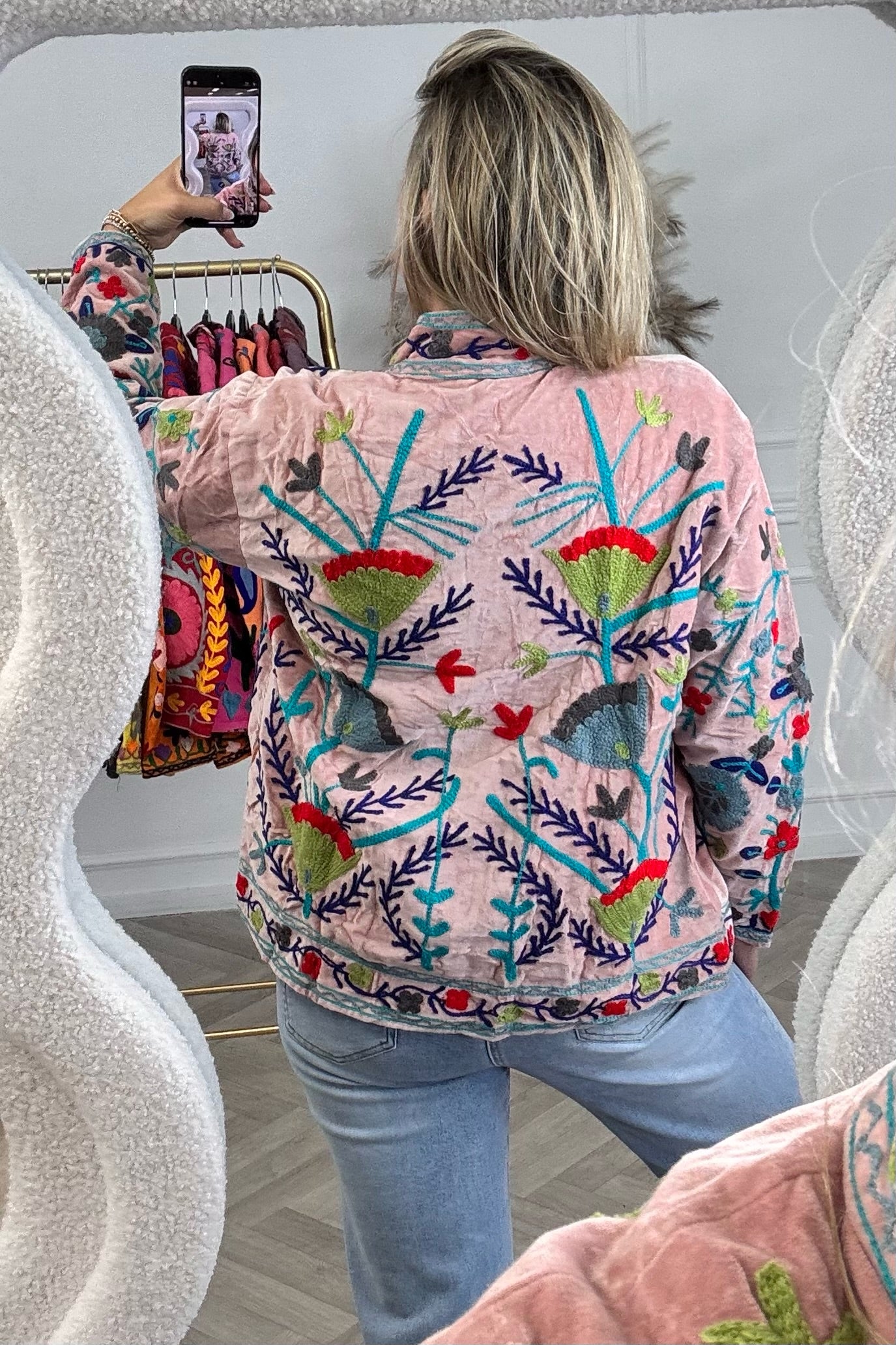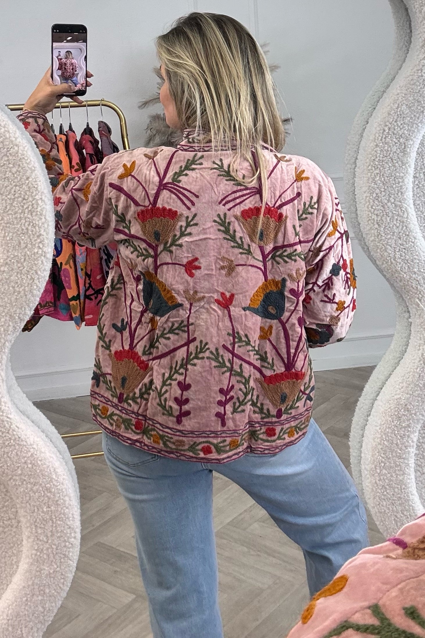 Cotton Velvet Lily Jacket - Old Pink/Green