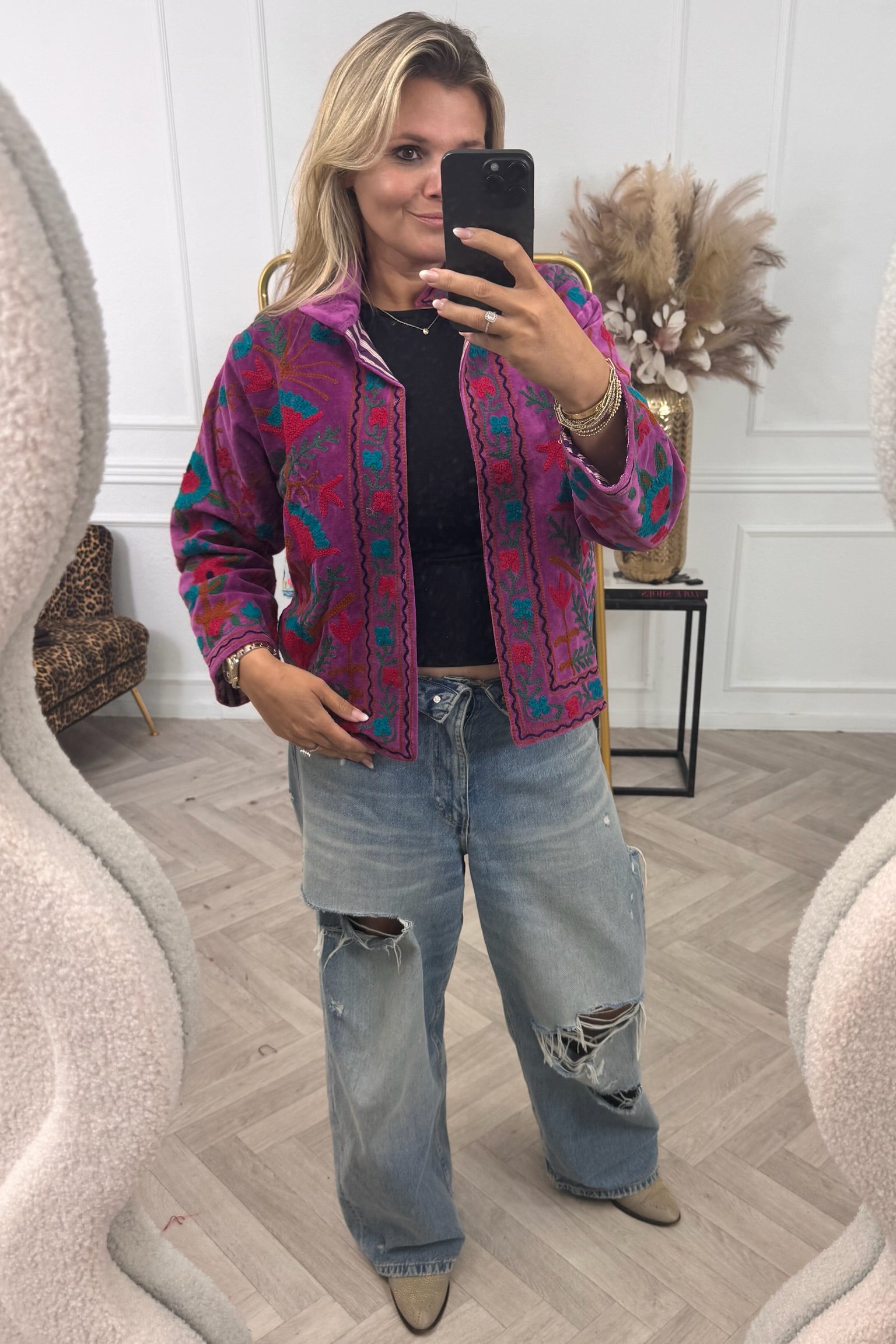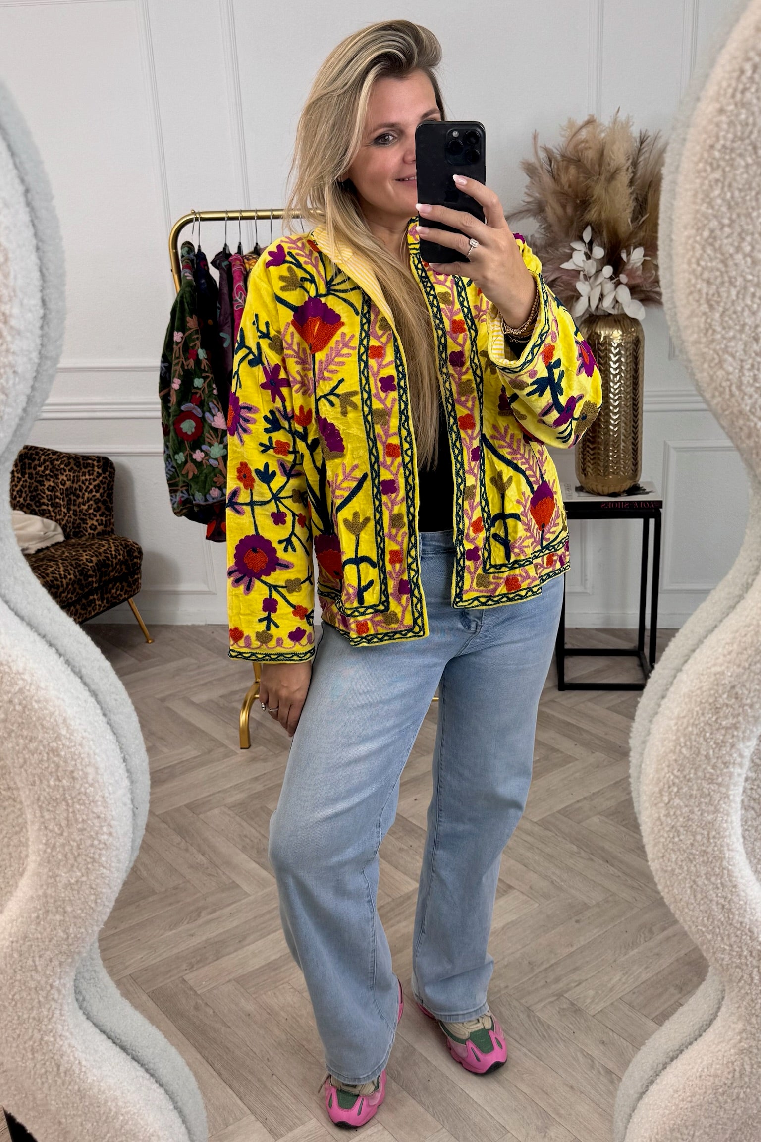 Cotton Velvet Lily Jacket - Yellow/Purple