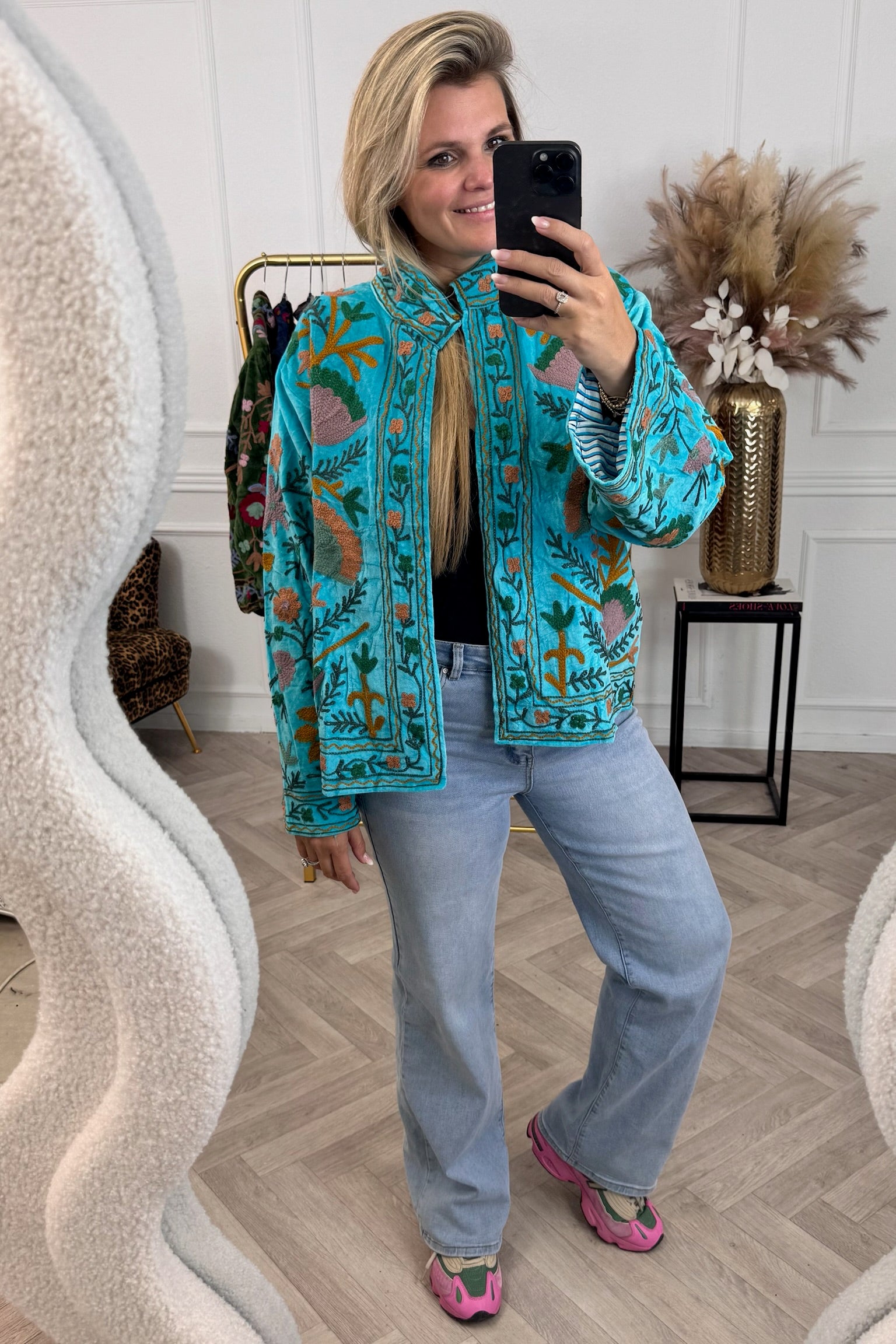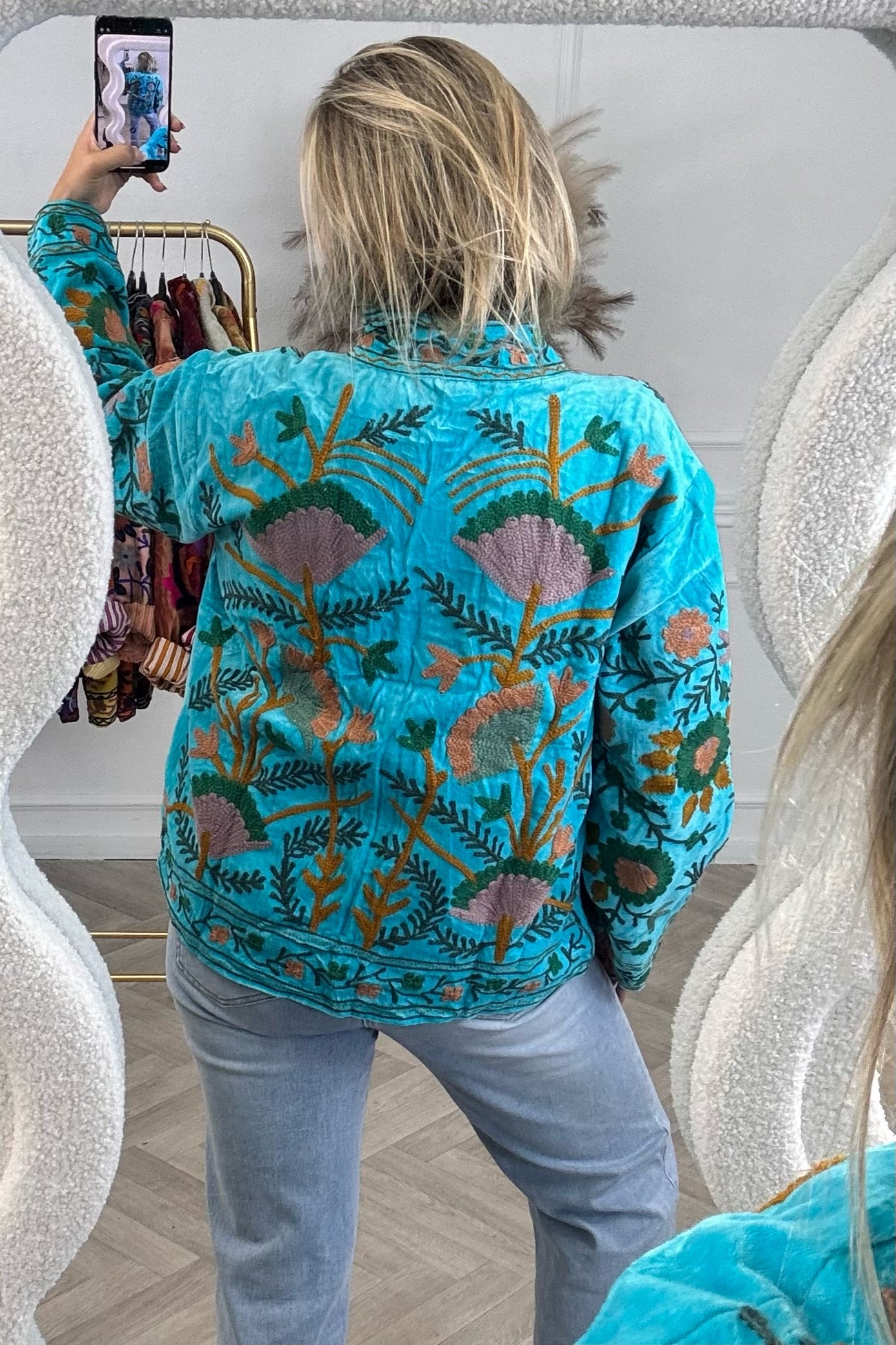 Cotton Velvet Lily Jacket - Light Blue/Oker