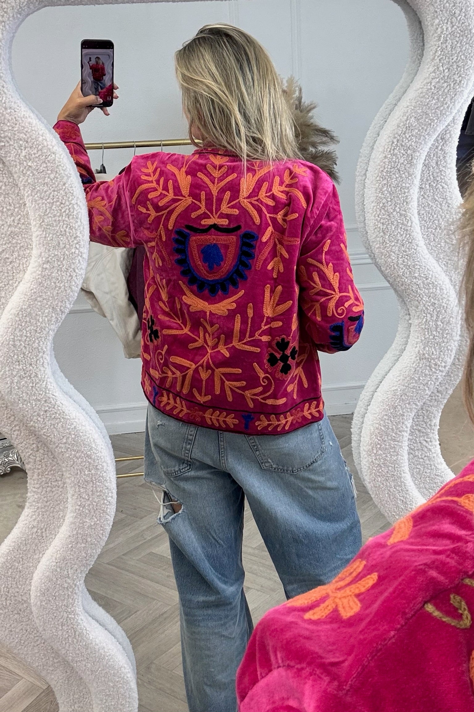 Cotton Velvet Lily Jacket - Old Pink/Red