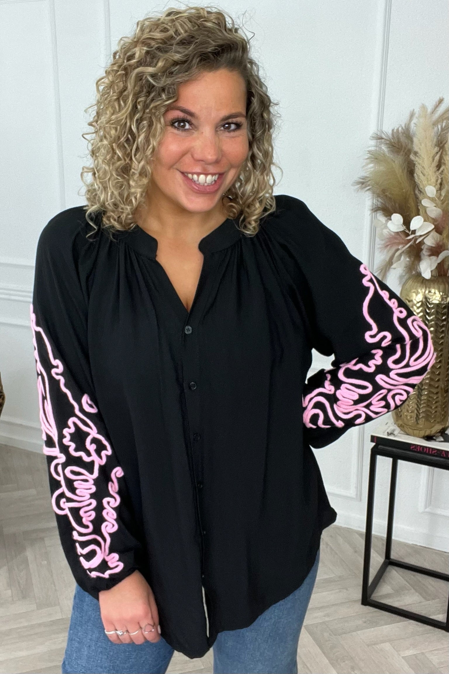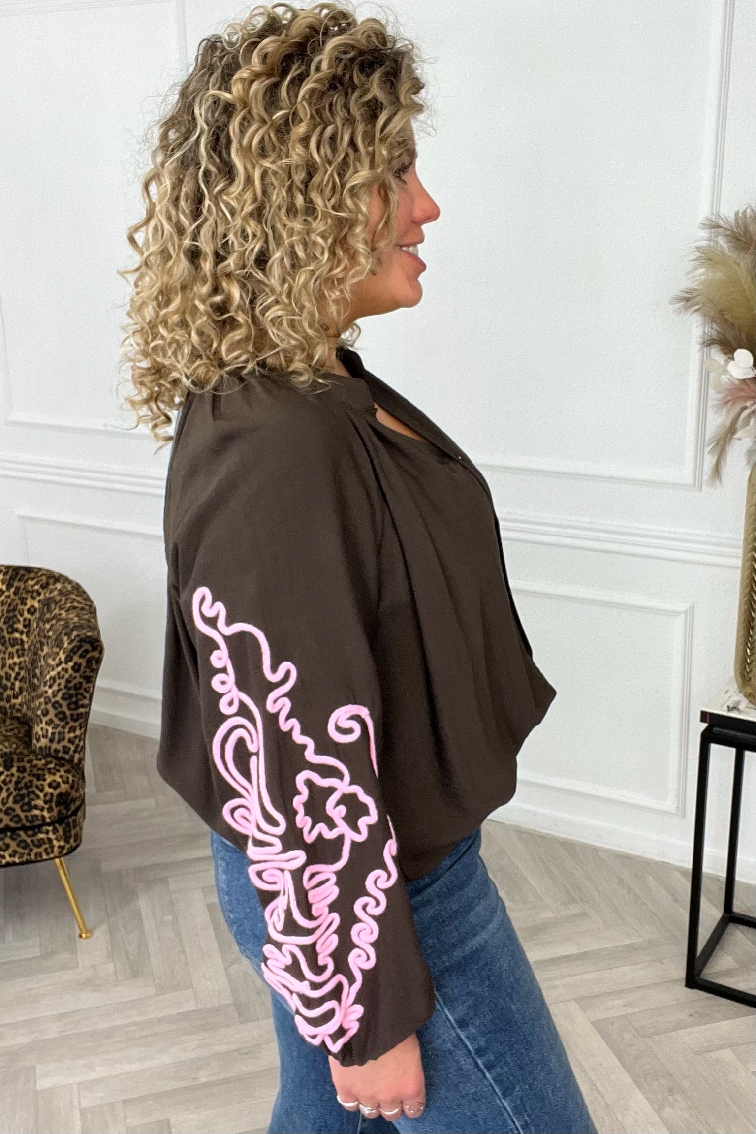 Cotton Velvet Flower Leaves Jacket - Pink/Dark Blue