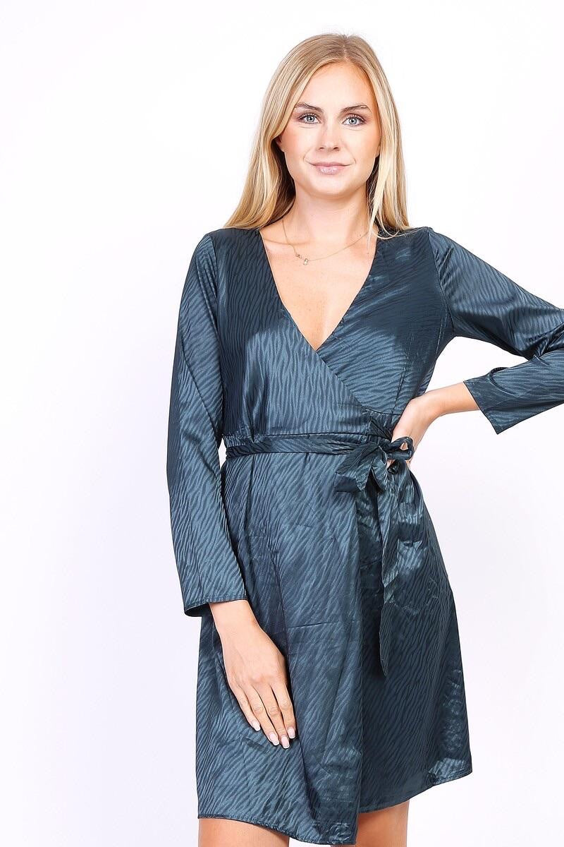 Silk Striped Wrap Dress - Green