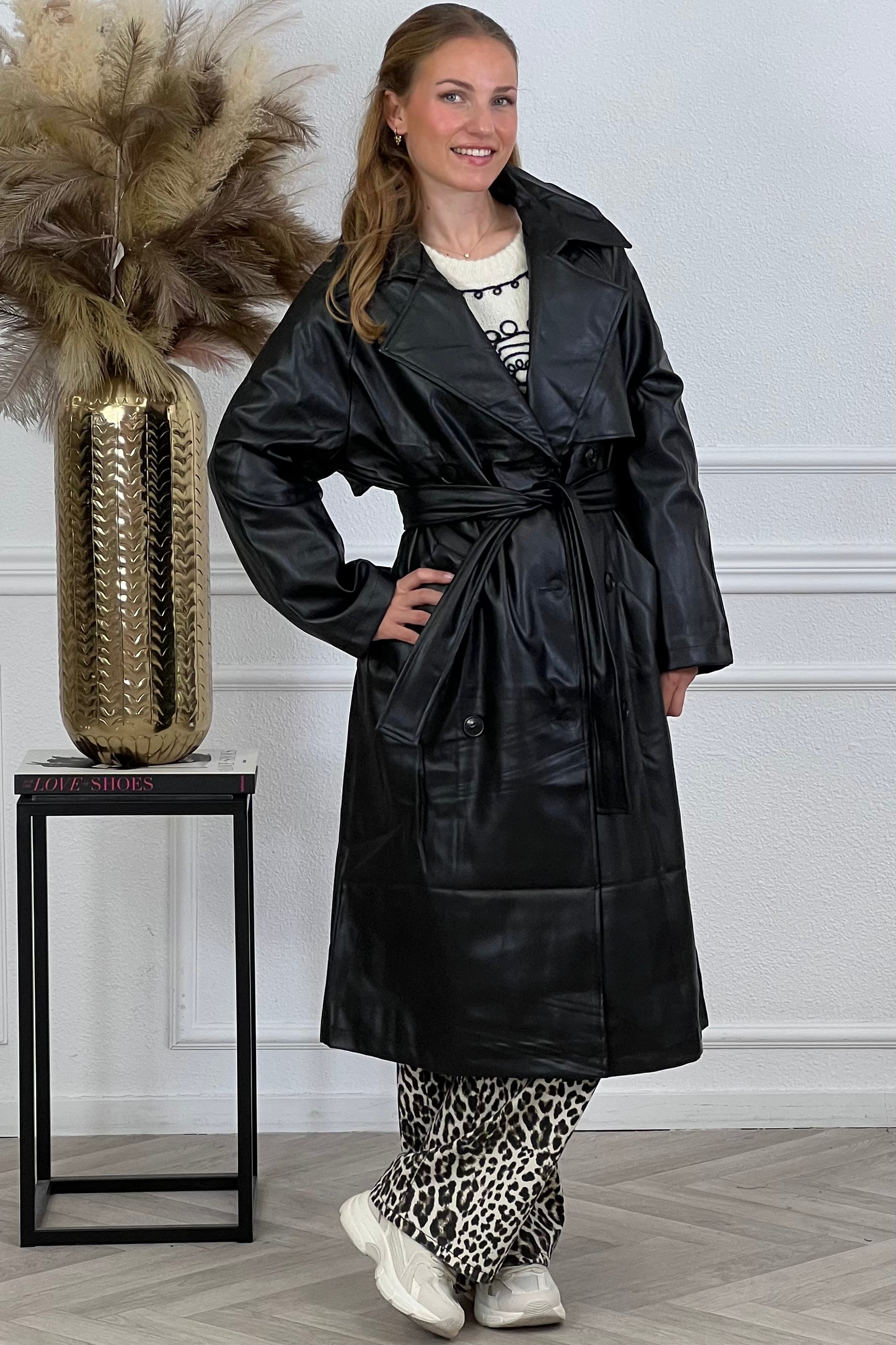 Julie Leather Look Trenchcoat - Black