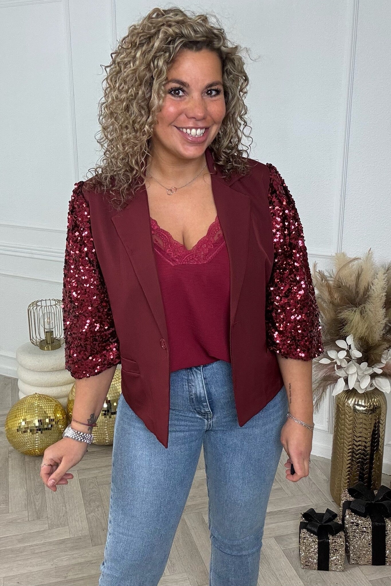 Sequin Sophie Blazer - Burgundy