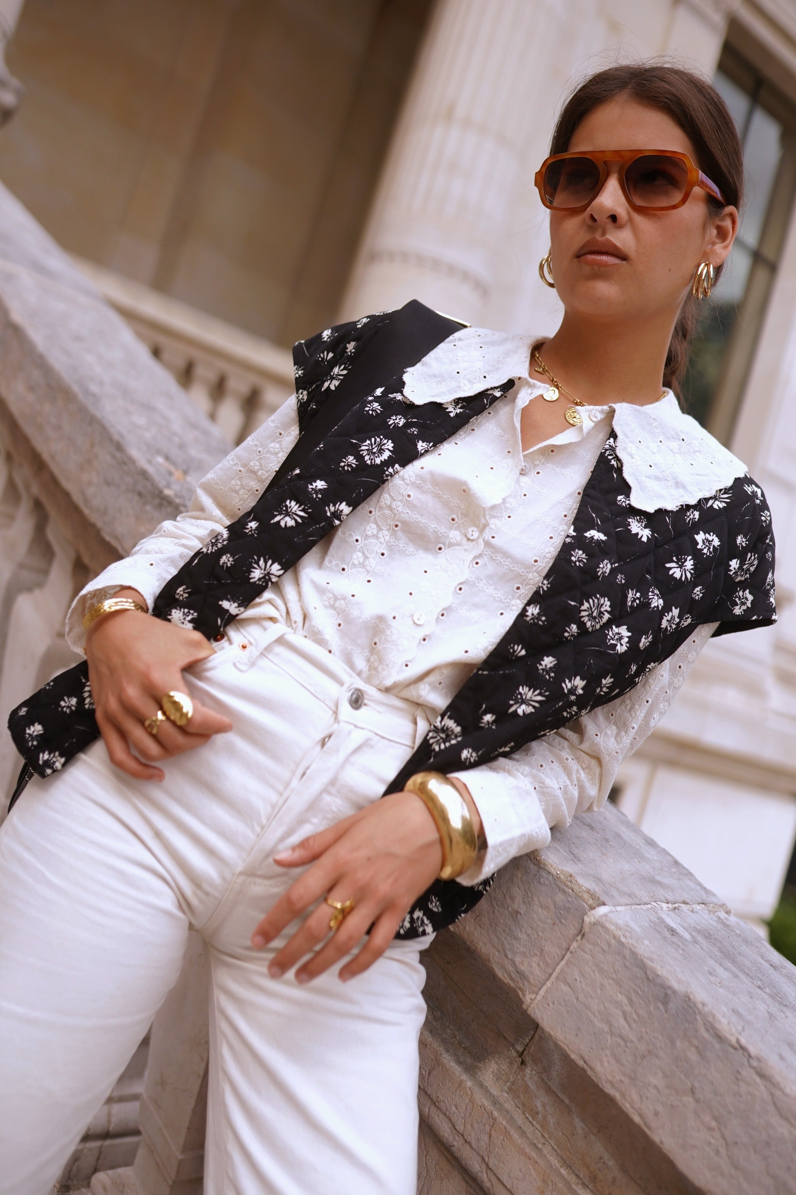 Celina Flower Gilet - Black/White