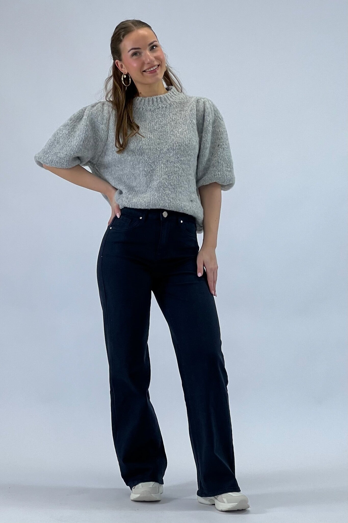 Bat Sleeve Ruffle Sweater - Dark Grey