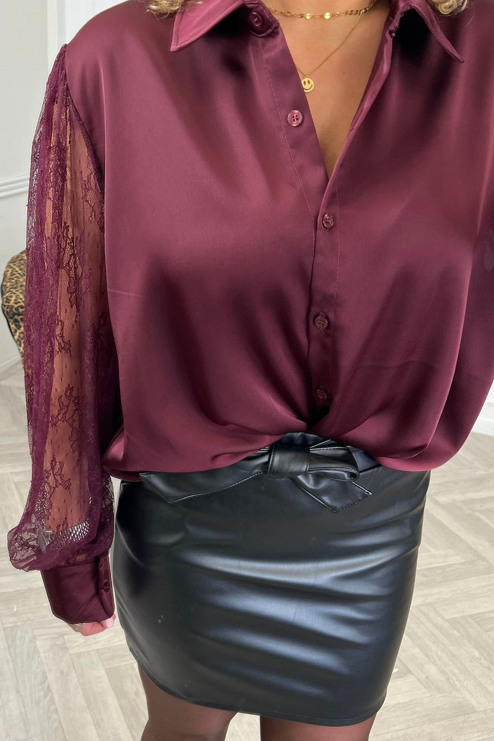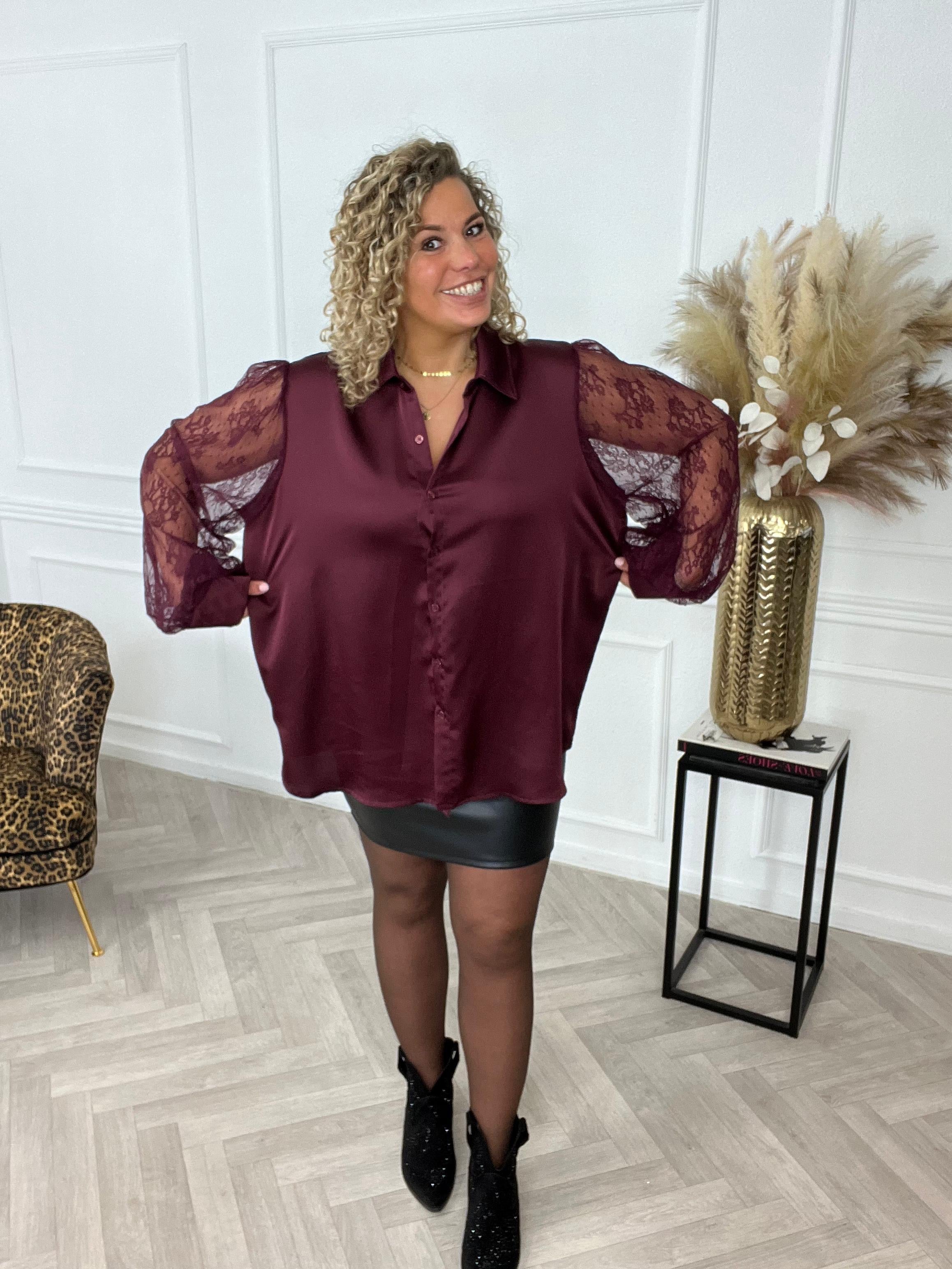 Silky Lace Sleeve Blouse - Bordeaux