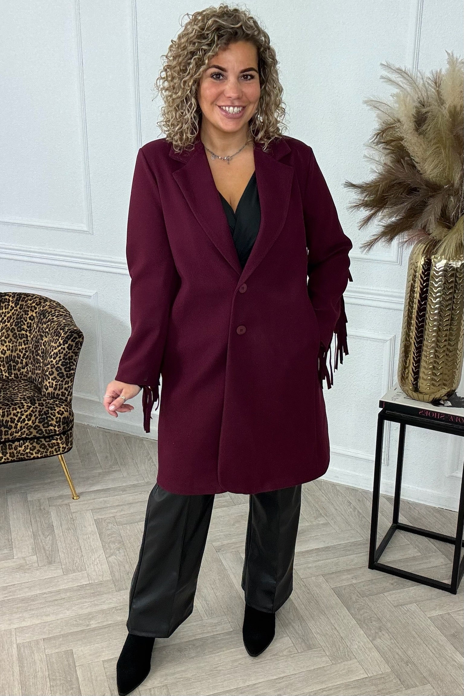 Perfect Fringe Coat - Bordeaux