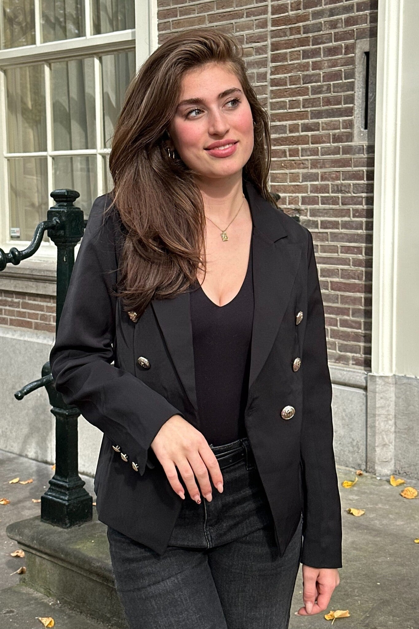 Chloe Button Blazer - Black
