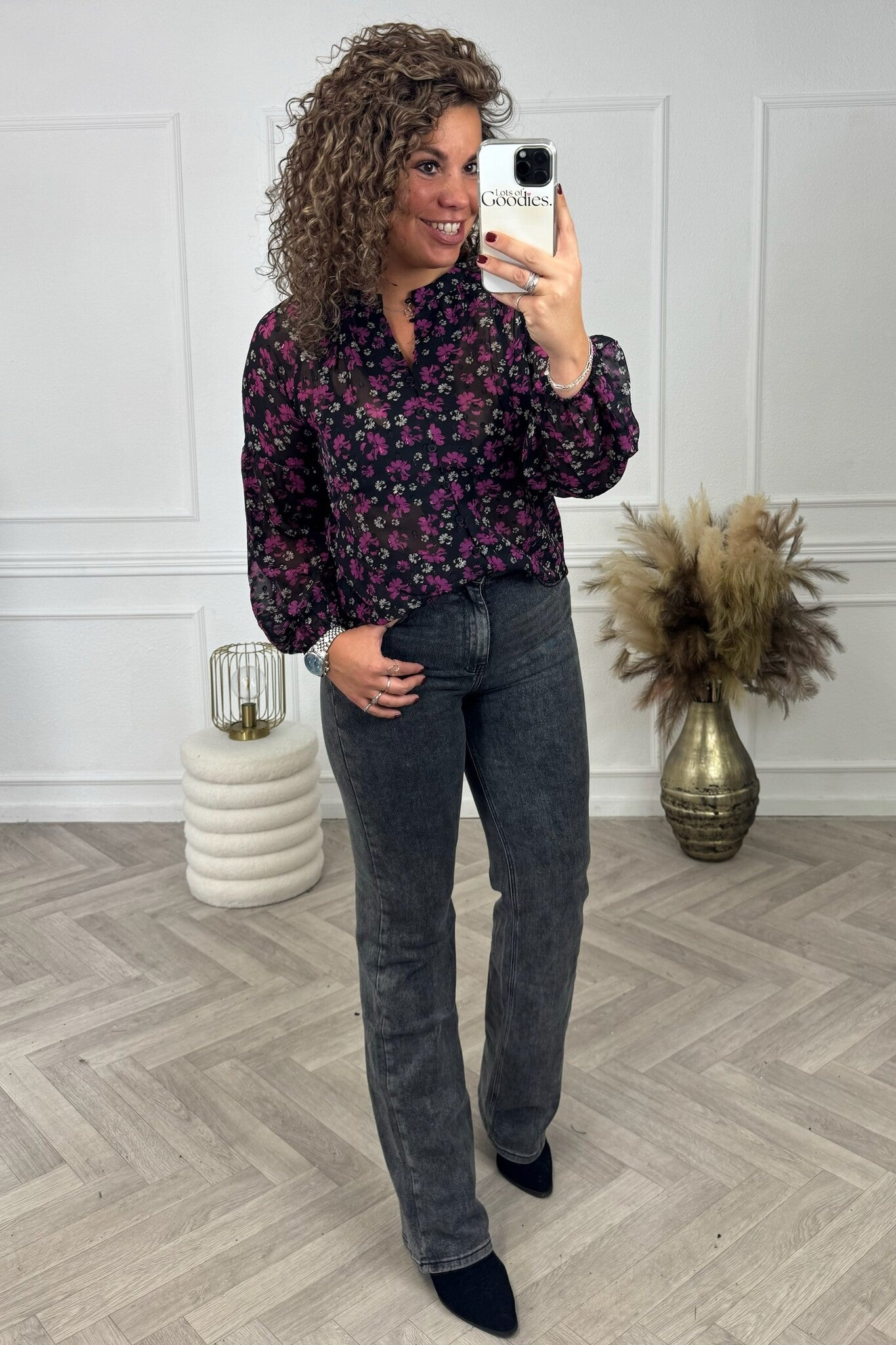 Sèrena Broderie Pocket Blouse - Navy/Beige