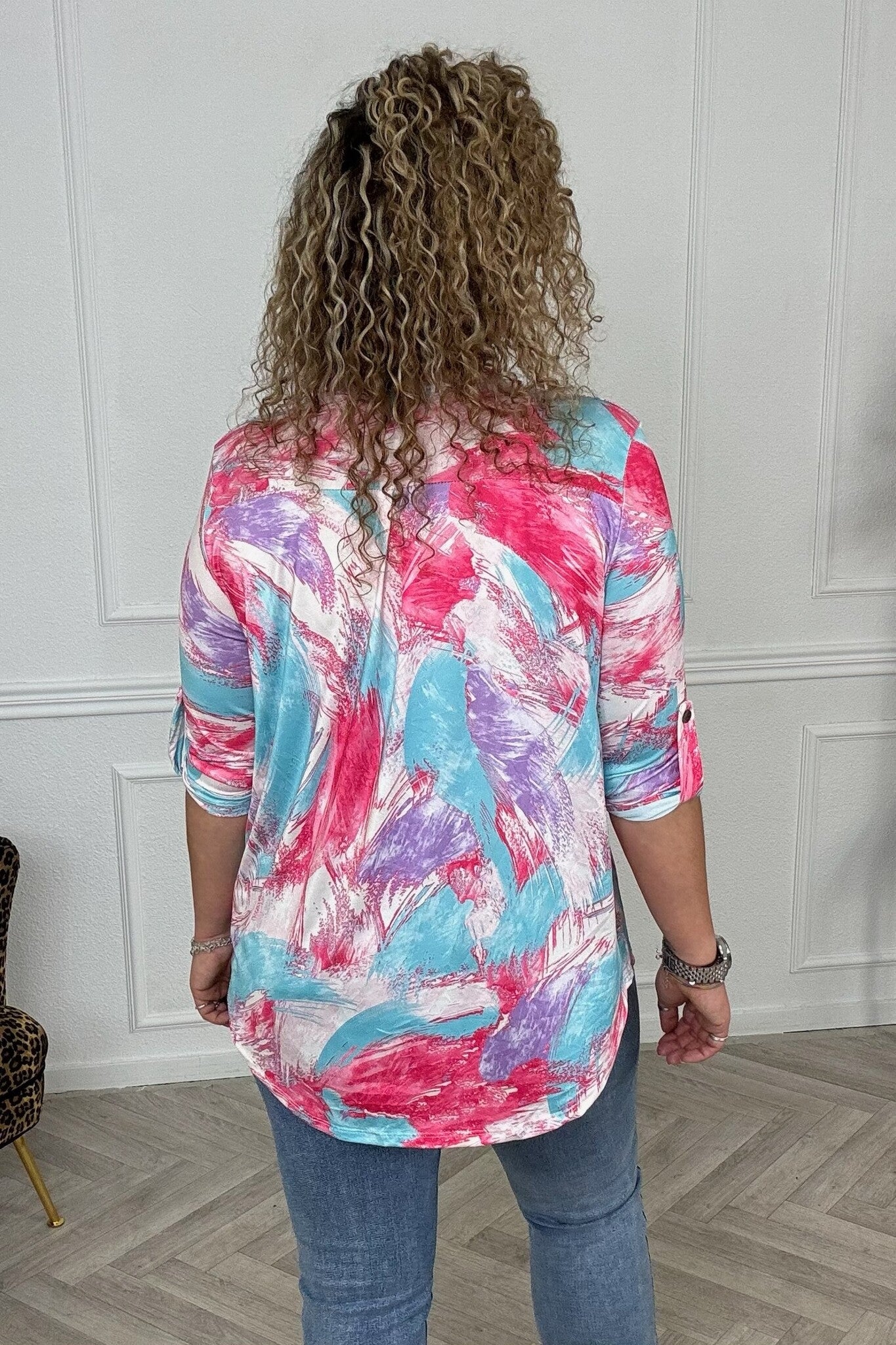 Perfect Tie Dye Print Blouse - Pink/Lila/Blue