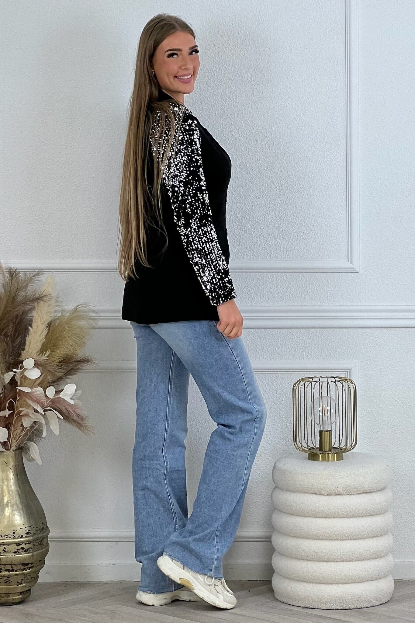 De classy glitter sleeve blazers hebben gedetailleerde mouwen met een prachtige glitter patroon. De blazer heeft imitatie zakken aan de voorkant en een mooie fit. Shop hem in Silver!