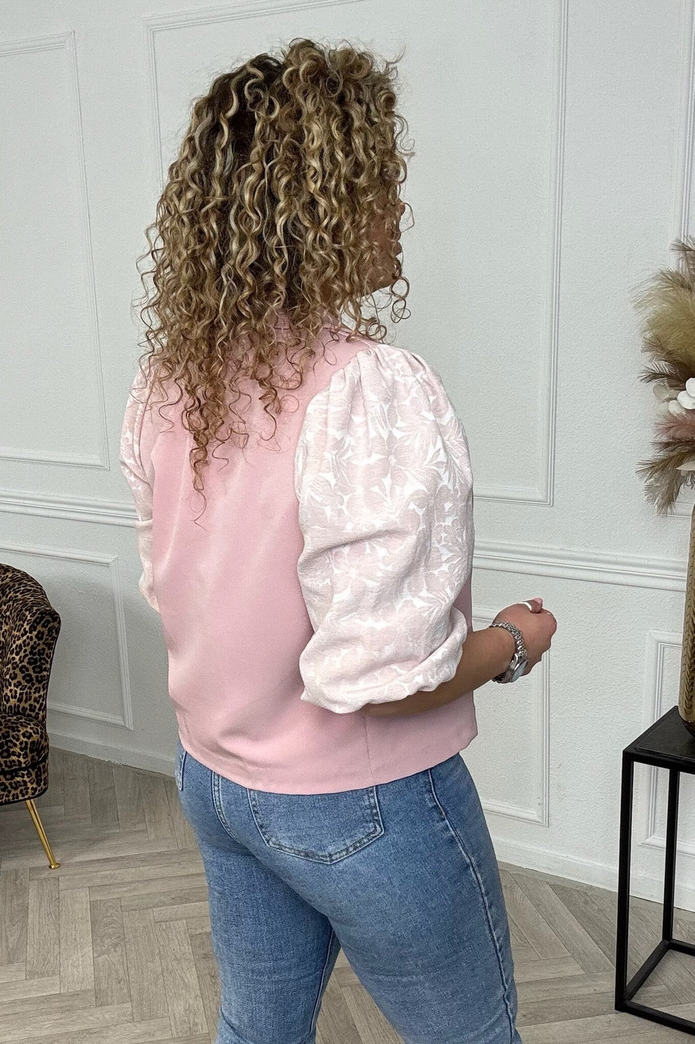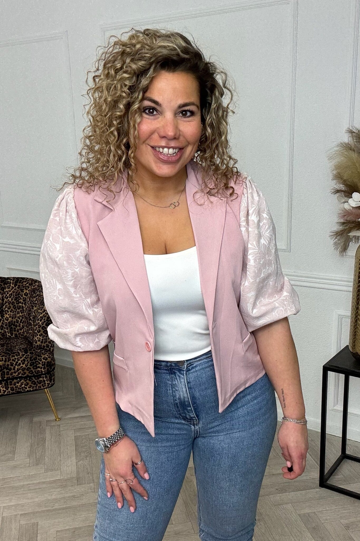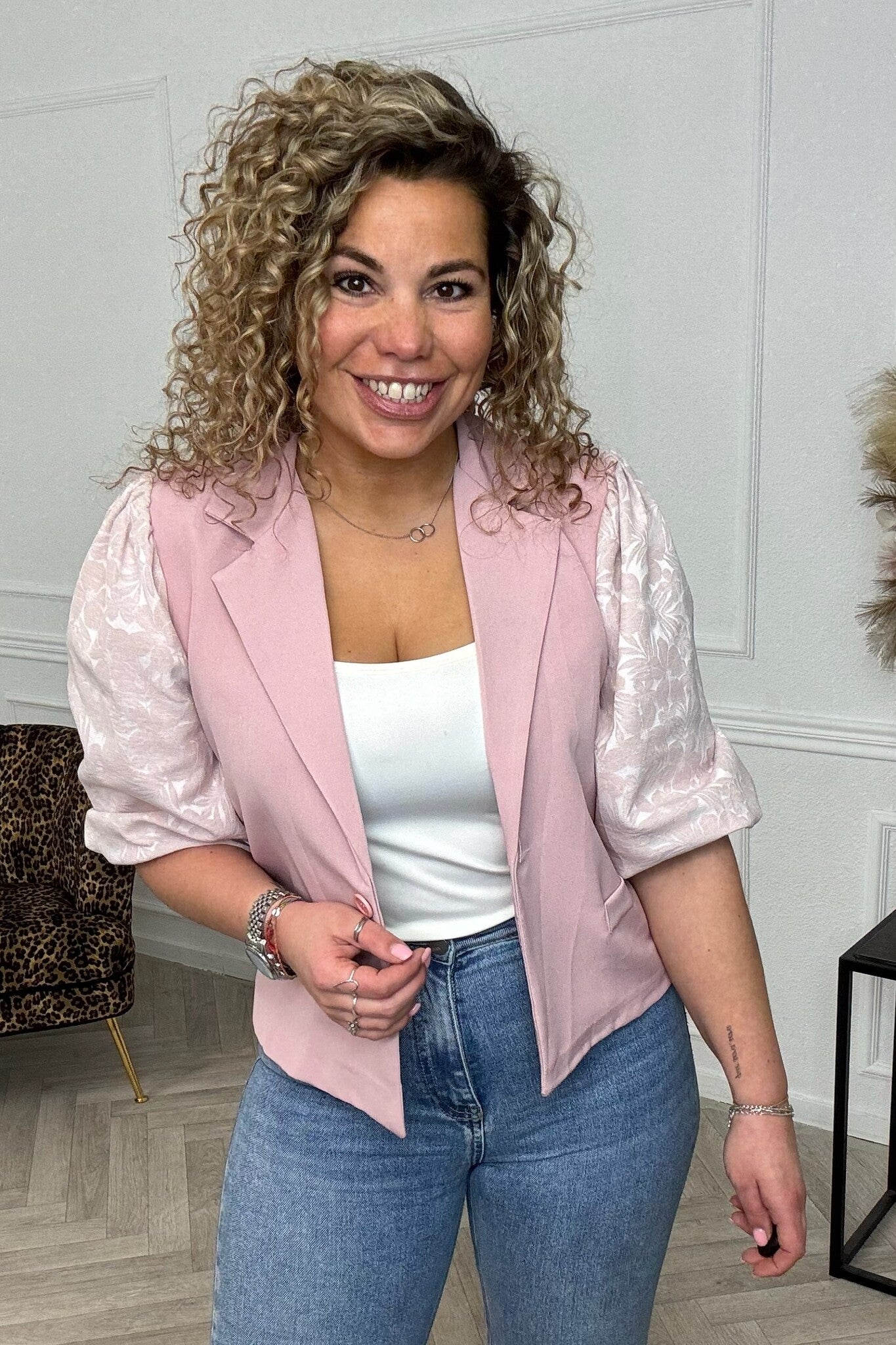 Deze prachtige blazer heeft bloemgeprinte mouwen en een hele prettige pasvorm! Shop hem in pink!