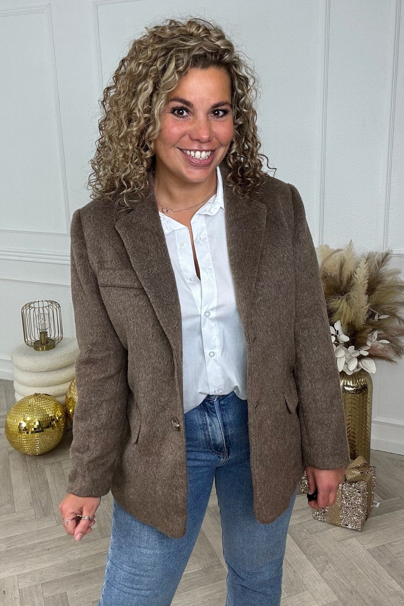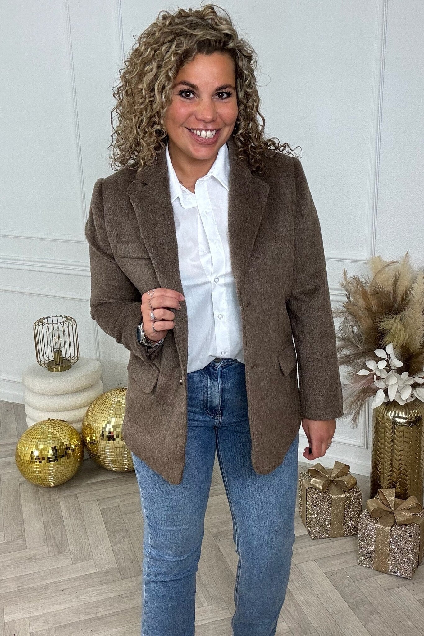 Hoe gaaf is deze blazer met een vachtje?! Staat superleuk en is ook nog eens lekker warm! Shop hem nu in brown.