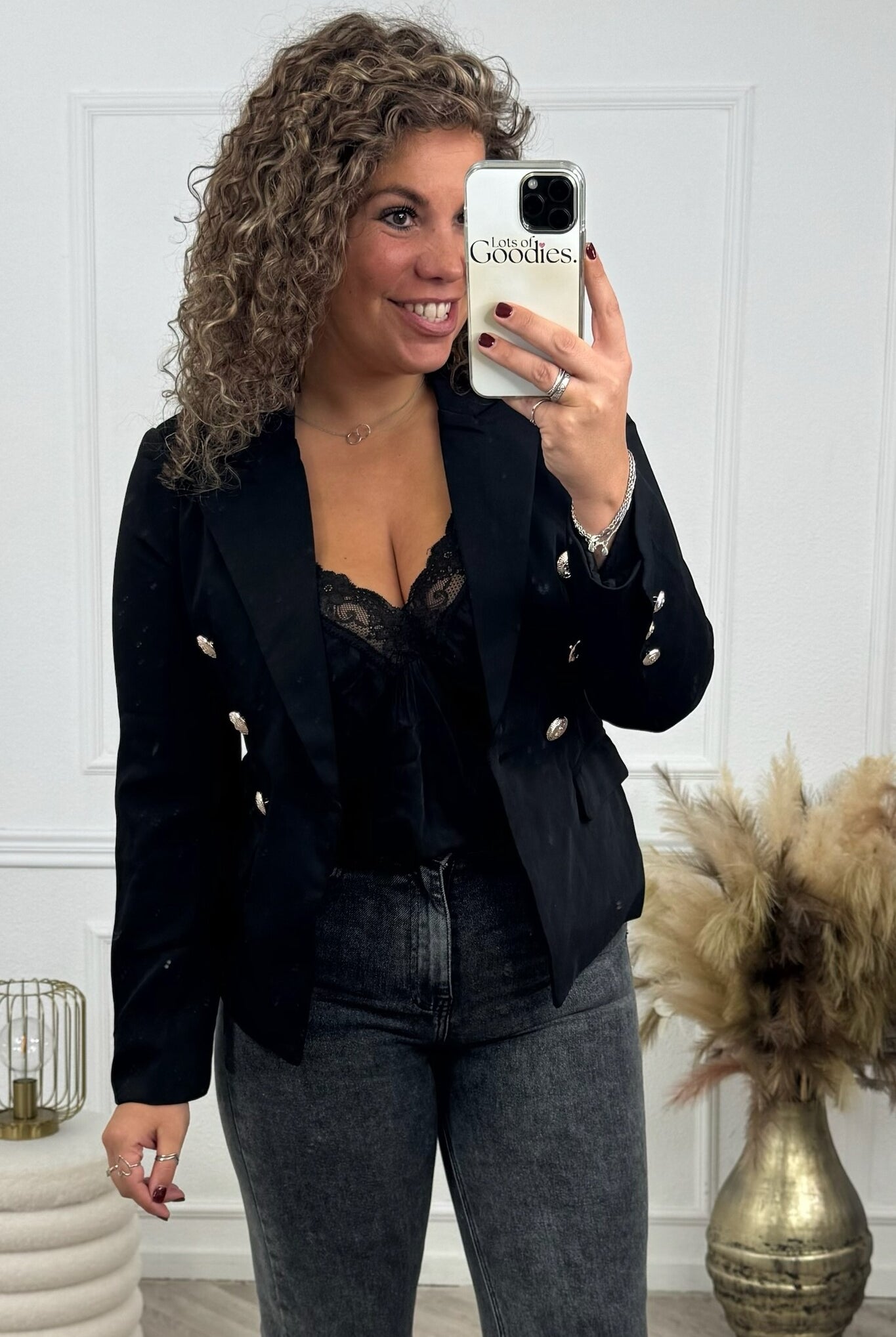 Ontdek bij Lots of Goodies een prachtige selectie blazers voor dames, die jouw outfit een sophisticated touch geven. Of je nu op zoek bent naar een formele blazer voor op kantoor of een trendy model om je casual look te upgraden, wij hebben voor elke gelegenheid de perfecte keuze.
