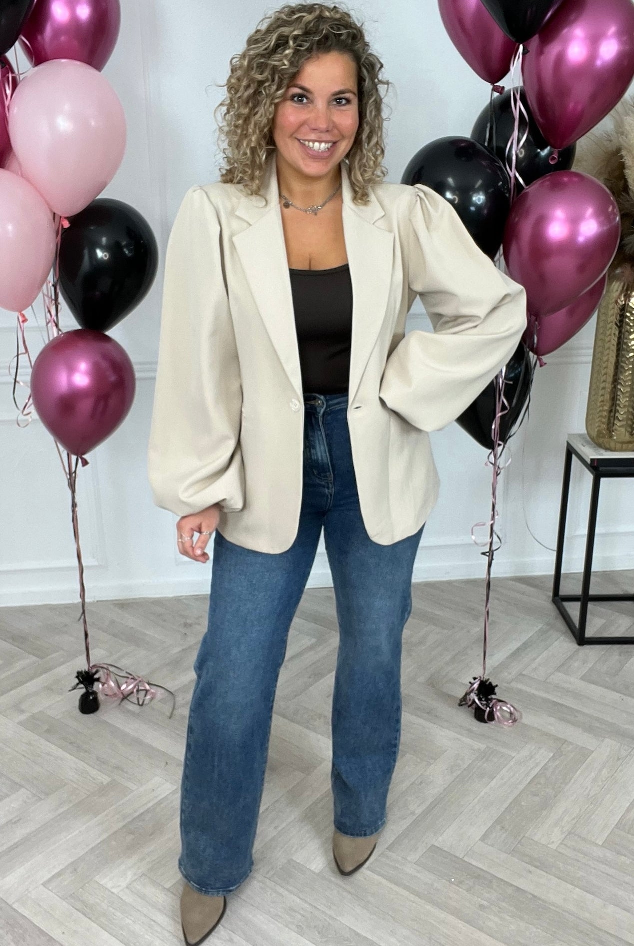 Bestellen kan gemakkelijk en snel in onze gebruiksvriendelijke webshop, waar je een ruim assortiment aan musthaves, stijlvolle blazers en de leukste accessoires vindt!