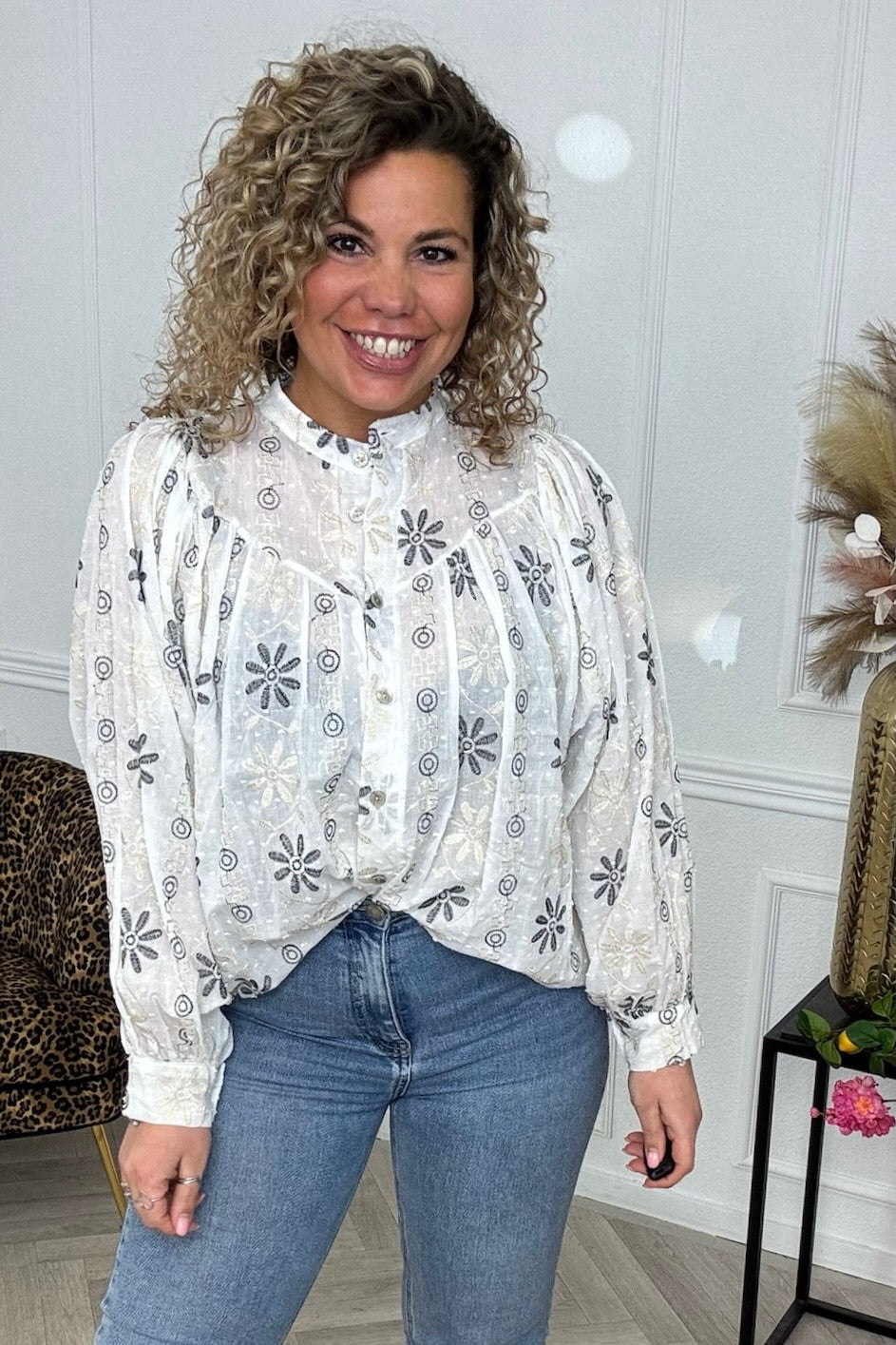 Deze heerlijke blouse met een superleuke bloemen print is toch zo leuk! Shop hem nu in white/black.