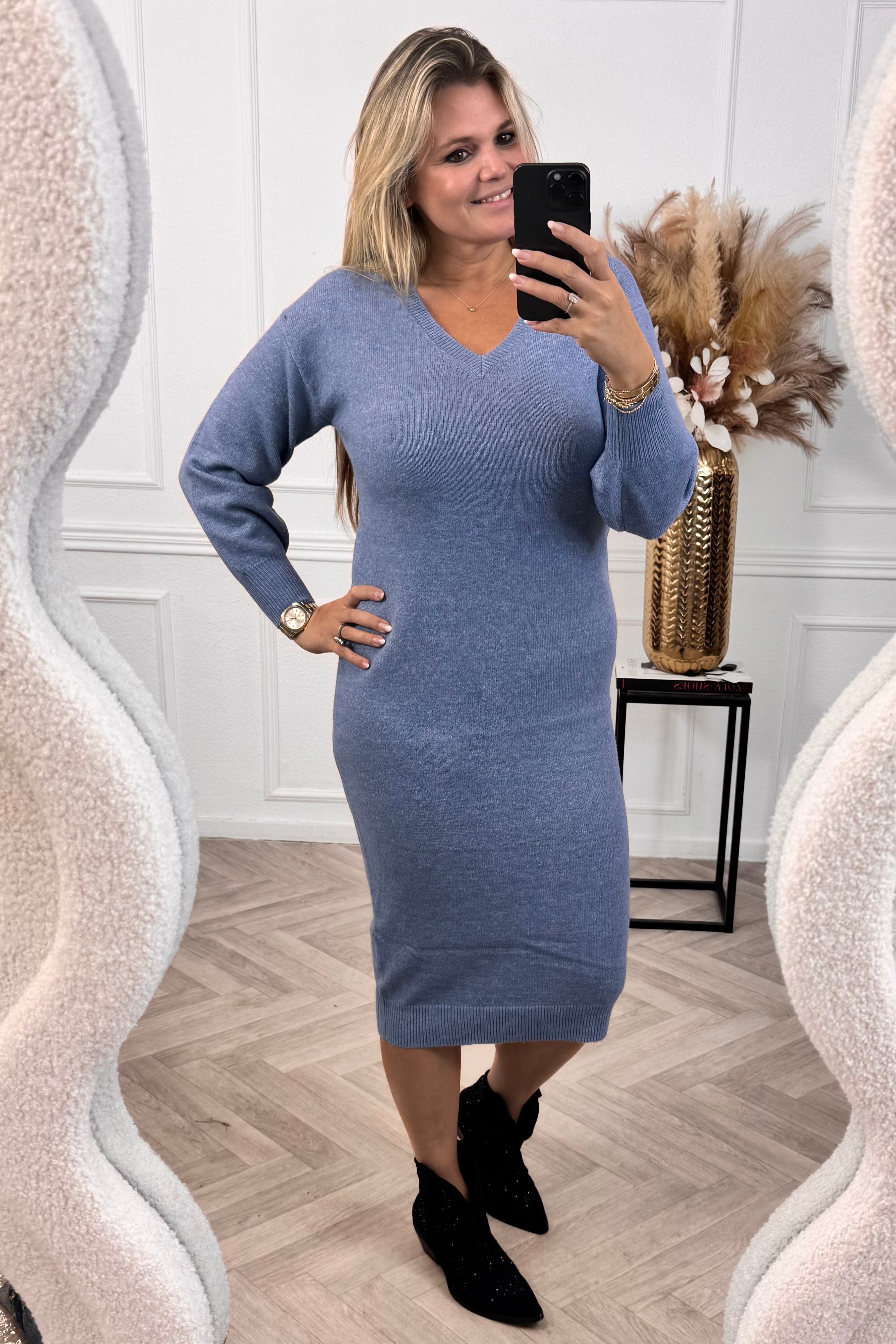 Een lekker warme sweater dress die er ook nog eens super leuk uitziet, wat wil je nog meer? Shop de balloon sleeve sweater dress nu in denim!