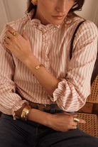 Claire Ruffle Striped Blouse - Pink