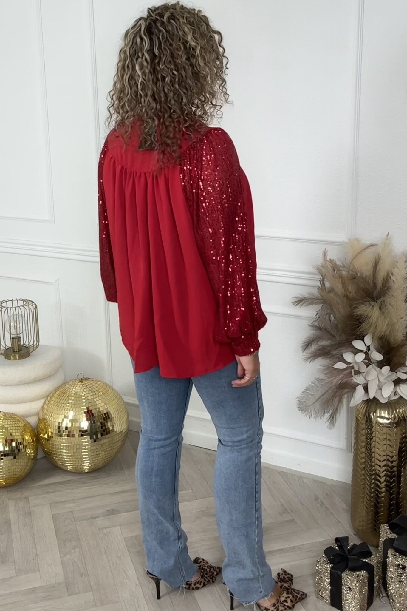 Holiday Season is here! Shop deze waanzinnige curvy sequin blouse in jouw favo kleur! Bijvoorbeeld in red! Combineer met een rok tot een superoutfit!