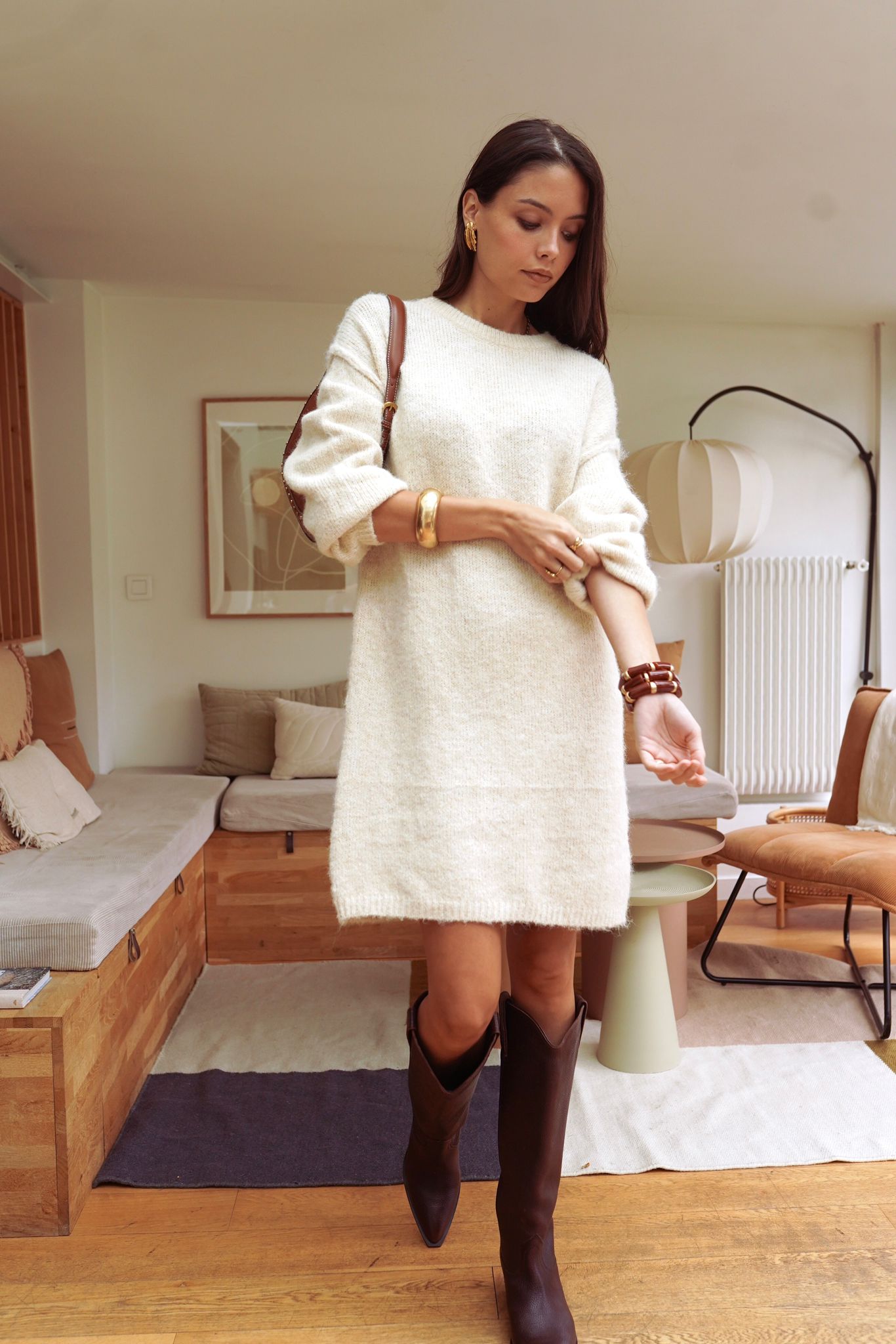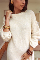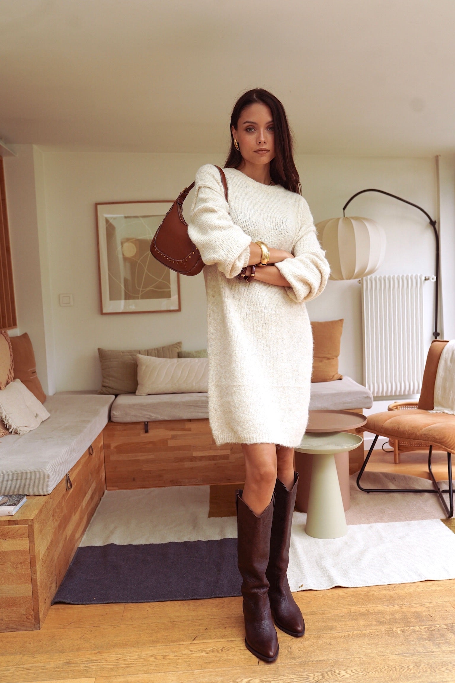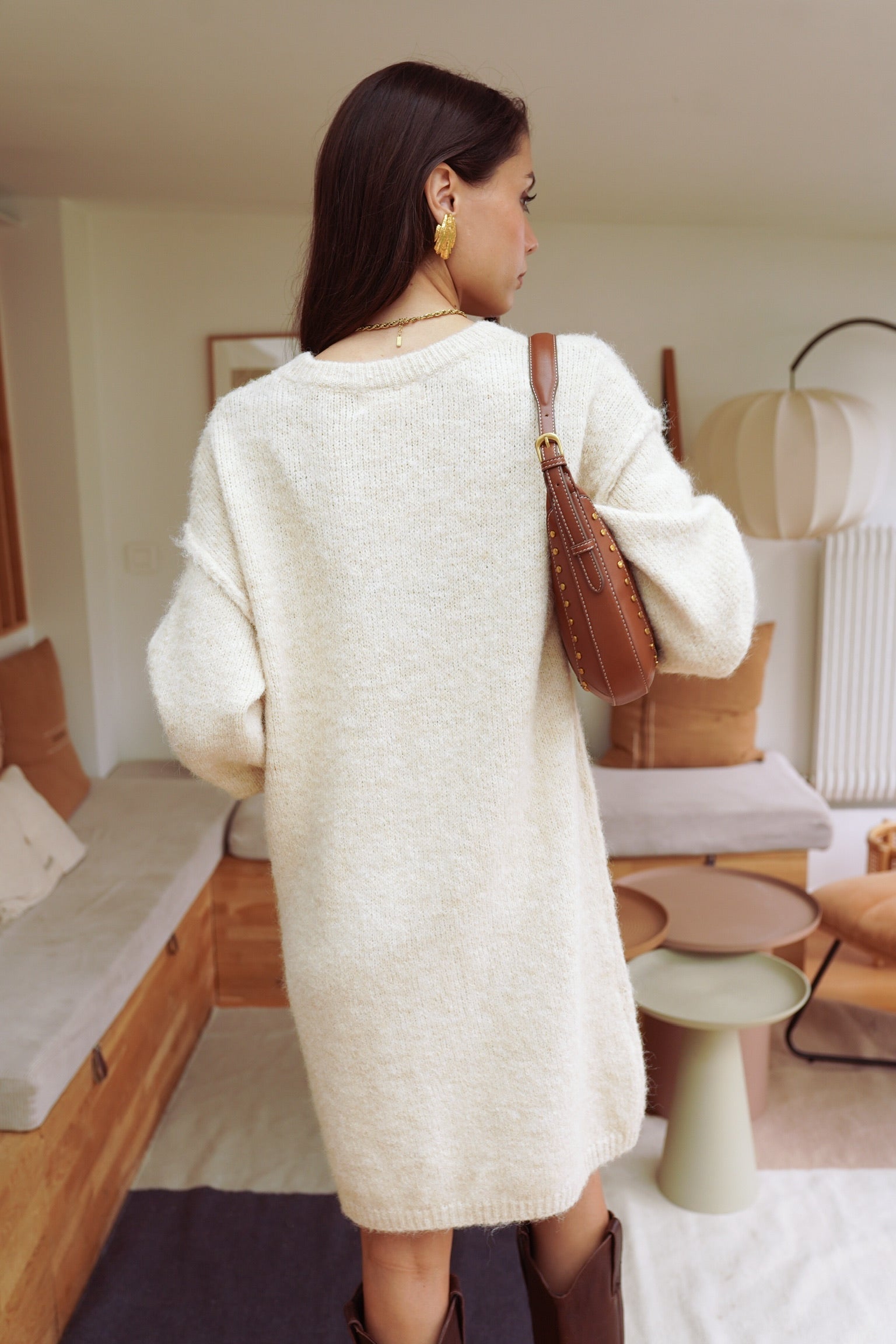 Heerlijke warme knitted jurk. Super geschikt voor de aankomende koude seizoenen. Shop de donna knitted dress nu in beige!