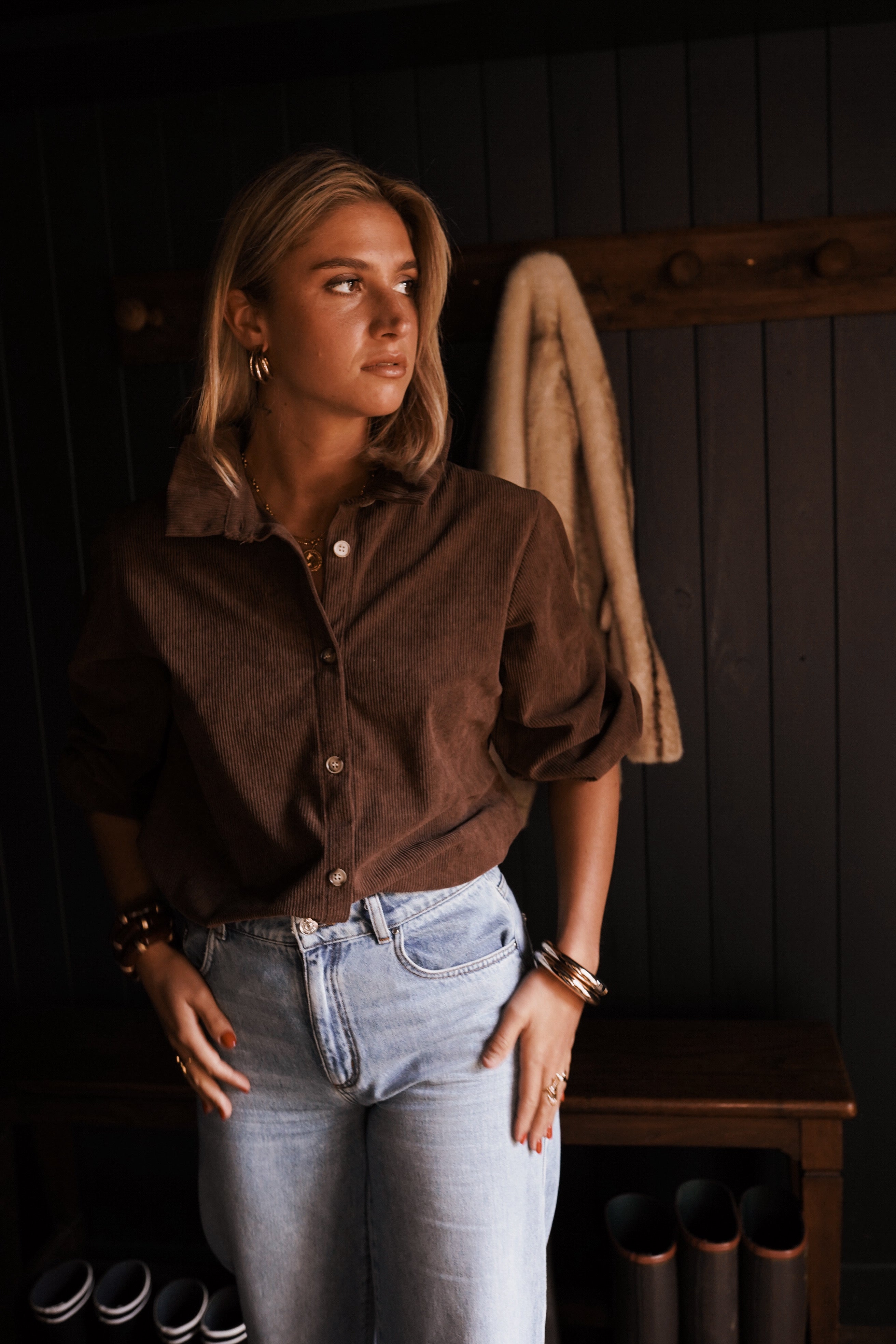 Mega leuke blouse en helemaal van nu! Shop de jill rib blouse nu snel in brown!