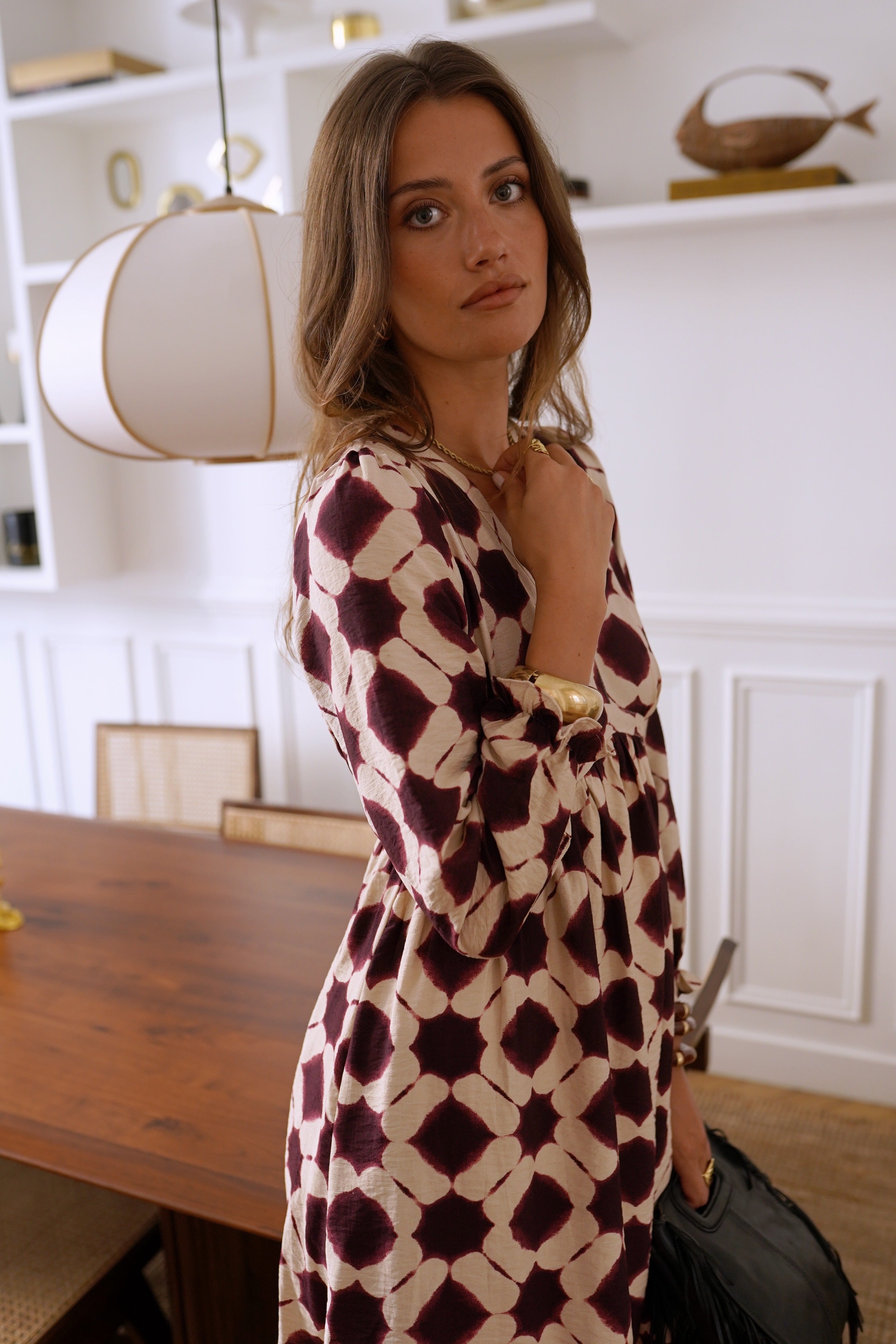 Loes Circle Dress - White/Bordeaux