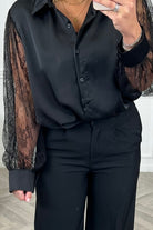 Silky Lace Sleeve Blouse - Black