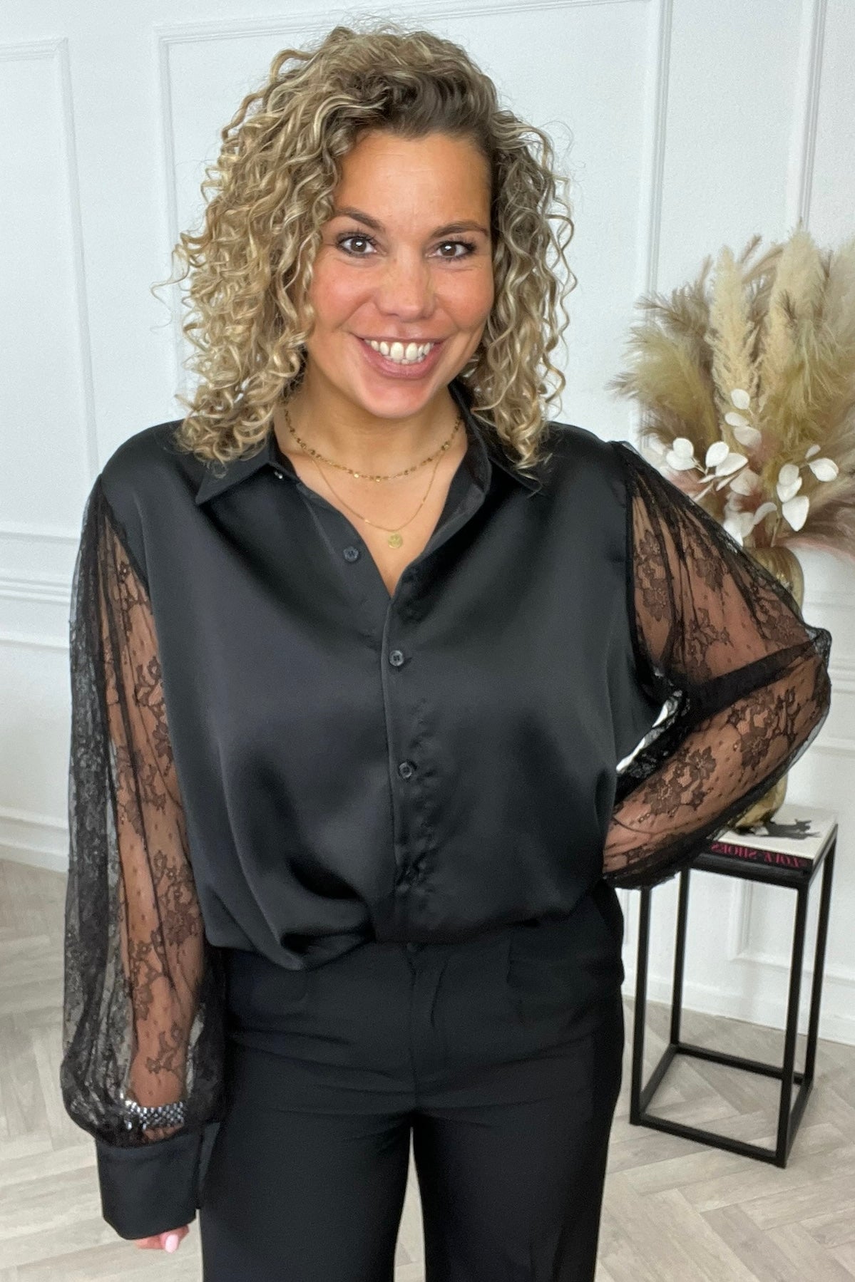 Een super mooie blouse! De satijnen stof in combinatie met de kanten mouwen zorgt voor een elegante uitstraling. Shop de silky lace sleeve blouse daarom nu in black!