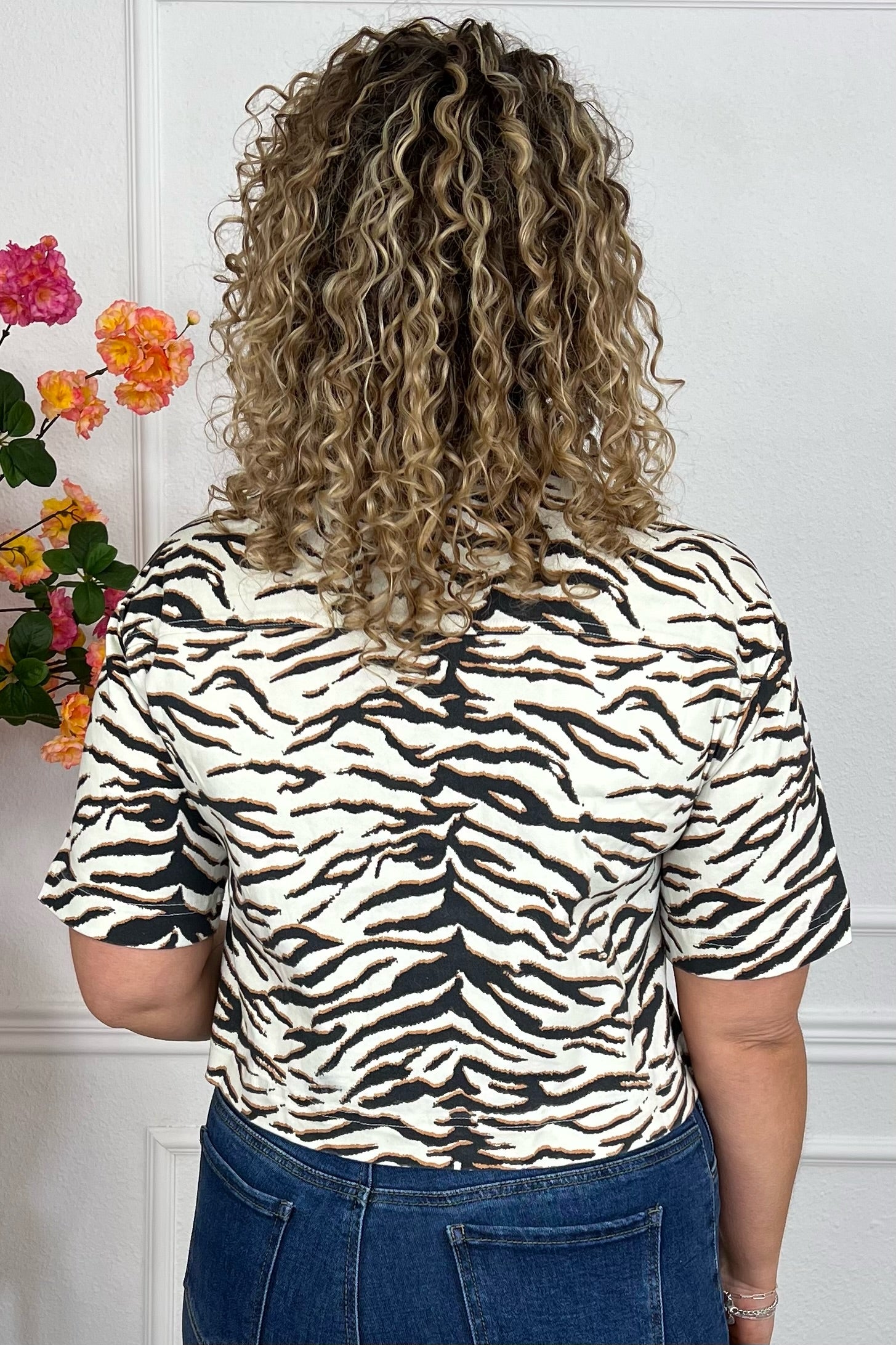 Short Zebra Blouse - Black/Beige