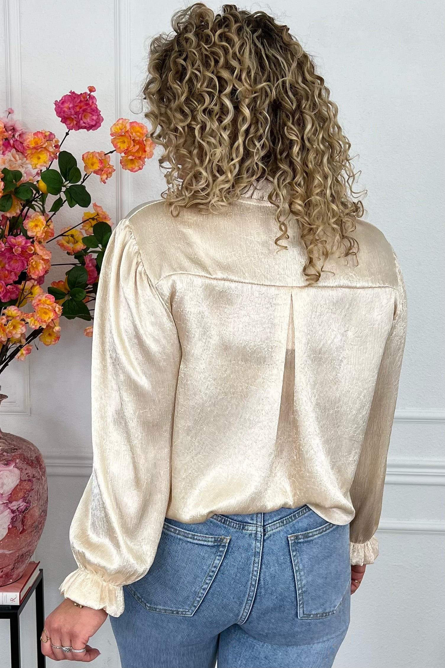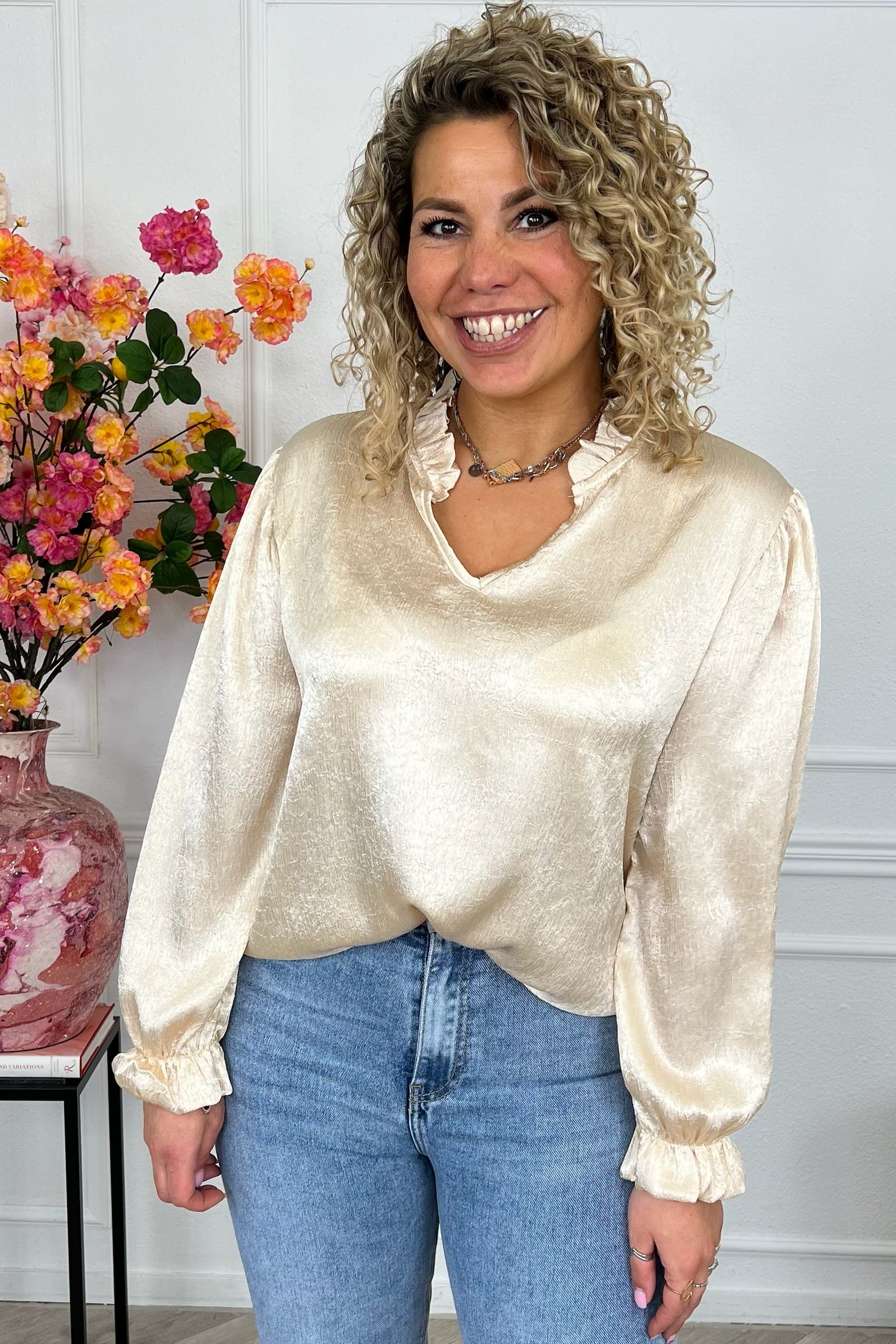 Silky en shiny! Deze fijne blouse is heerlijke luchtig en staat fantastisch! Shop hem in gold!