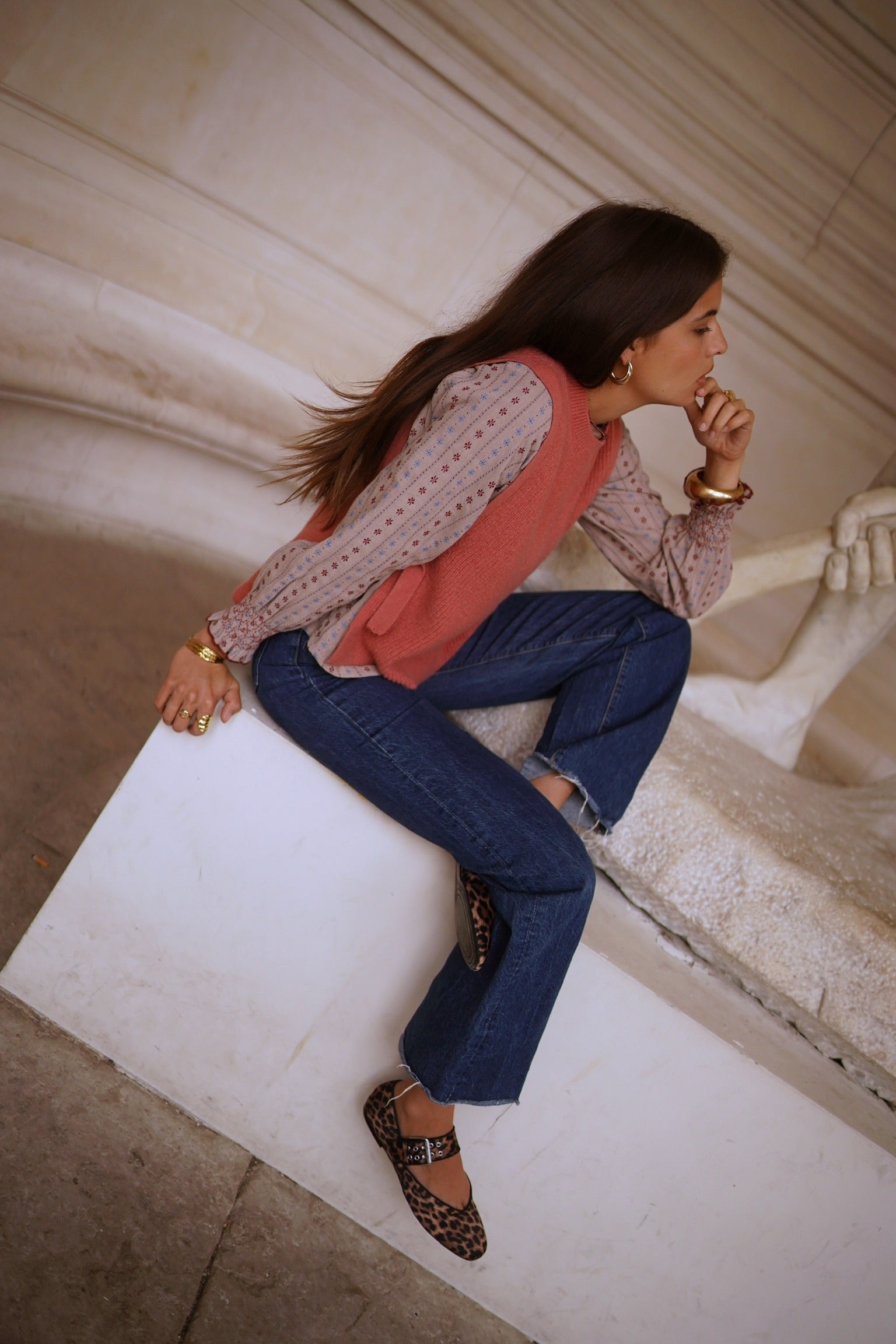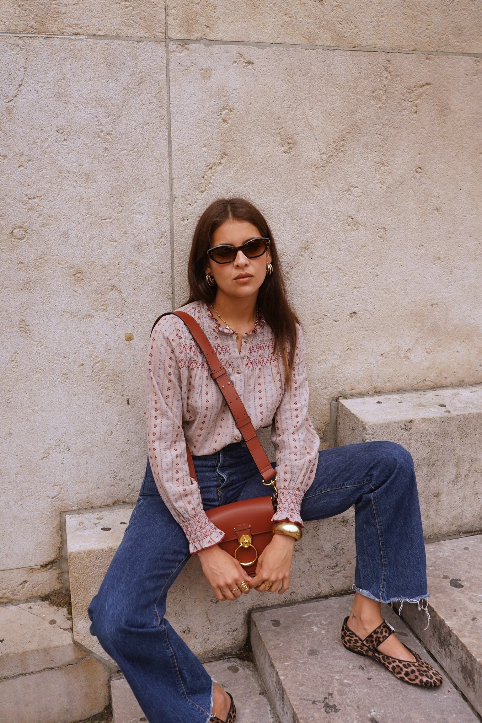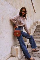 La Dolce Vita! Deze katoenen blouse met leuke details shop je nu nieuw online in beige! Draag hem met een gilet of spencer!