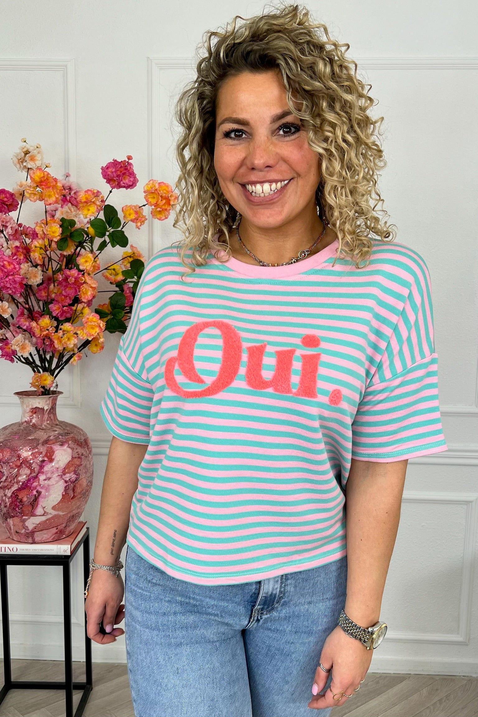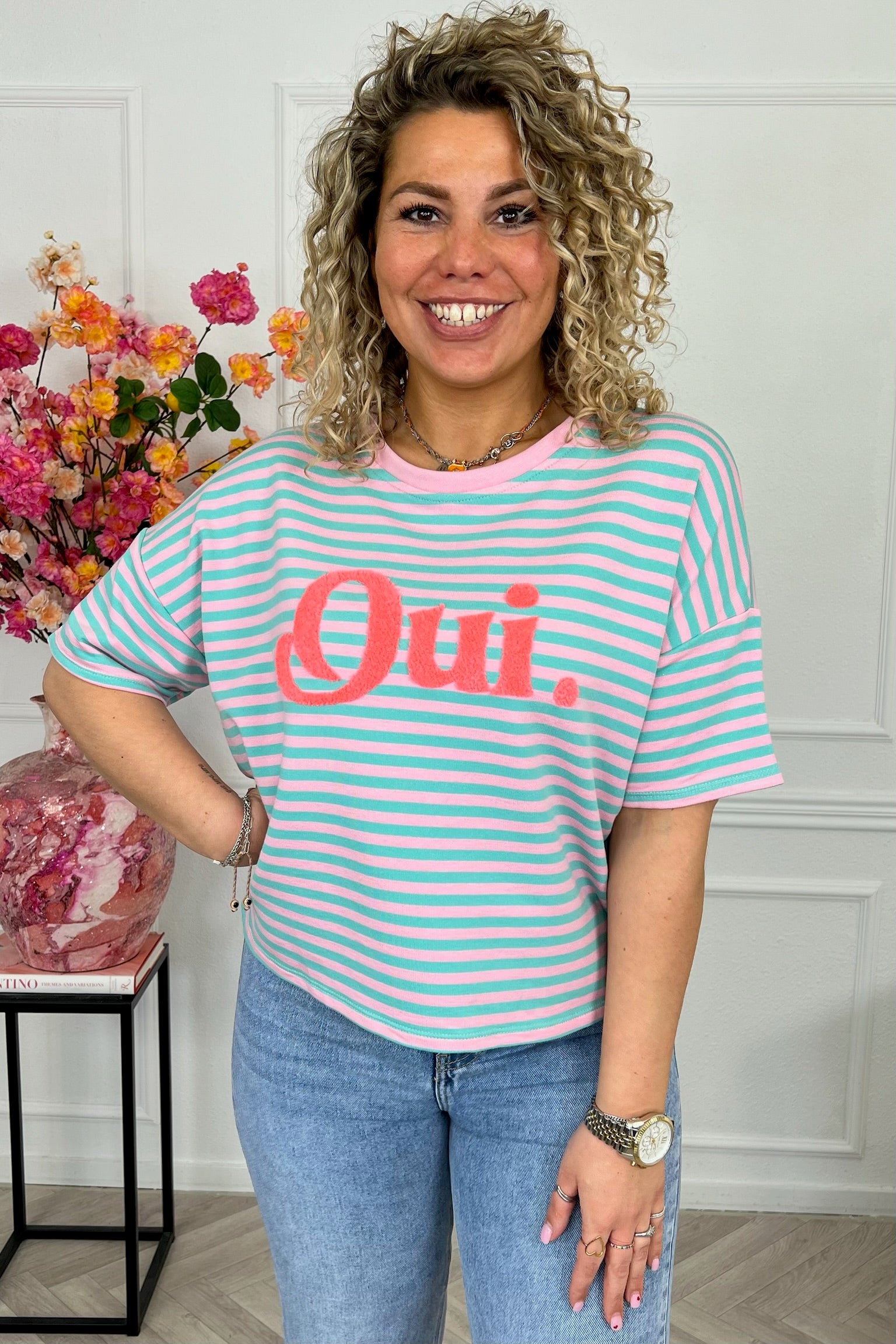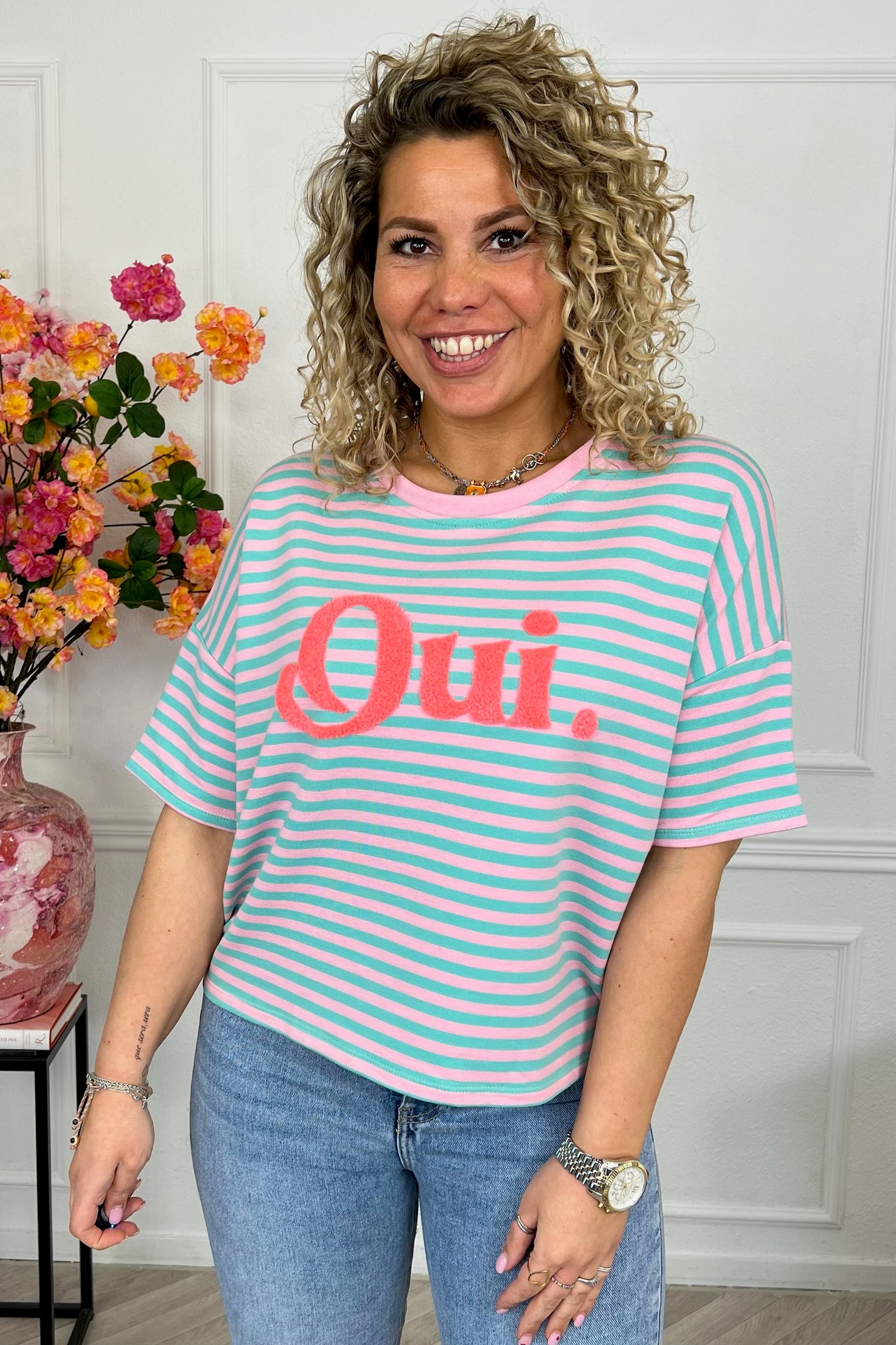 Striped Oui Shirt - Pink/Green