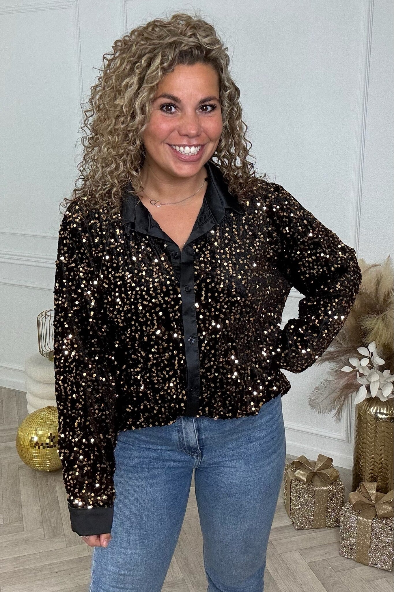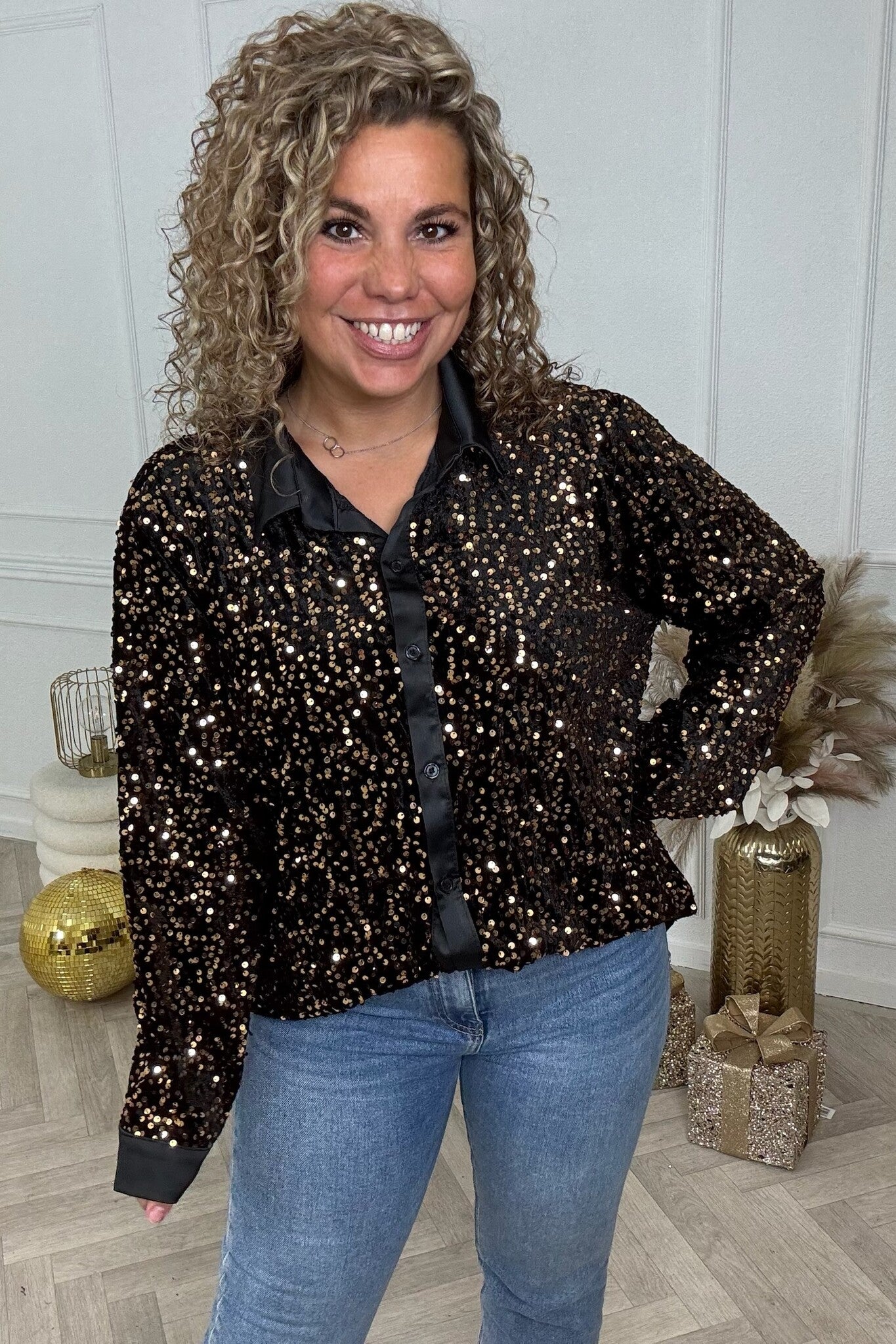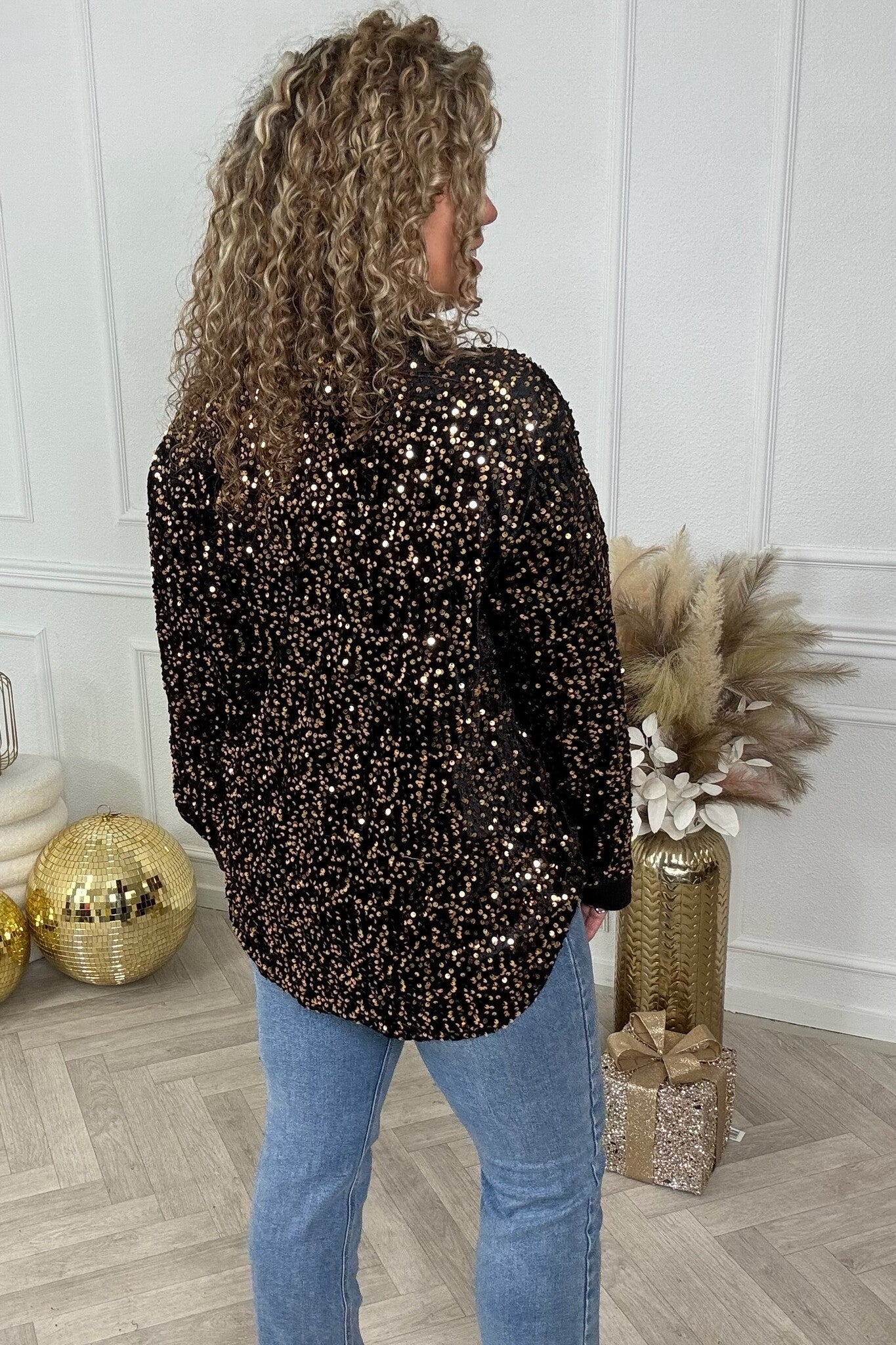 Velvet Sequin Blouse - Black/Gold