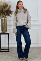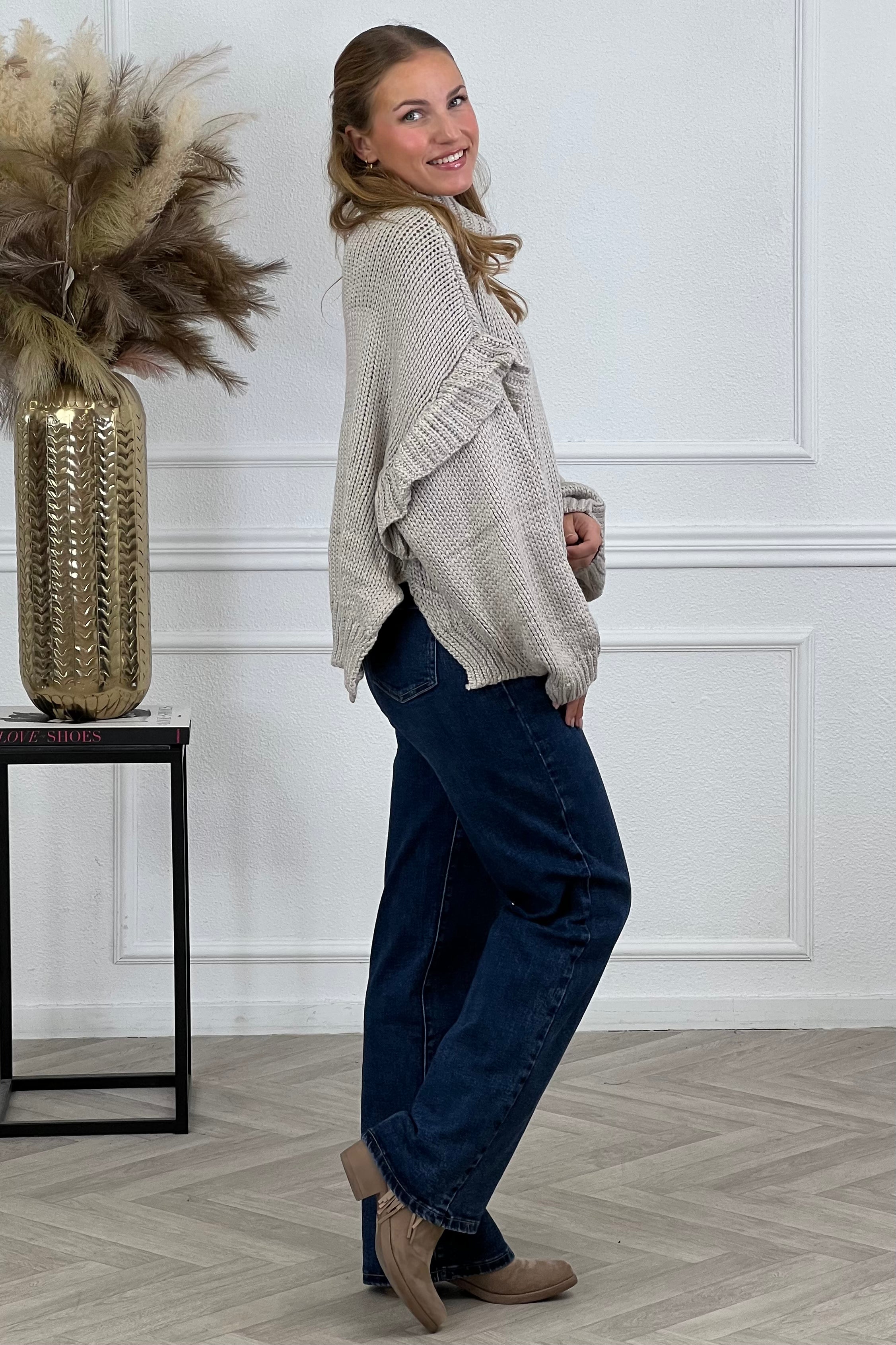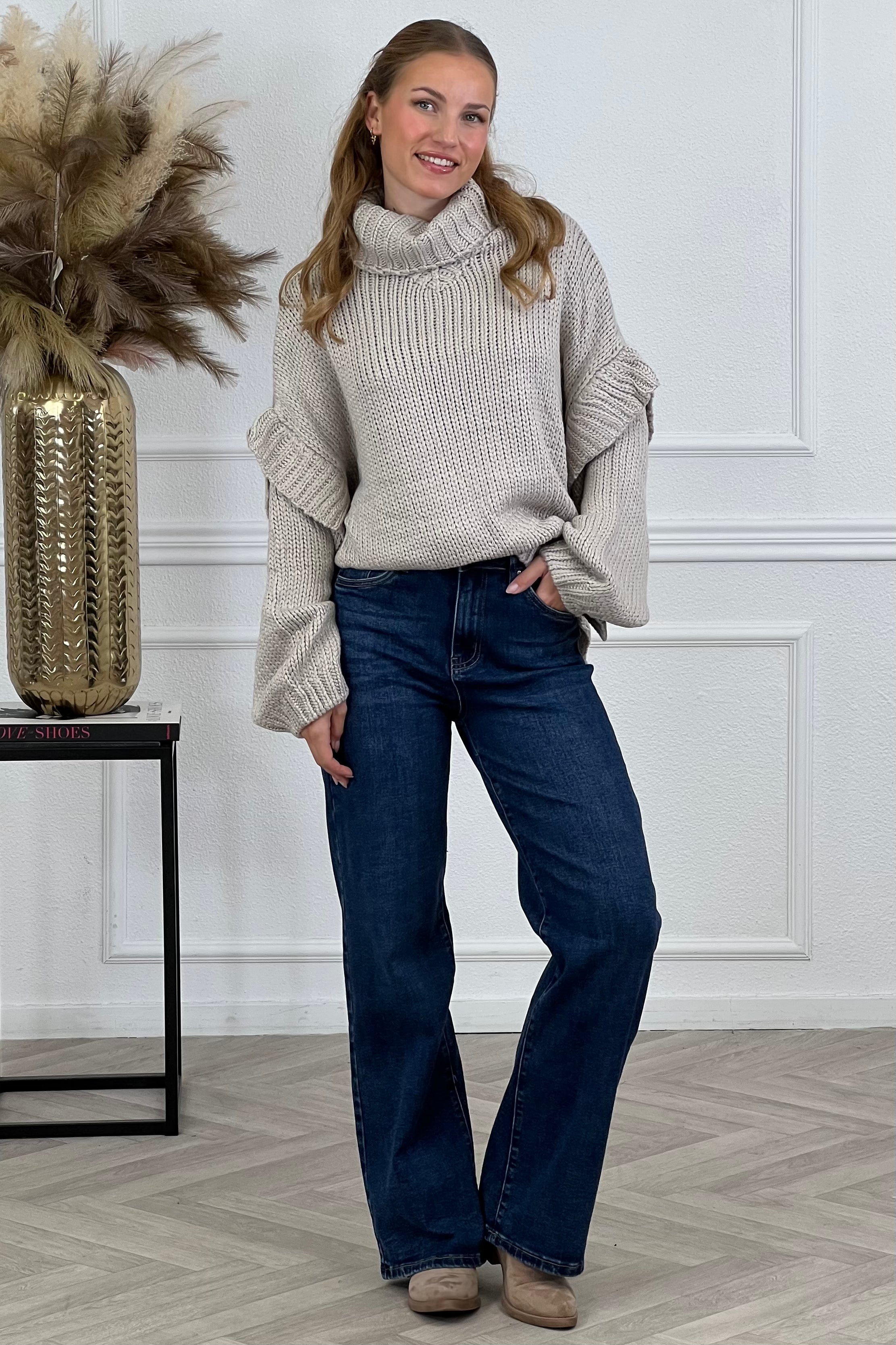 Een heerlijk warme trui met hoge kraag en ruffels aan de mauwen is geschikt voor de komende seizoenen! Te shoppen in meerdere kleuren!