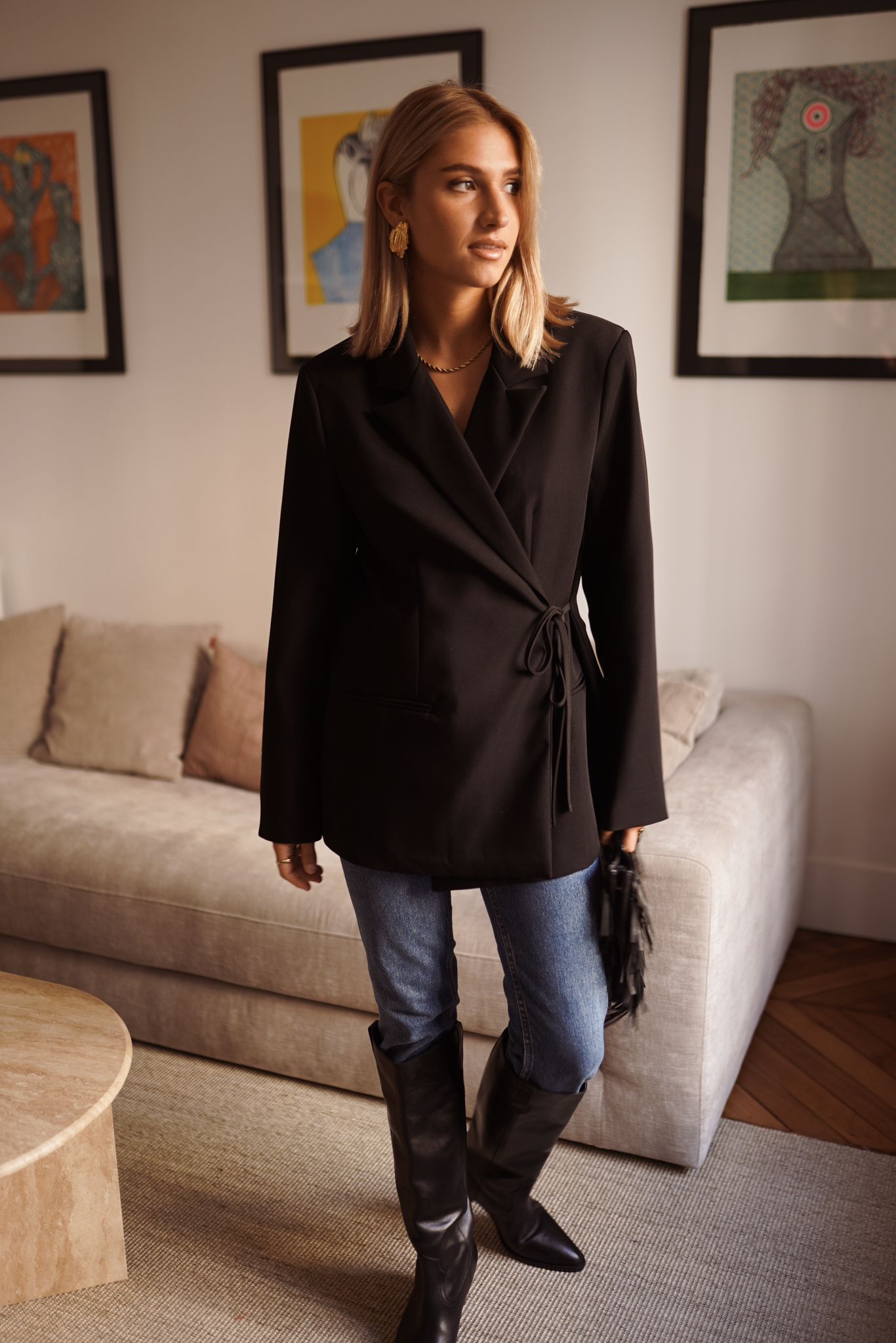 Helemaal trendy met deze blazer met een strik aan de zijkant! Shop de perfect strik blazer nu in black.