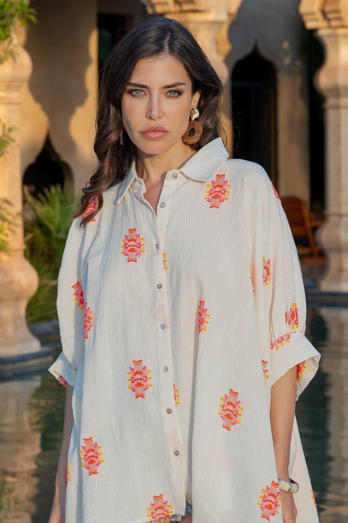 Deze prachtige blouse in een langer model is hét perfect zomer item en perfect voor een stranddag! Shop hem nu in Off White!