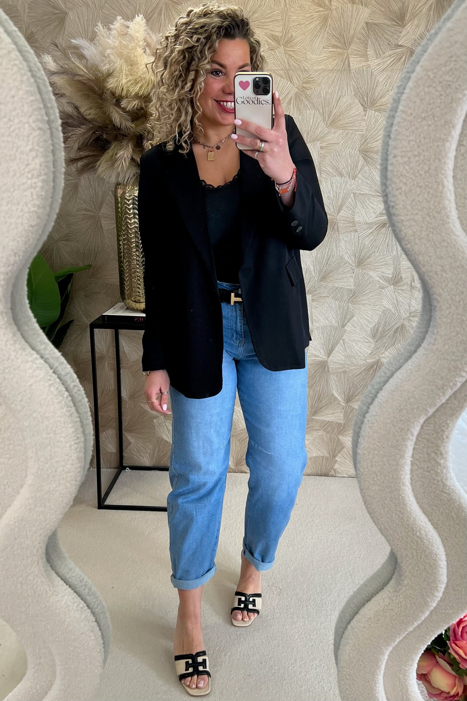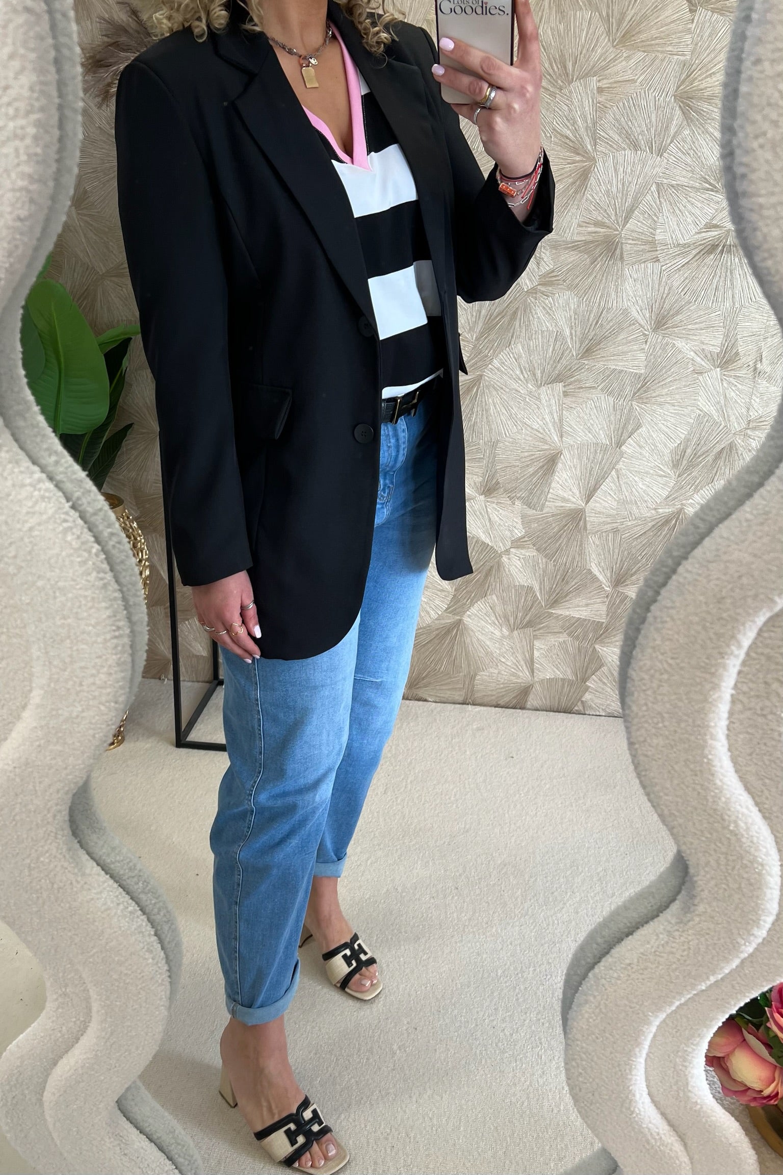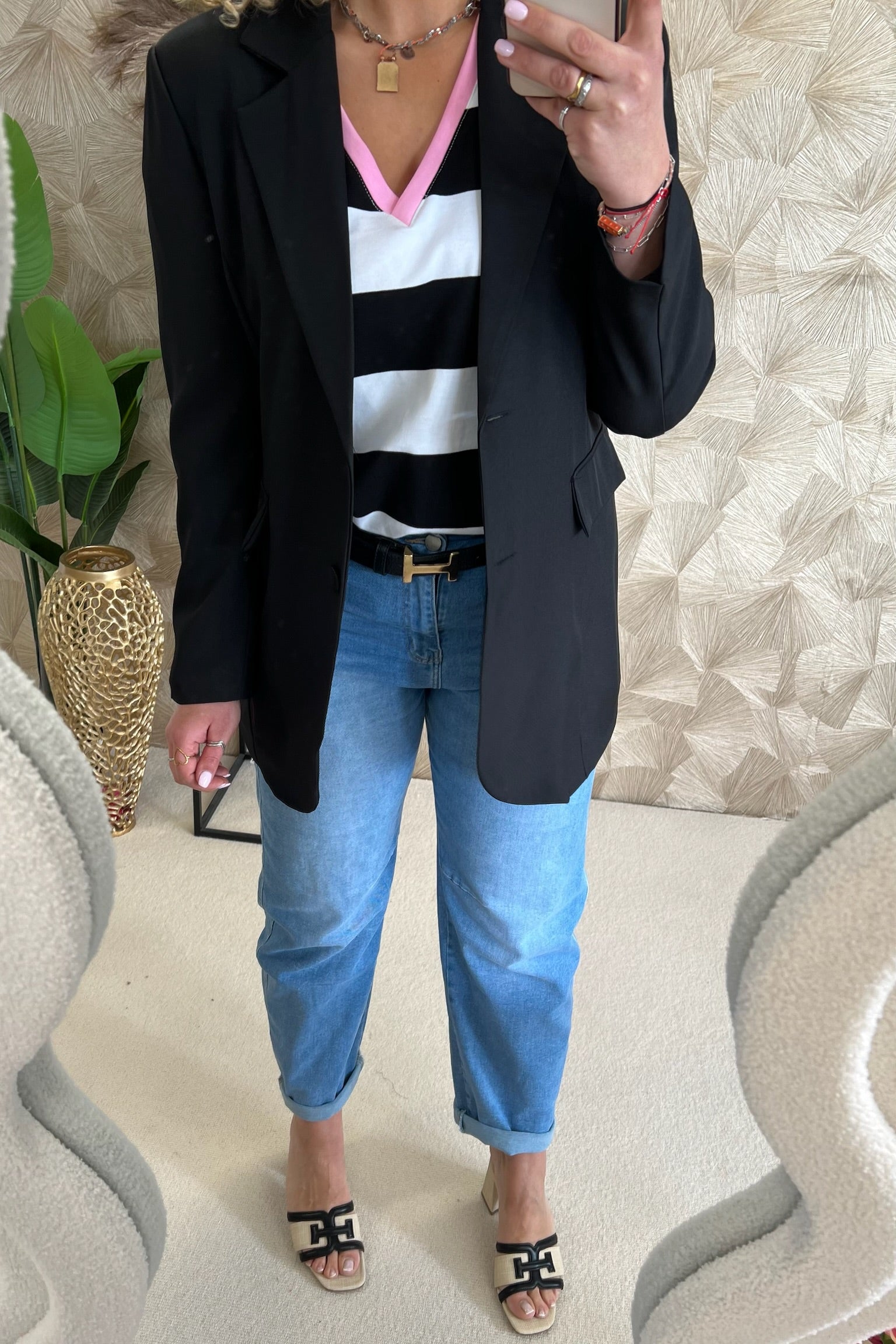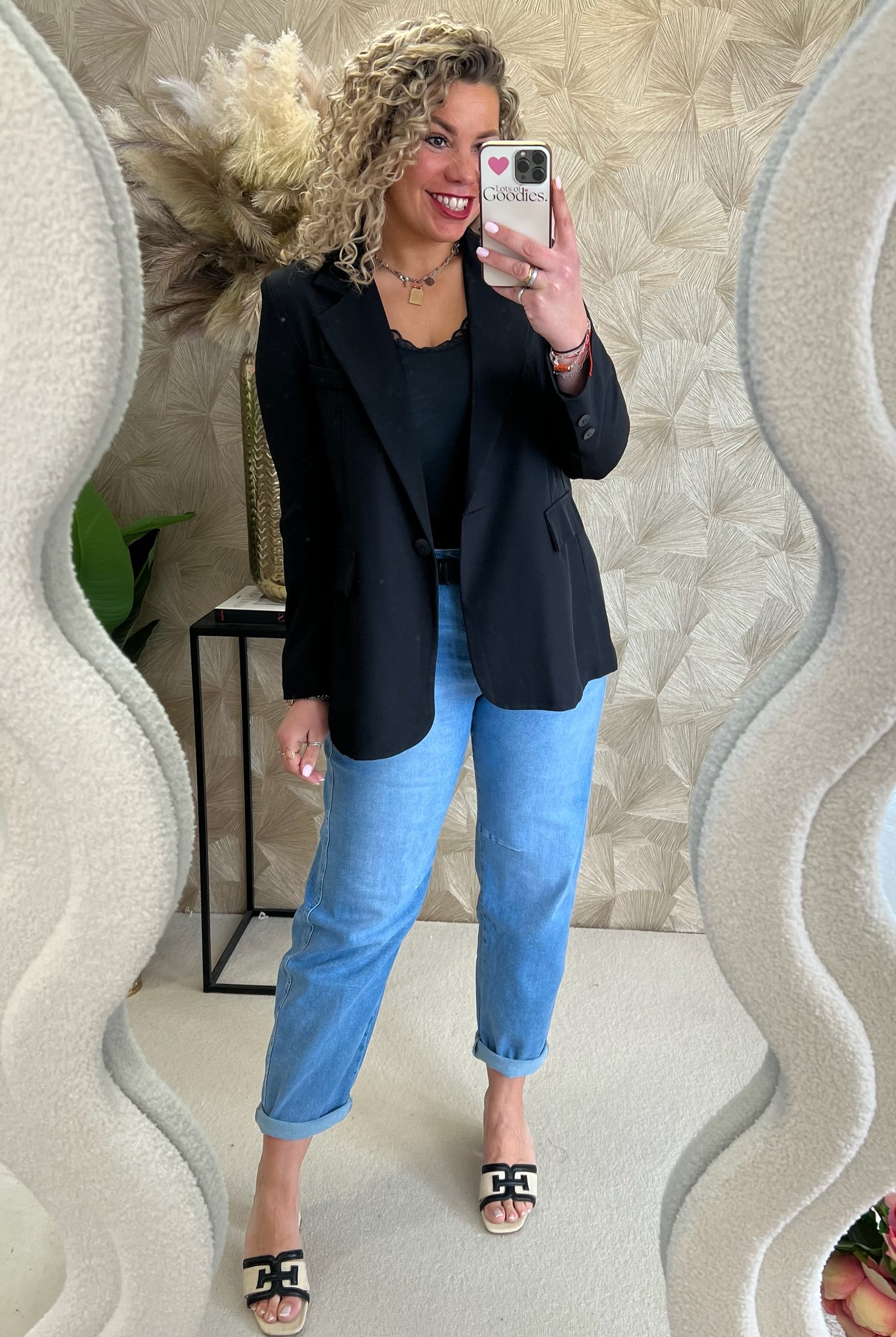 De blazers hebben een vrouwelijke pasvorm en zijn gemaakt van mooie stoffen die prettig dragen en lang mooi blijven. Combineer ze met de bijpassende pantalon en een paar nette schoenen voor een verzorgde, zakelijke outfit. Liever iets meer casual? Draag een van de blazers op een jeans en creëer moeiteloos een chique, maar toegankelijke look.